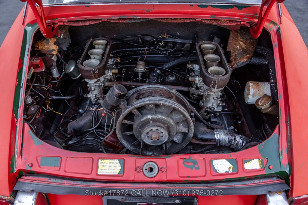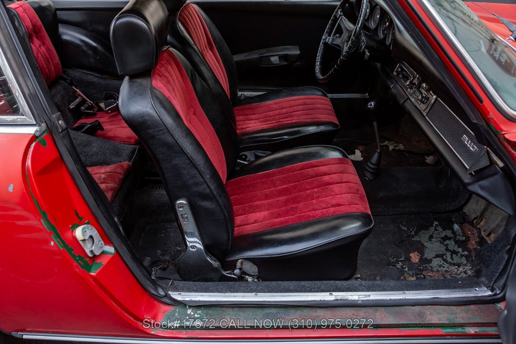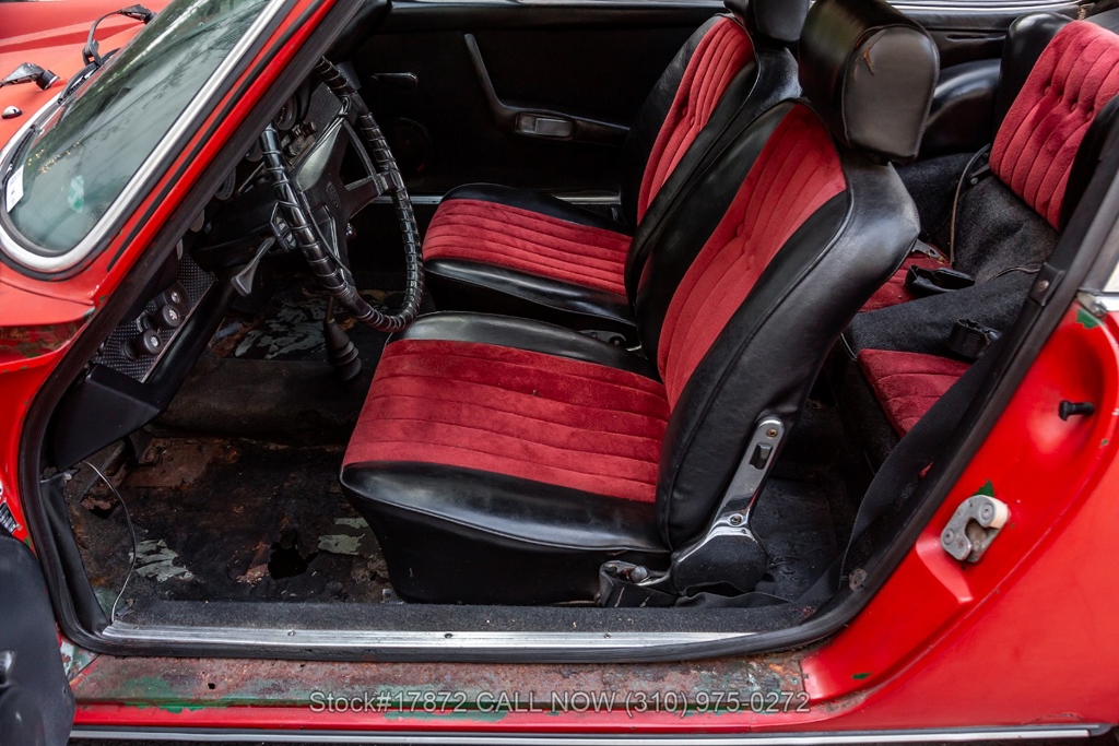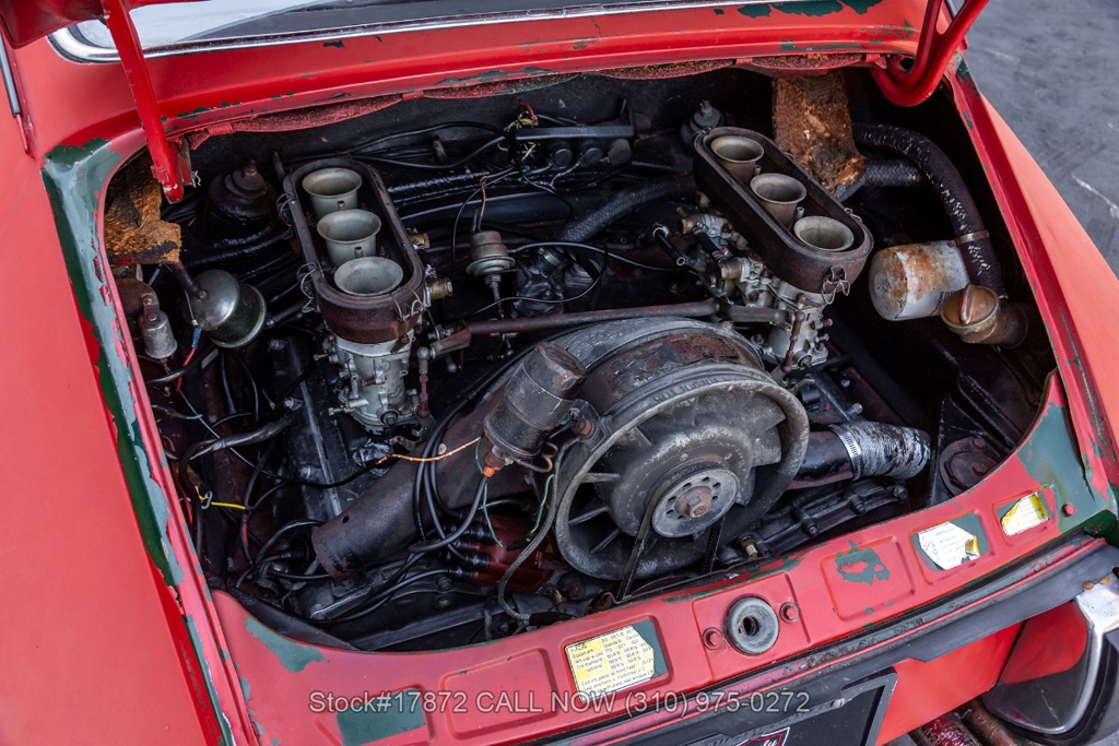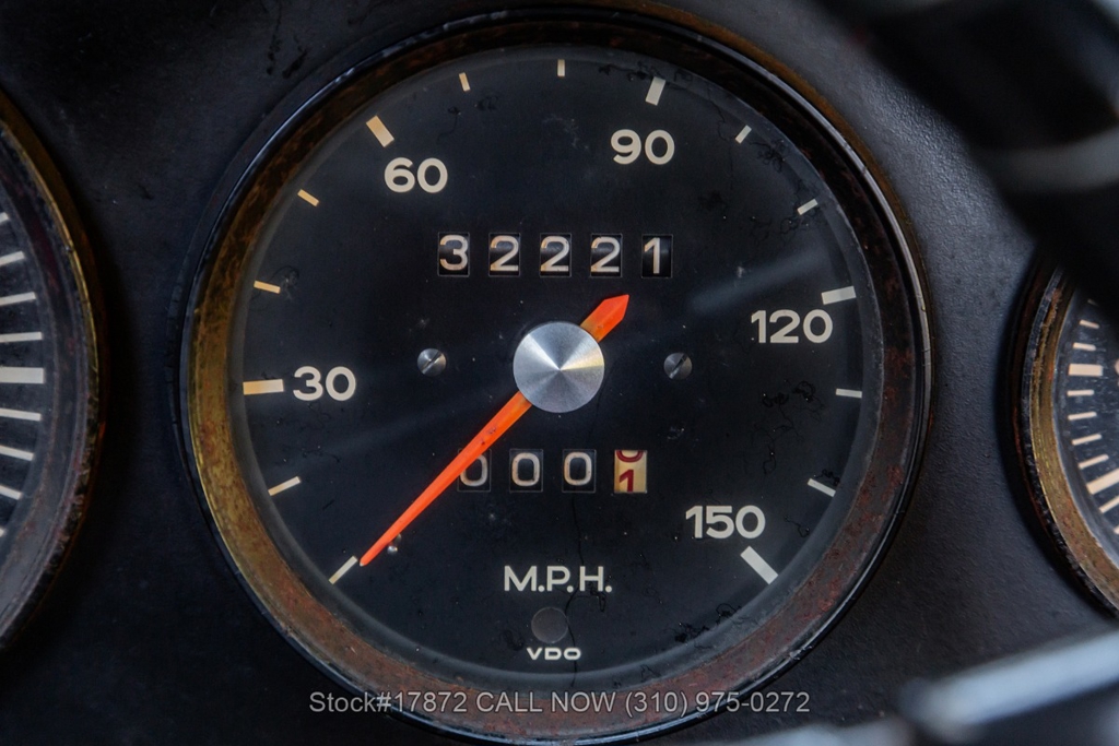 This early 911 is equipped with 5-speed manual transmission, Flat 6 Cylinder 2.0-liter engine, Weber dual carburetors, four-wheel disc brakes, quad exhaust outlets, VDO instruments, Cibie branded headlights, 4-spoke steering wheel, and 15-inch Fuchs-style wheels. Conveniences features include a driver-side rearview mirror, glove compartment, manual-crank windows, vent windows, Sony radio, fender mounted antenna and a dashboard analog clock.