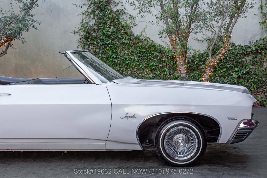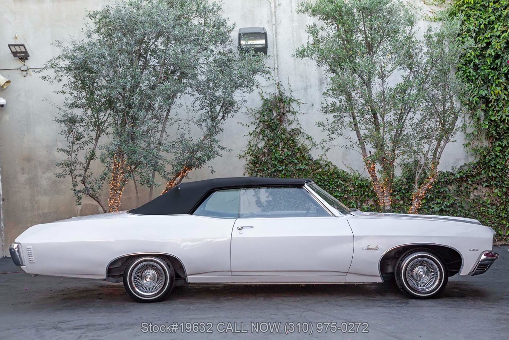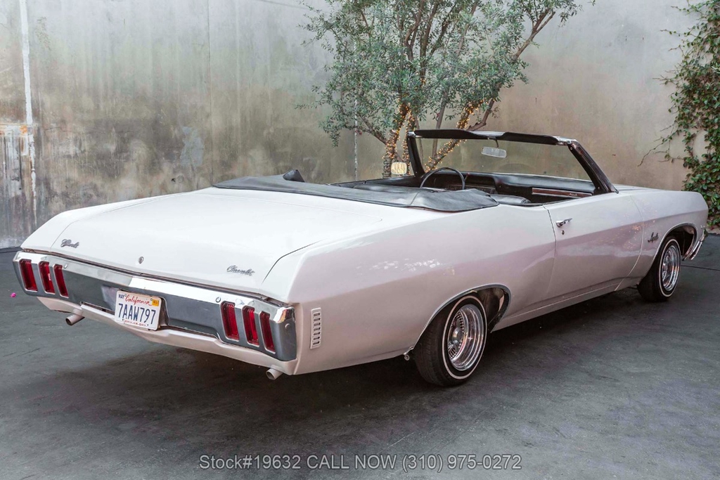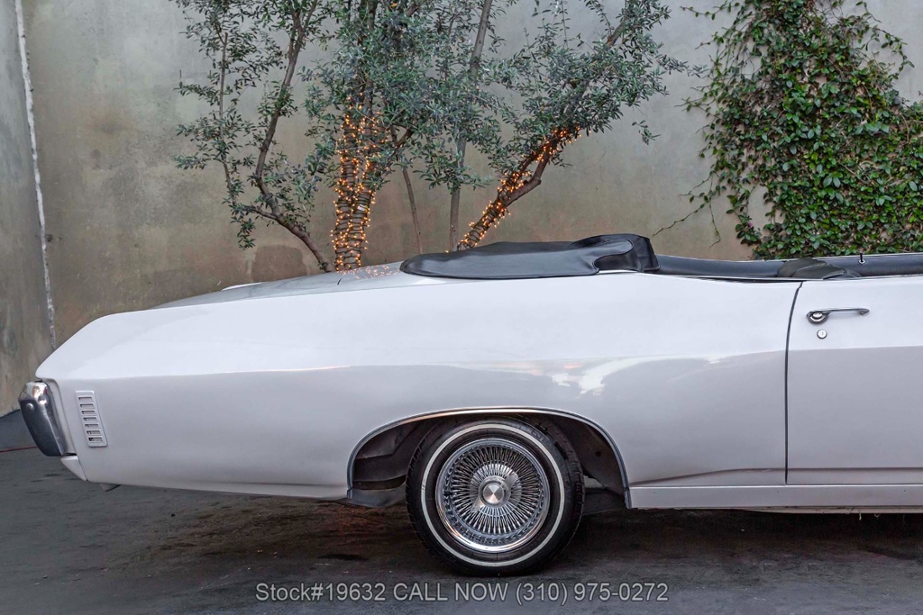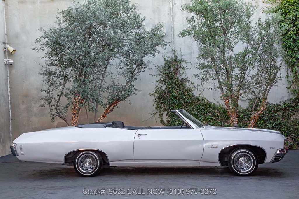 Introducing this 1970 Chevrolet Impala Convertible finished in its factory-correct Classic White (Code 10) combined with a black interior. This full-size American cruiser reflects the styling and character of its era, with long, clean lines and a straightforward layout.