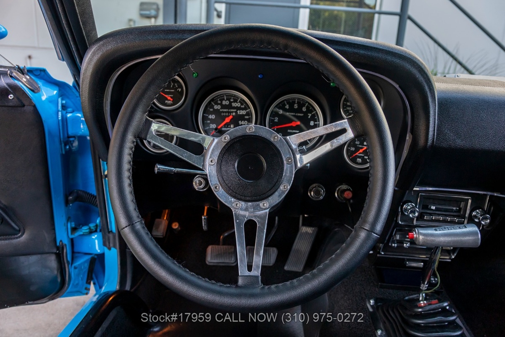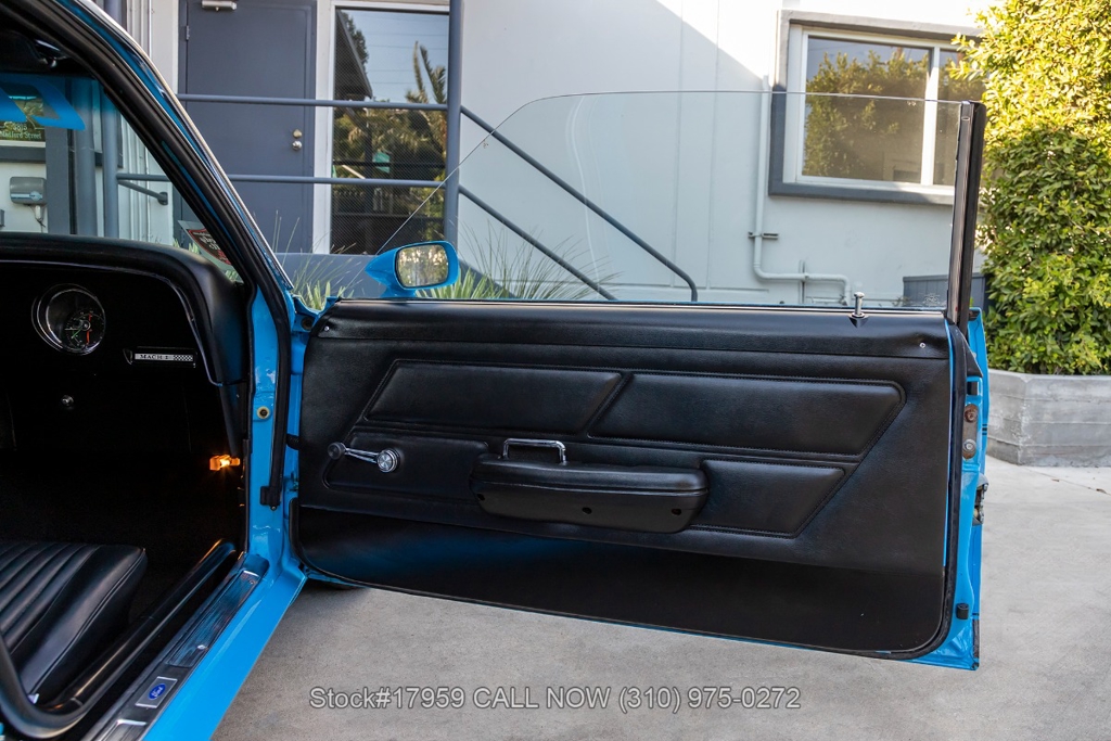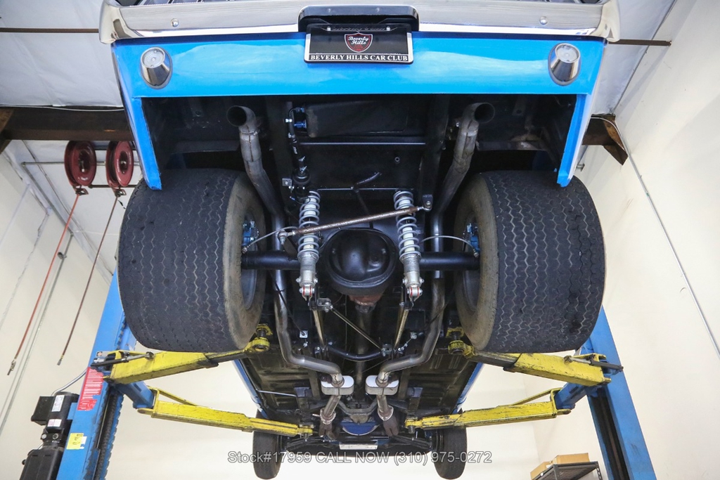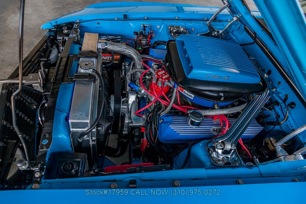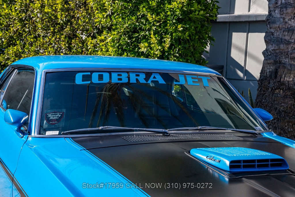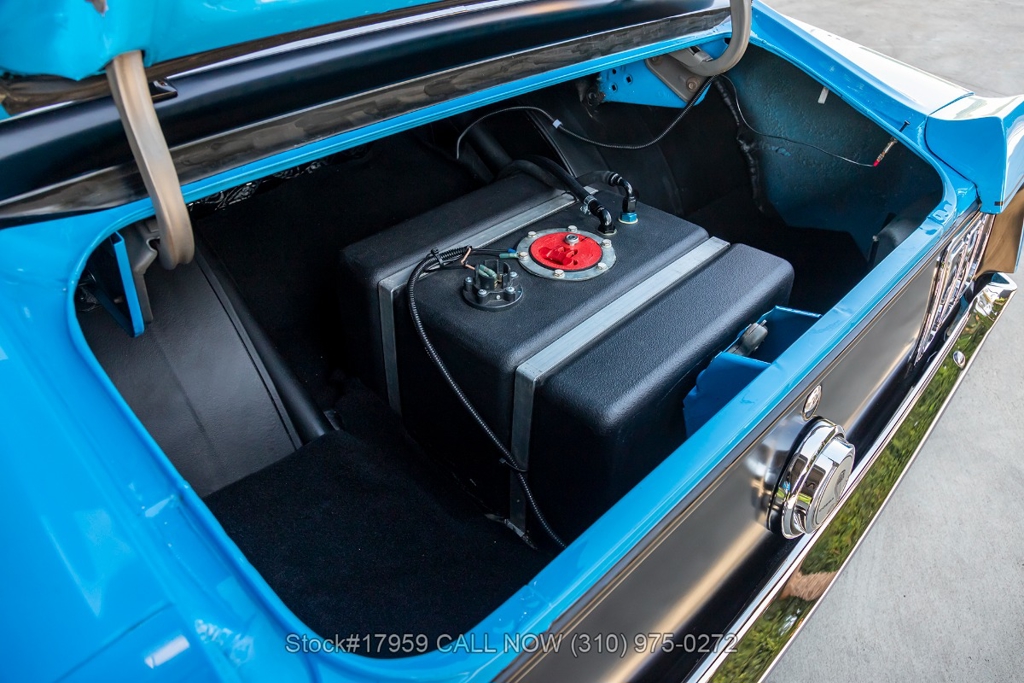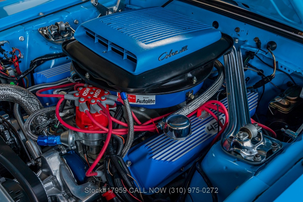 Matching its aggressive stance, under the hood you will find a potent 390 V8 Engine, Toploader 4-speed manual transmission, Summit Max EFI 500 V2 Throttle Body Injection System, four-wheel disc brakes, Cobra Jet hood scoop, rear spoiler, rear window louvers, 3-spoke steering wheel, Hurst shifter, Autometer instrumentation, chrome bumpers, rear Mickey Thompson tires, and 15-inch Centerline chrome wheels. Step inside the cabin, and you'll find a sleek Black Rhino interior with bucket seating, dual rearview mirrors, and a RetroSound radio with Gravity amplifiers perfect for long drives or cruising around town. Featured amenities include power-crank windows, sun visors, custom neon dash lighting, center console and glove compartment.