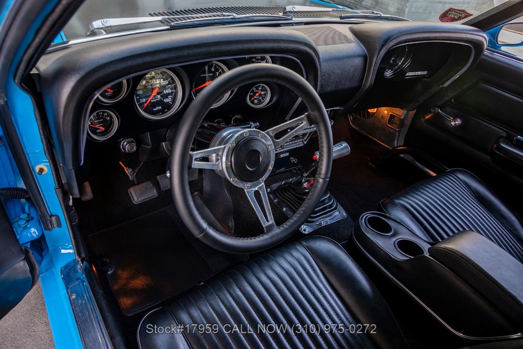 Introducing this 1970 Ford Mustang Fastback Pro Street Hot Rod that is finished in its factory color Grabber Blue with black decals complemented by its chrome trim. This vintage beauty is a true testament to the timeless appeal of classic American muscle. With its iconic design and rugged build, the Ford is a symbol of power and optimal performance.