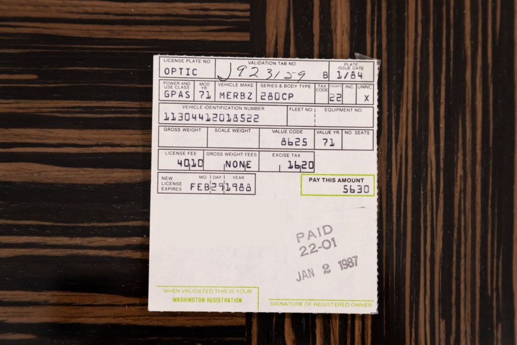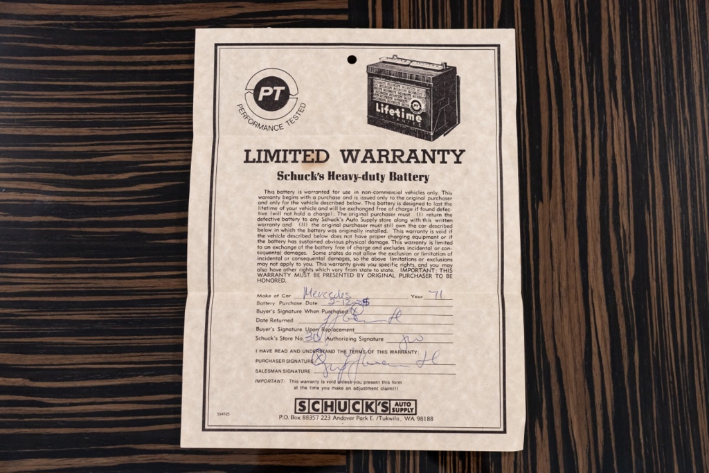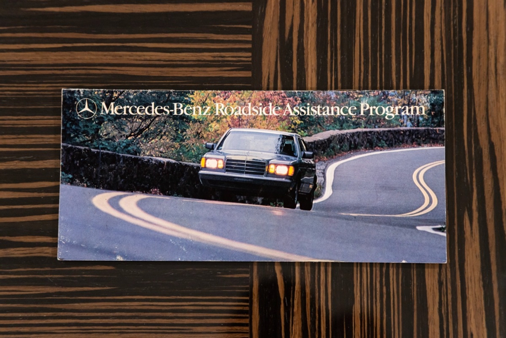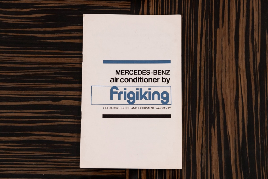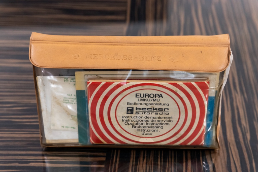 Under the hood, this luxury classic is powered by a fuel-injected inline-six engine paired with an automatic transmission. Equipped with power steering, four-wheel disc brakes, spot welds, fender notches, dual exhaust outlets, chrome bumpers with overriders, VDO instrumentation, chrome trim, a body-color dashboard, Uniroyal Tiger Paw whiteline tires, 14-inch steel wheels with Mercedes-Benz hubcaps, a jack, tool roll, and a full-size spare tire. Convenience features include a Becker Europa radio, bucket seats with headrests, driver-side rearview mirror, two-spoke steering wheel with horn, map pockets, glove box, manual crank windows, analog clock, and a center console.