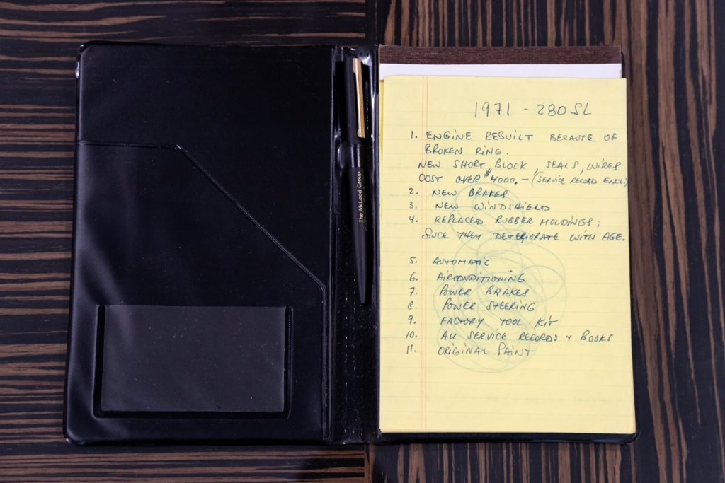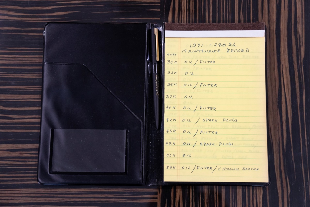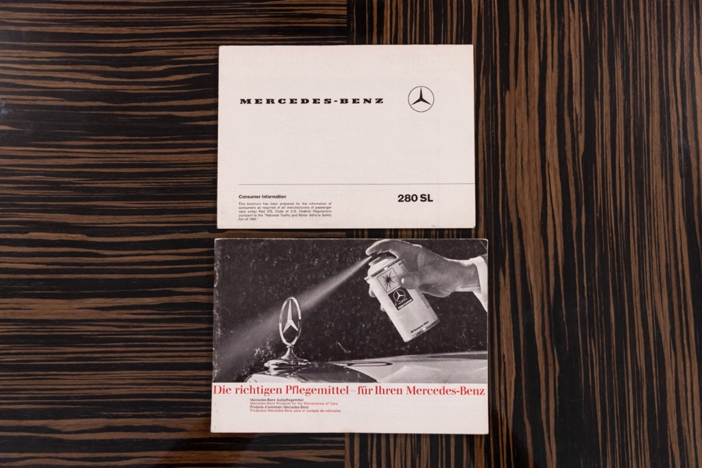 Includes an owner's manual and manufacturer's literature, providing a comprehensive history and documentation of its provenance. This exceptional 280SL Pagoda comes with a comprehensive history of service records, documenting the maintenance it has received over the years. The records include details of routine oil changes, brake jobs, and other essential services, providing peace of mind to the discerning buyer. Finding such an original example in this condition is a rare opportunity for classic car aficionados.