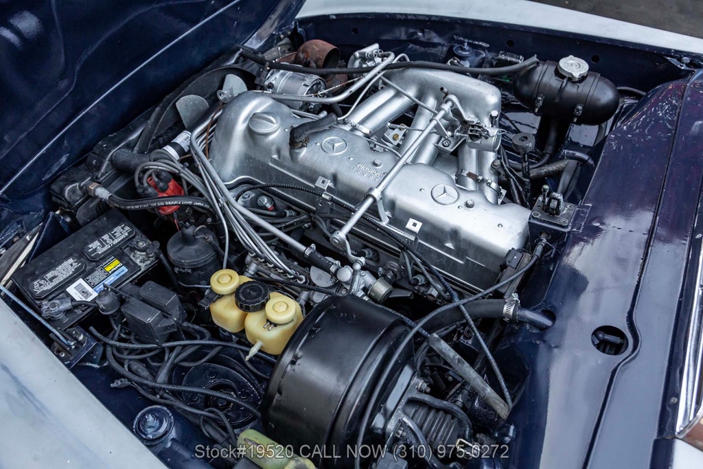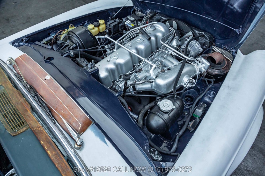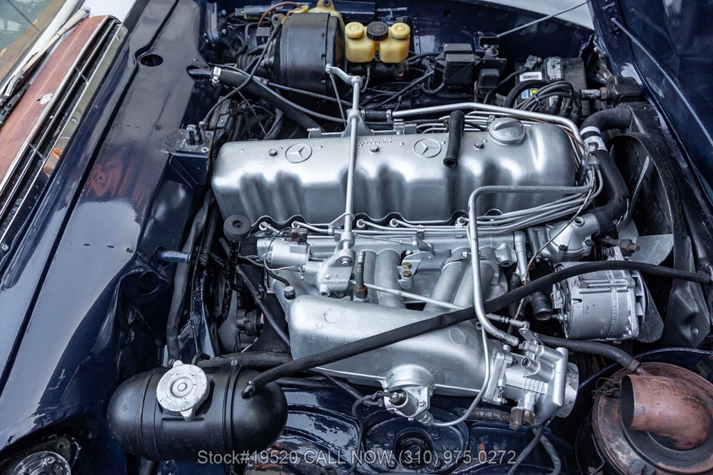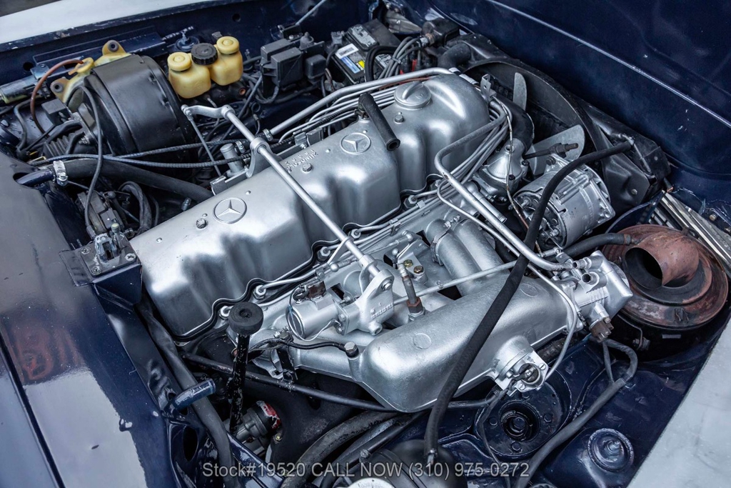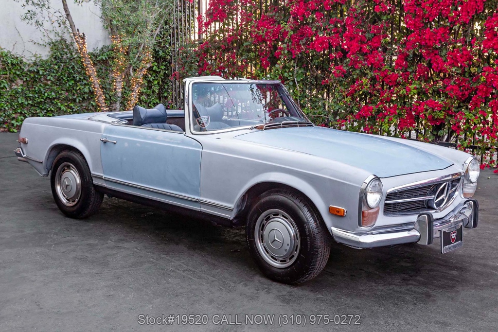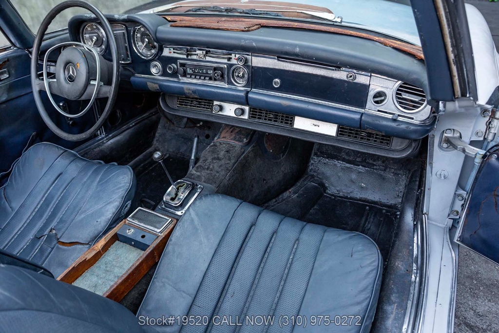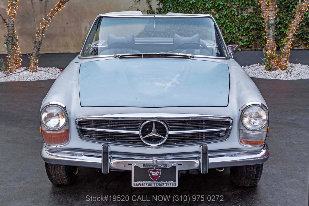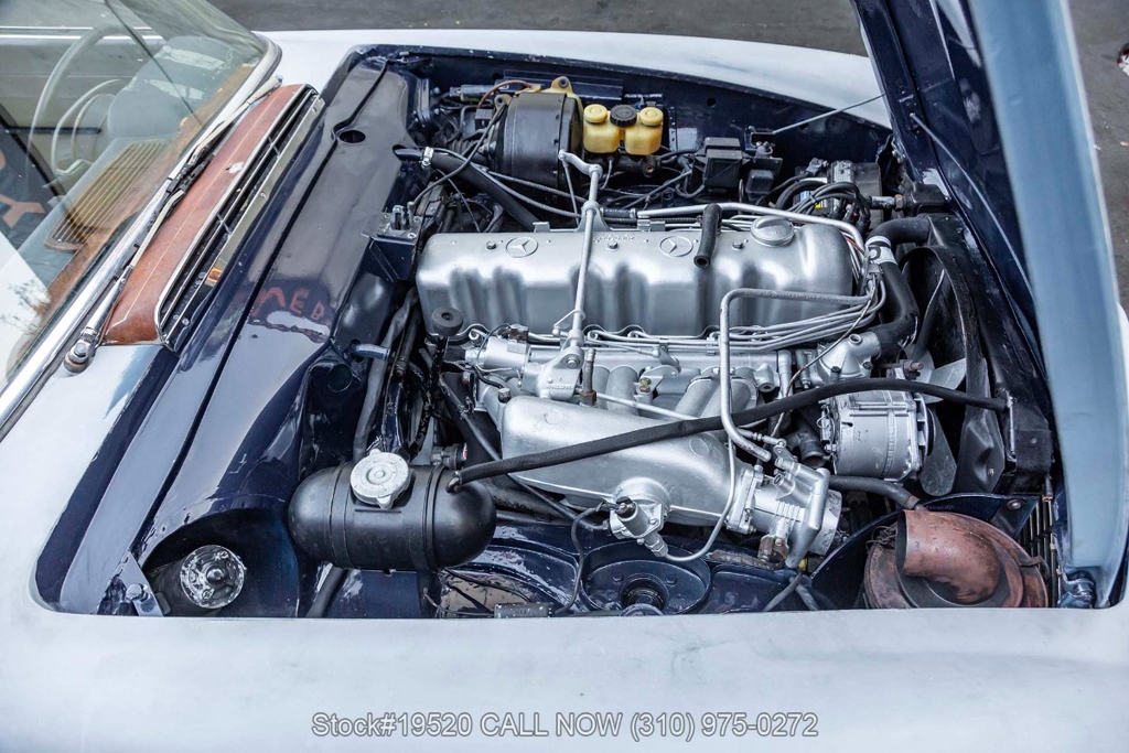 Under the hood, this classic Mercedes-Benz is equipped with a fuel-injected 2.8-Liter M130 inline-six engine paired with an automatic transmission. Additional equipment includes power steering, four-wheel disc brakes, a convertible soft top, a removable Pagoda hardtop, spot welds, dual exhaust outlets, chrome bumpers with overriders, a two-spoke steering wheel with horn, VDO instrumentation, Mercedes-Benz hubcaps, jack, and a full-size spare tire fitted in the trunk. Convenience features include air conditioning, a body-color dashboard, bucket seats with headrests, Blaupunkt radio, glove box, door pockets, manual crank windows, and a center console.