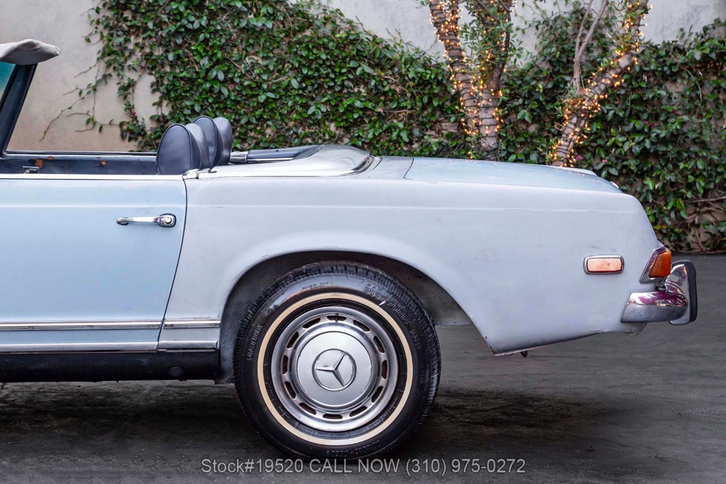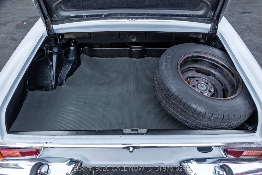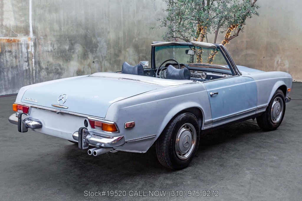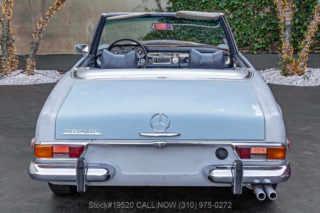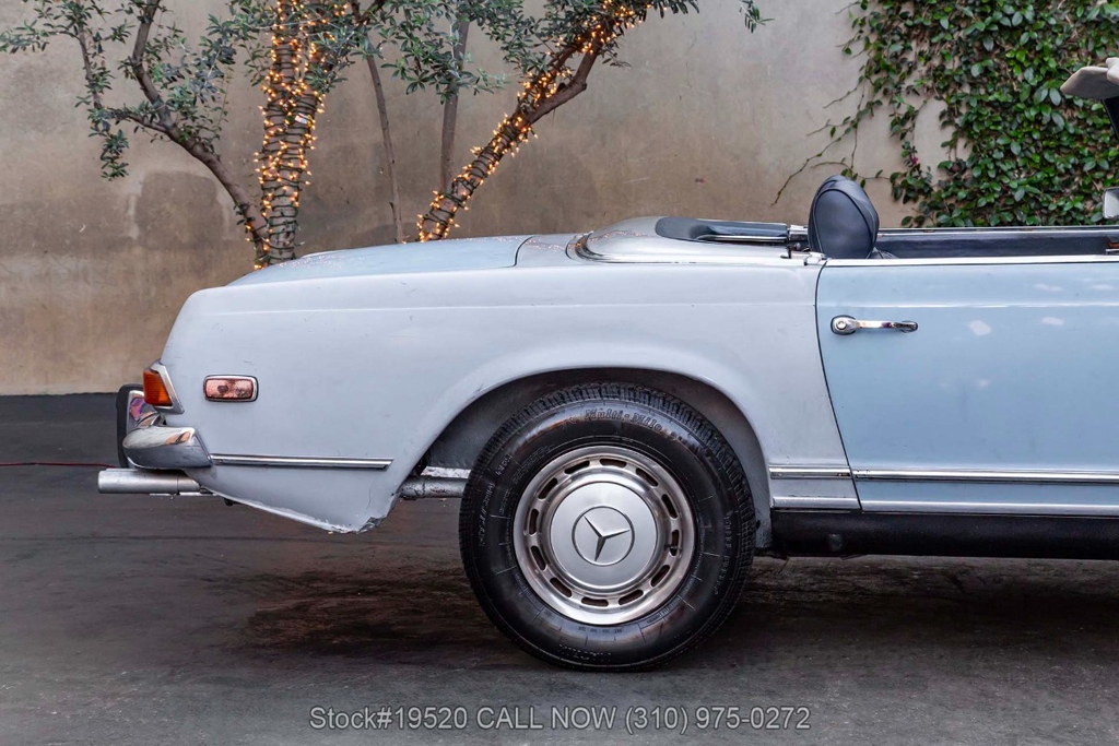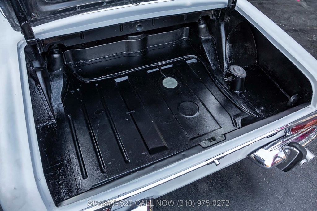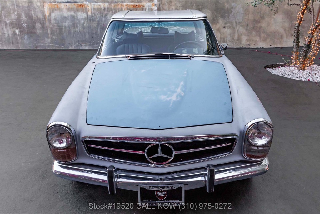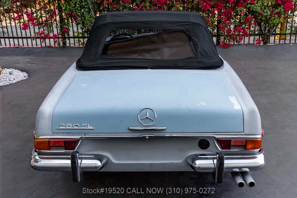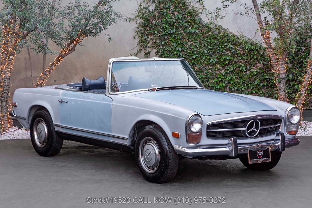 Under the hood, this classic Mercedes-Benz is equipped with a fuel-injected 2.8-Liter M130 inline-six engine paired with an automatic transmission. Additional equipment includes power steering, four-wheel disc brakes, a convertible soft top, a removable Pagoda hardtop, spot welds, dual exhaust outlets, chrome bumpers with overriders, a two-spoke steering wheel with horn, VDO instrumentation, Mercedes-Benz hubcaps, jack, and a full-size spare tire fitted in the trunk. Convenience features include air conditioning, a body-color dashboard, bucket seats with headrests, Blaupunkt radio, glove box, door pockets, manual crank windows, and a center console.