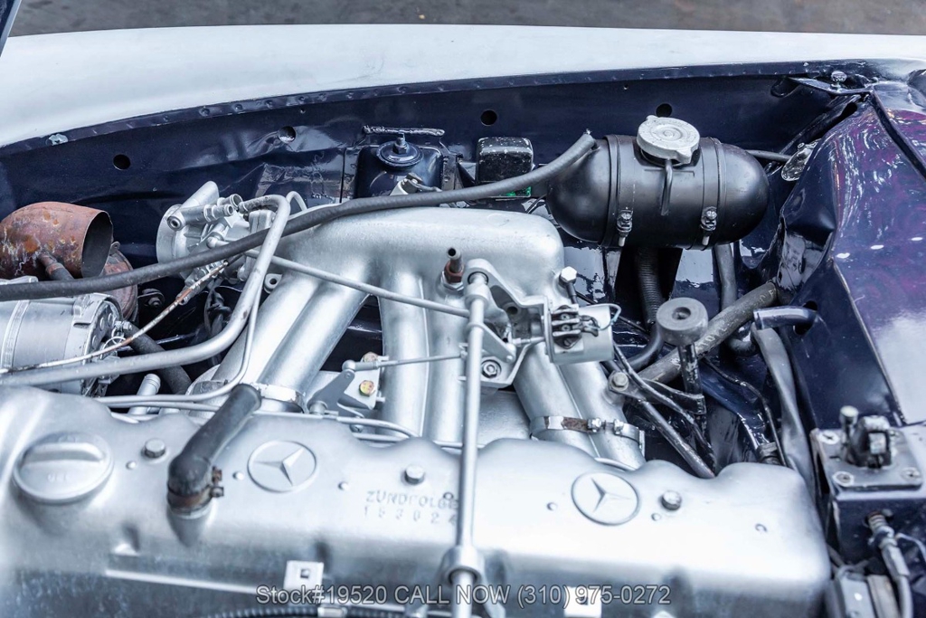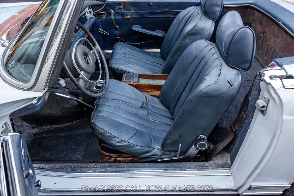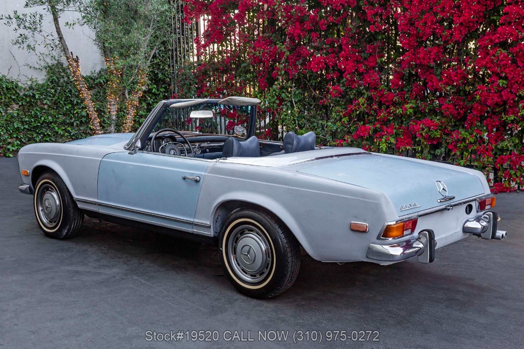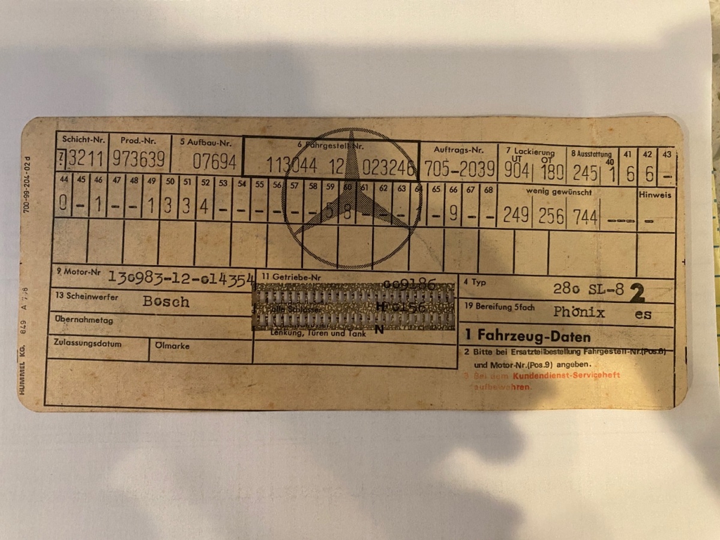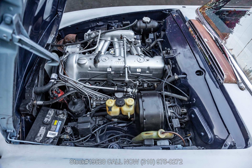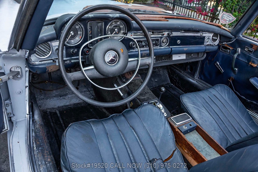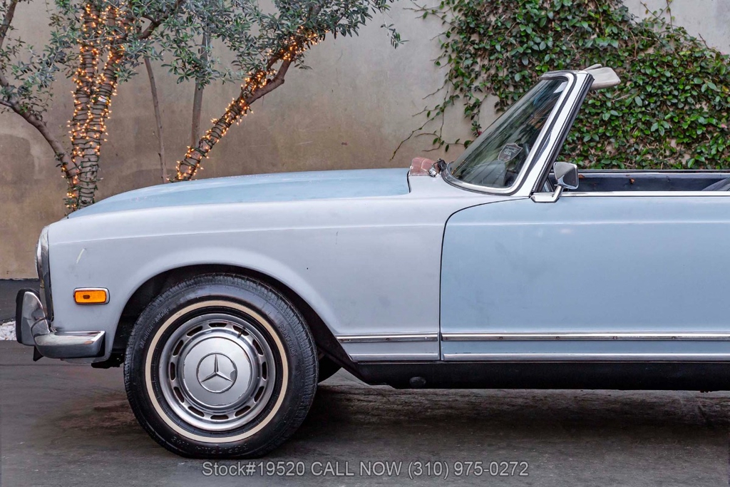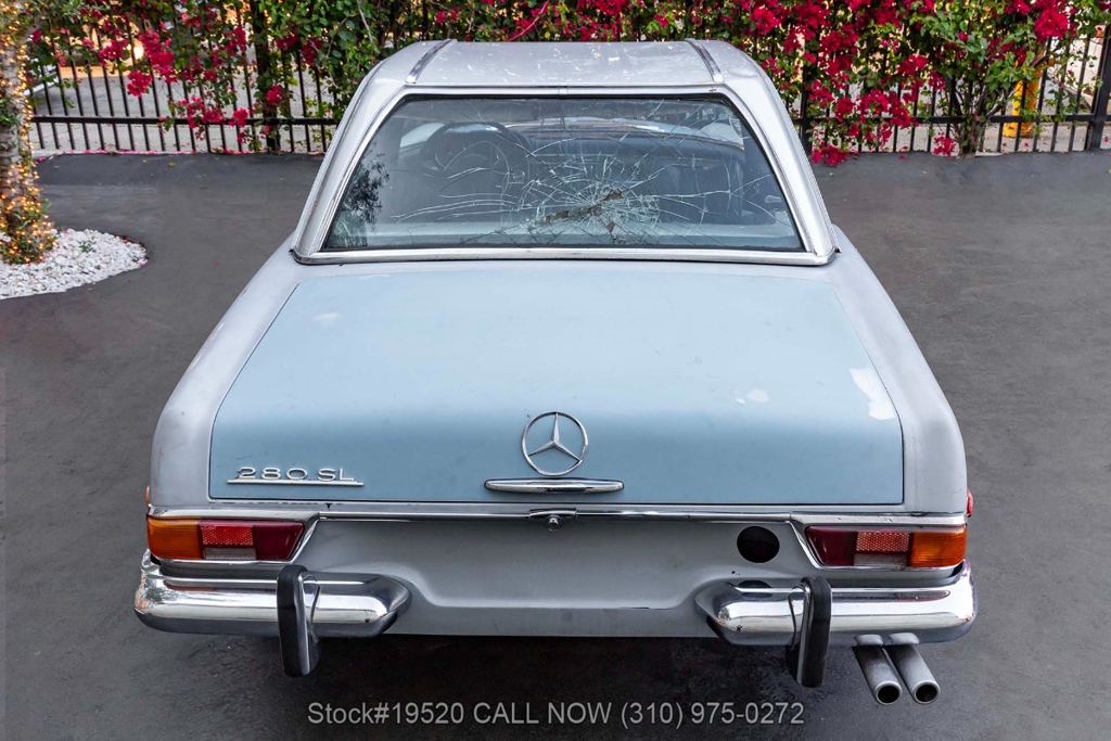 Under the hood, this classic Mercedes-Benz is equipped with a fuel-injected 2.8-Liter M130 inline-six engine paired with an automatic transmission. Additional equipment includes power steering, four-wheel disc brakes, a convertible soft top, a removable Pagoda hardtop, spot welds, dual exhaust outlets, chrome bumpers with overriders, a two-spoke steering wheel with horn, VDO instrumentation, Mercedes-Benz hubcaps, jack, and a full-size spare tire fitted in the trunk. Convenience features include air conditioning, a body-color dashboard, bucket seats with headrests, Blaupunkt radio, glove box, door pockets, manual crank windows, and a center console.
