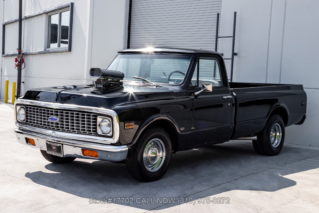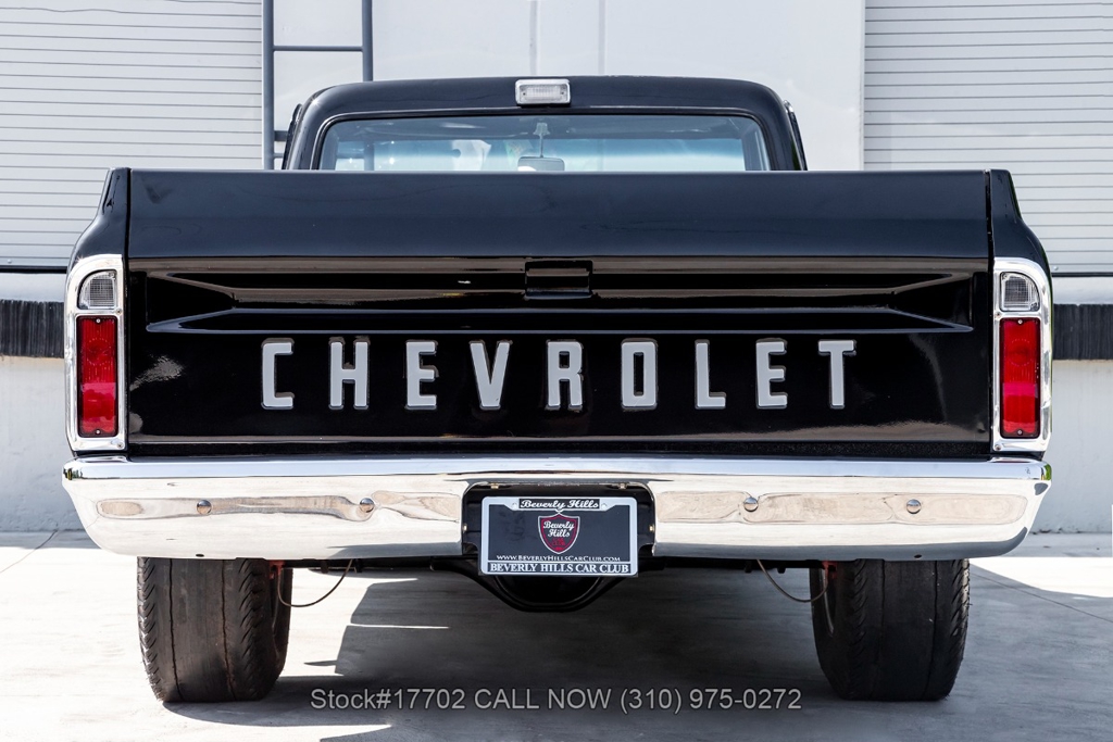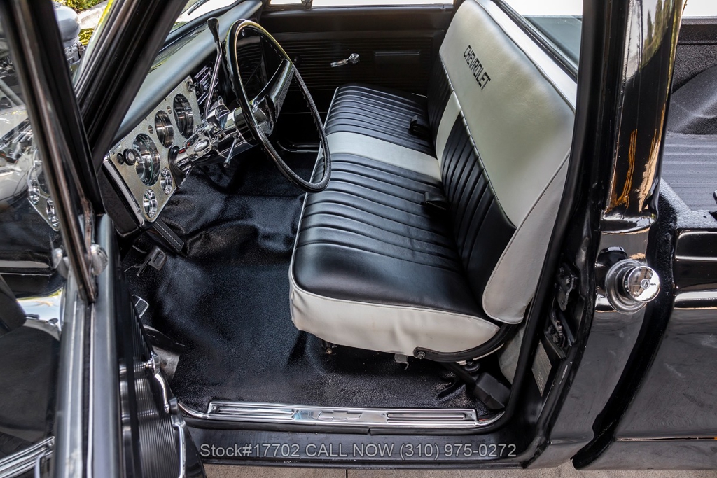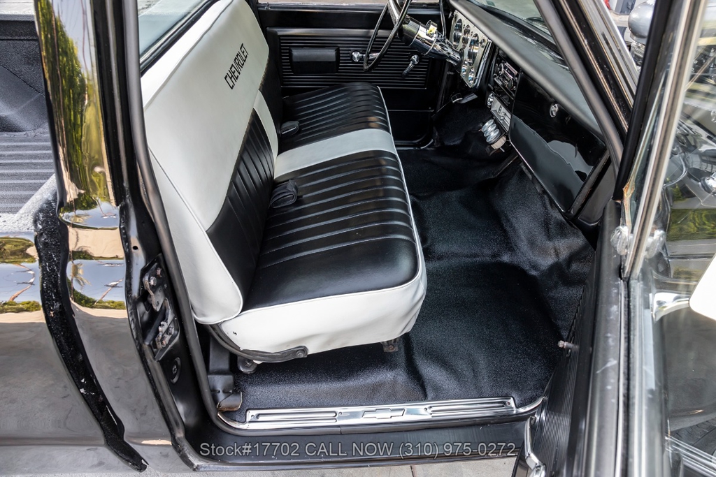 Presenting this 1971 Chevrolet C10 Truck that is finished in Black complemented with a black and white interior. This vintage beauty is a true testament to the timeless appeal of classic American trucks. With its iconic design and rugged build, the C10 is a symbol of power and reliability. Equipped with an automatic transmission with steering column, V8 engine, 4-barrel Edelbrock carburetor, 2-spoke steering wheel, chrome bumpers, "Chevrolet" lettering across the tailgate, and steel wheels. Step inside the cabin, and you'll find a comfortable and spacious bench seat, perfect for long drives or cruising around town. Featured amenities include Delco radio, vent windows, glove compartment, and dual side rear-view mirrors. With this C10s aggressive look commands attention wherever it goes, making it a true head-turner on the road. If you're in the market for a true American classic truck that combines style, performance, look no further than this agree Chevrolet Pickup that is mechanically sound. For $32,500