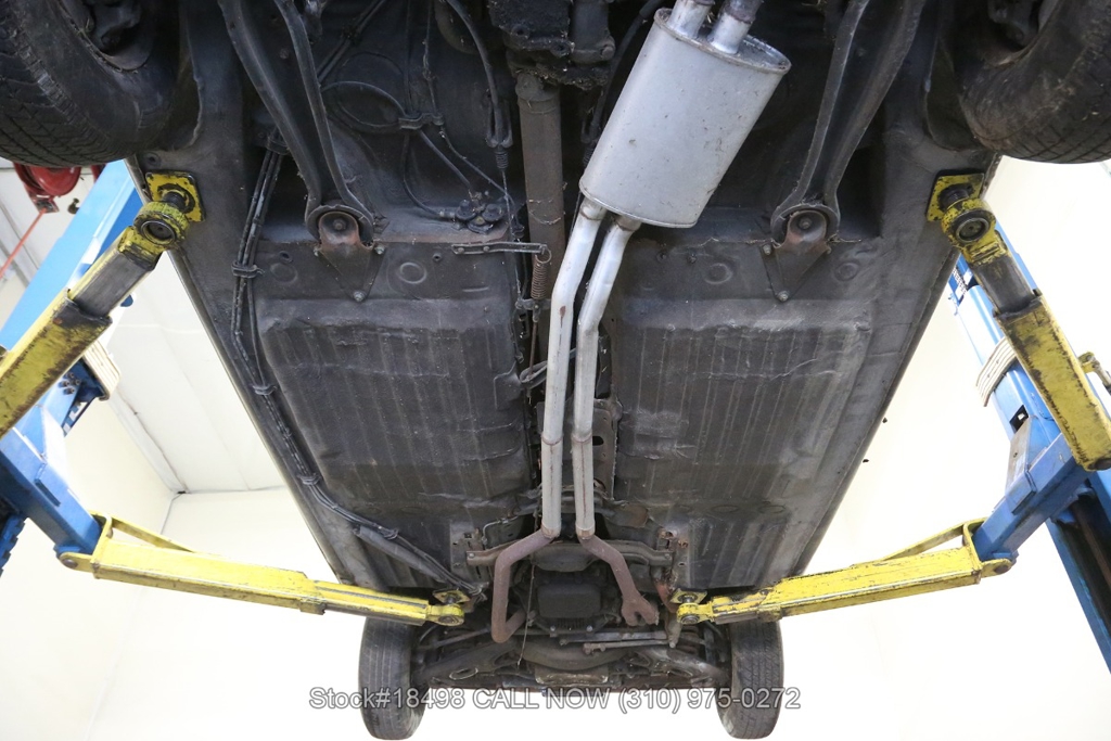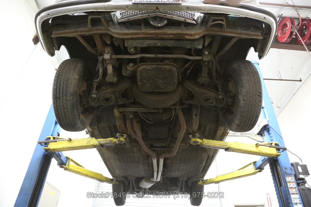Equipped with an automatic transmission, twin exhaust finishers, VDO instrumentation, fender-mounted antenna, side marker lights, chrome trim/bumpers, Mercedes-Benz hood ornament, wood dash, and white-line tires. Convenience features include air conditioning, bucket seats with head restraints, driver-side rearview mirror, Blaupunkt stereo, and an analog clock.