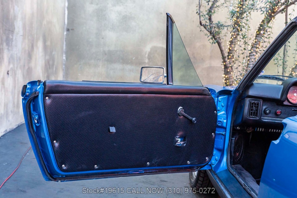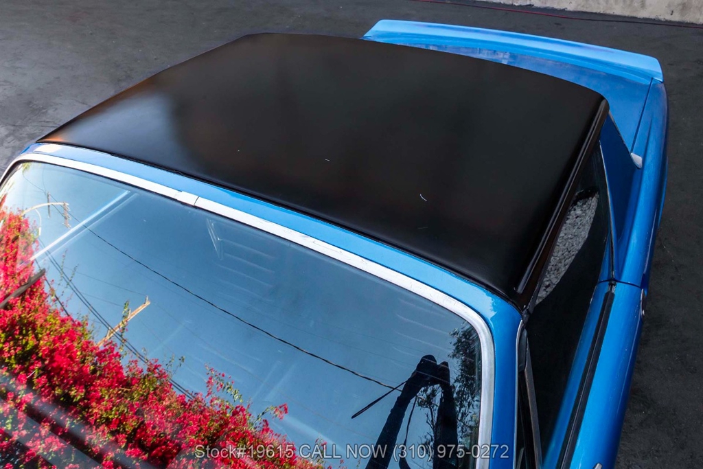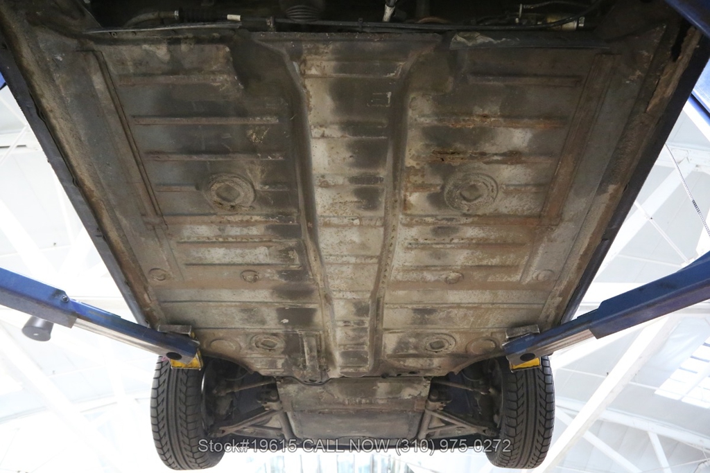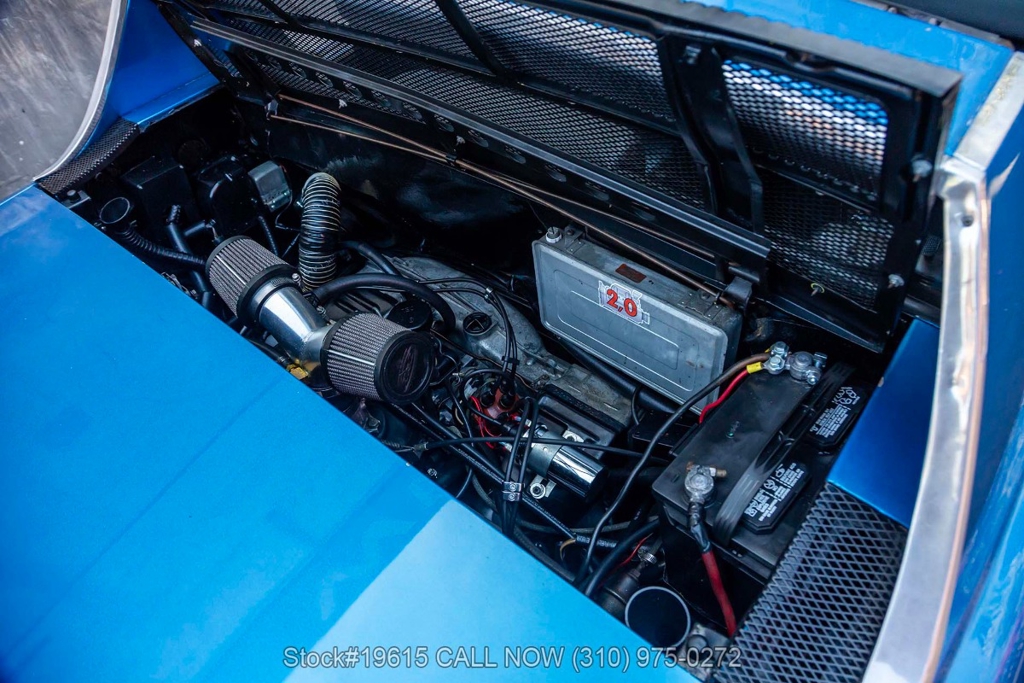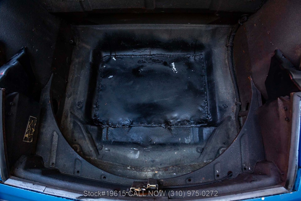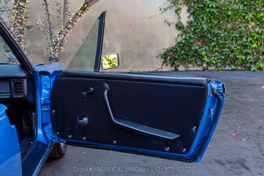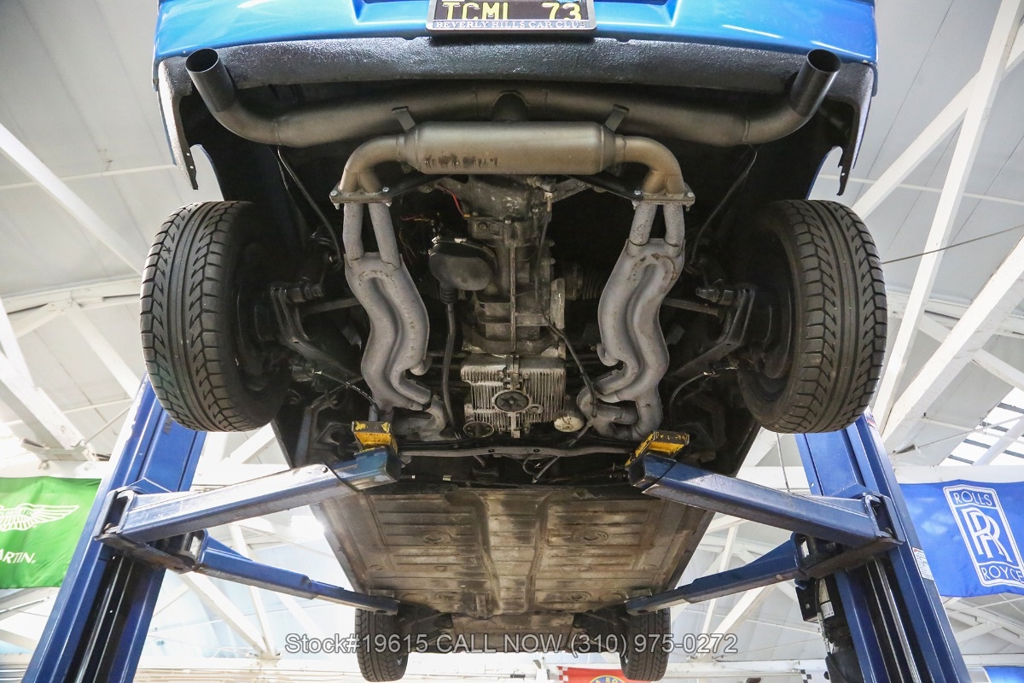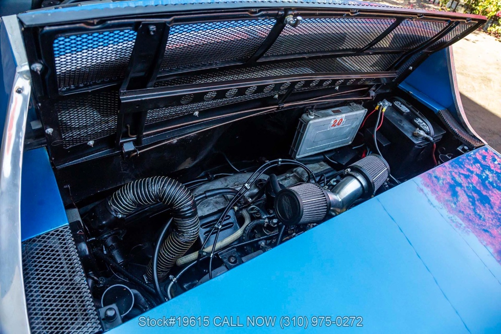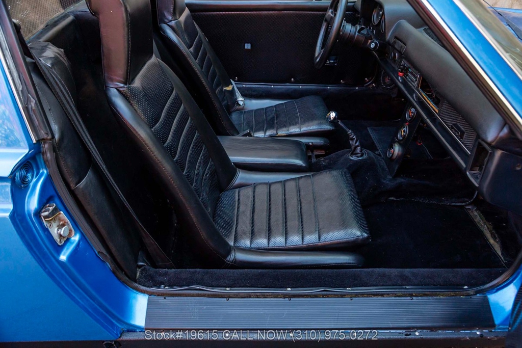 This 914 is equipped with a 5-speed manual transmission paired with a fuel-injected 2.0-liter flat-four engine. It features four-wheel disc brakes, dual exhaust outlets, and a rear trunk, along with the front storage compartment, offering practical space for a compact sports car. The exterior is further accented by chrome trim and 15-inch 5-spoke alloy wheels fitted with BFGoodrich tires, while a full-size spare is housed in the front trunk. The removable targa top provides the option for open-air driving when desired.