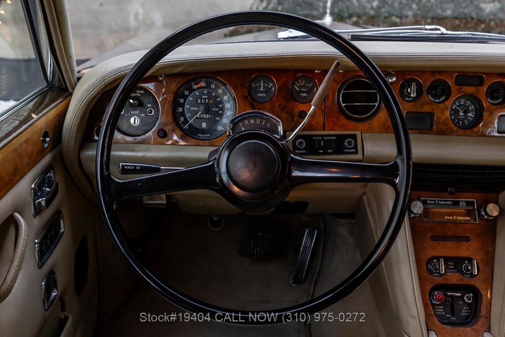 Inside, the car offers the comfort features expected of a Silver Shadow, including air conditioning, power windows, speed control, courtesy lights, a driver-side rearview mirror, and a fender-mounted antenna. These features highlight the model's focus on relaxed, dignified motoring rather than excess. Please note, this vintage car will need paint work to bring it back to its former visual splendor.
