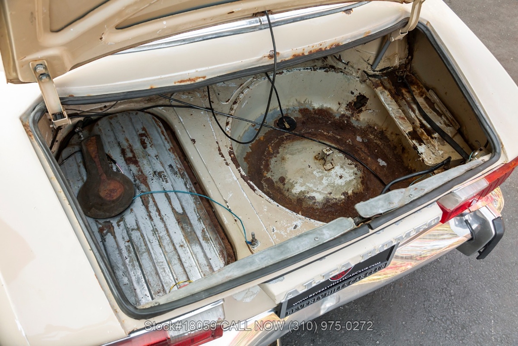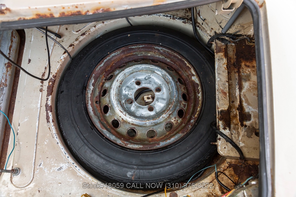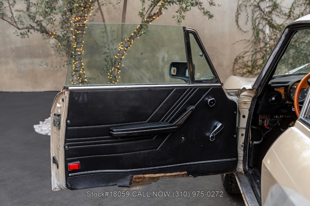 Equipped with a 5-speed manual transmission, SPICA mechanical fuel injection, four-wheel disc brakes, dual exhaust outlets, chrome bumpers, Jaeger instrumentation, wood dash, Personal wood steering wheel, 14-inch steel wheels, Semperit tires, jack, and fender-mounted antenna. Featured amenities include bucket seats, manual-crank windows, vent windows, pop-out rear quarter windows, driver-side rearview mirror, and sun visors.