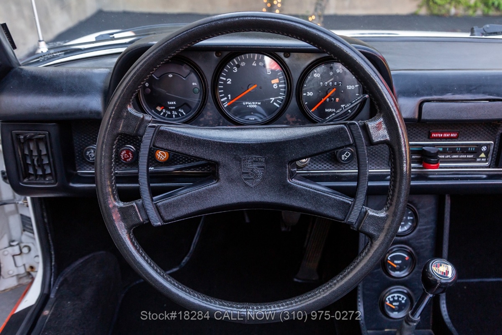 This Creamsicle is equipped with a 5-speed manual transmission, fuel-injected 2.0L flat-four engine, four-wheel disc brakes, VDO instrumentation, single exhaust outlet, four-spoke steering wheel, removable Targa top, fender-mounted antenna, front bumperettes, optional equipment 'Can-Am' limited edition, Hella taillights, and Summit tires. Amenities include dual-side rearview mirrors, center console, analog clock, a padded armrest, and a Toshiba stereo.