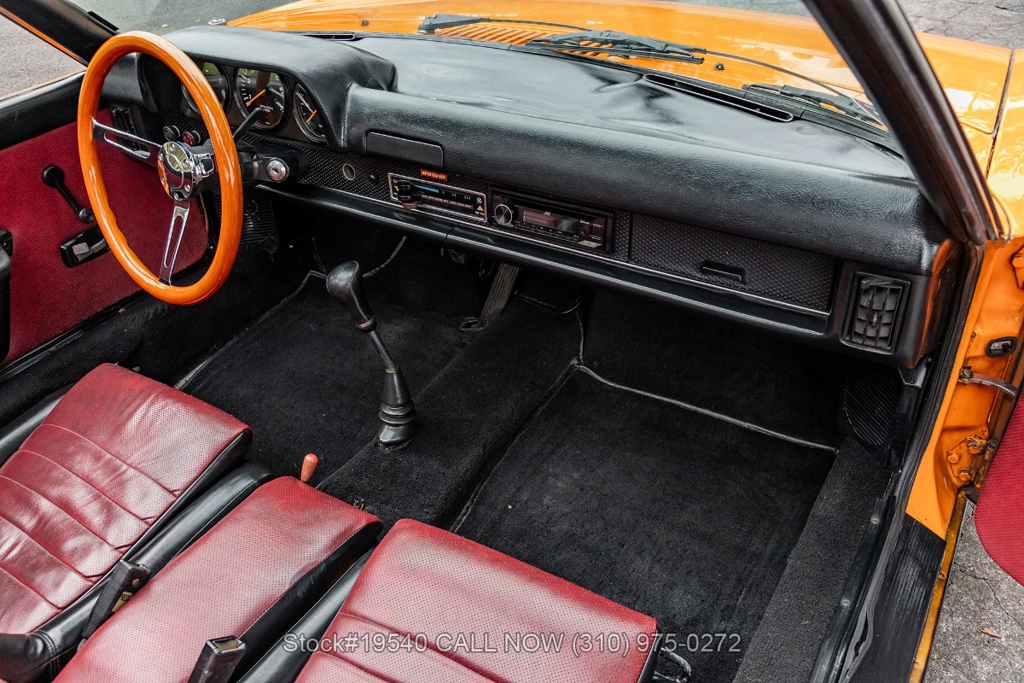 Introducing this 1974 Porsche 914 1.8L featured with matching numbers. Finished in its factory color Signal Orange (L20E) complemented with a bi-color Red and Black scheme.