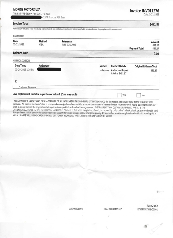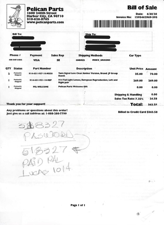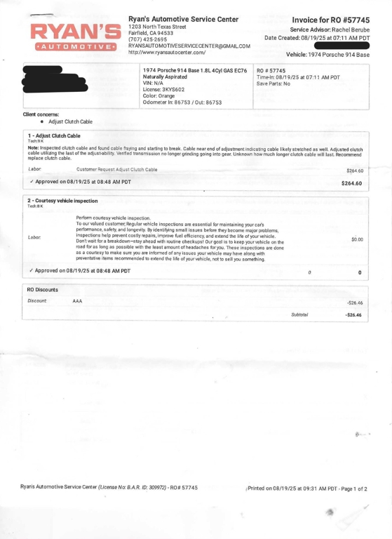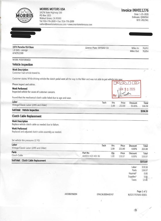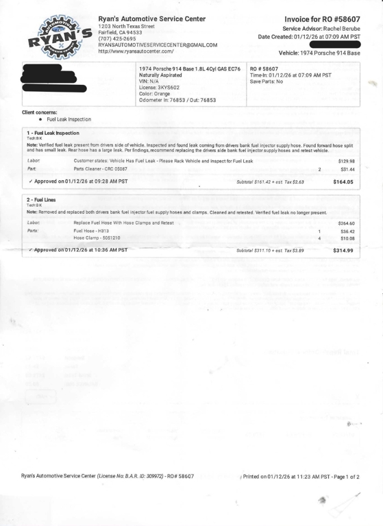 Included with this 914 are receipt copies covering the period from June 2020 through January 2026. These documents provide valuable insight into the car's recent service history. This classic vehicle carries a salvage title, offering an opportunity to own a Porsche at a more accessible price point.