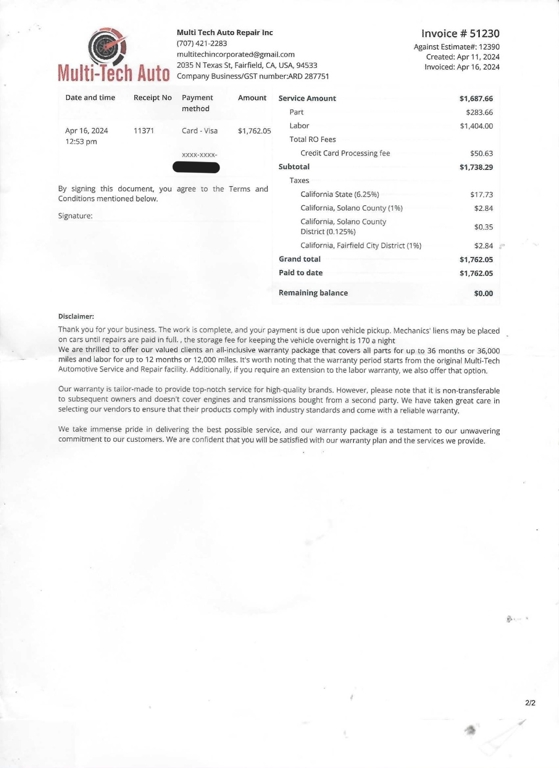 - Service Receipt Copies (2020-2026)