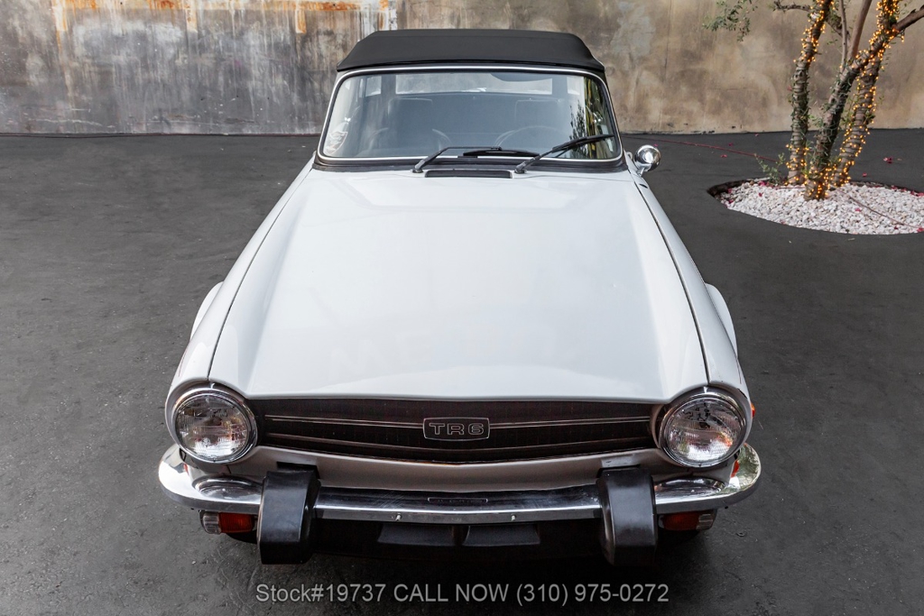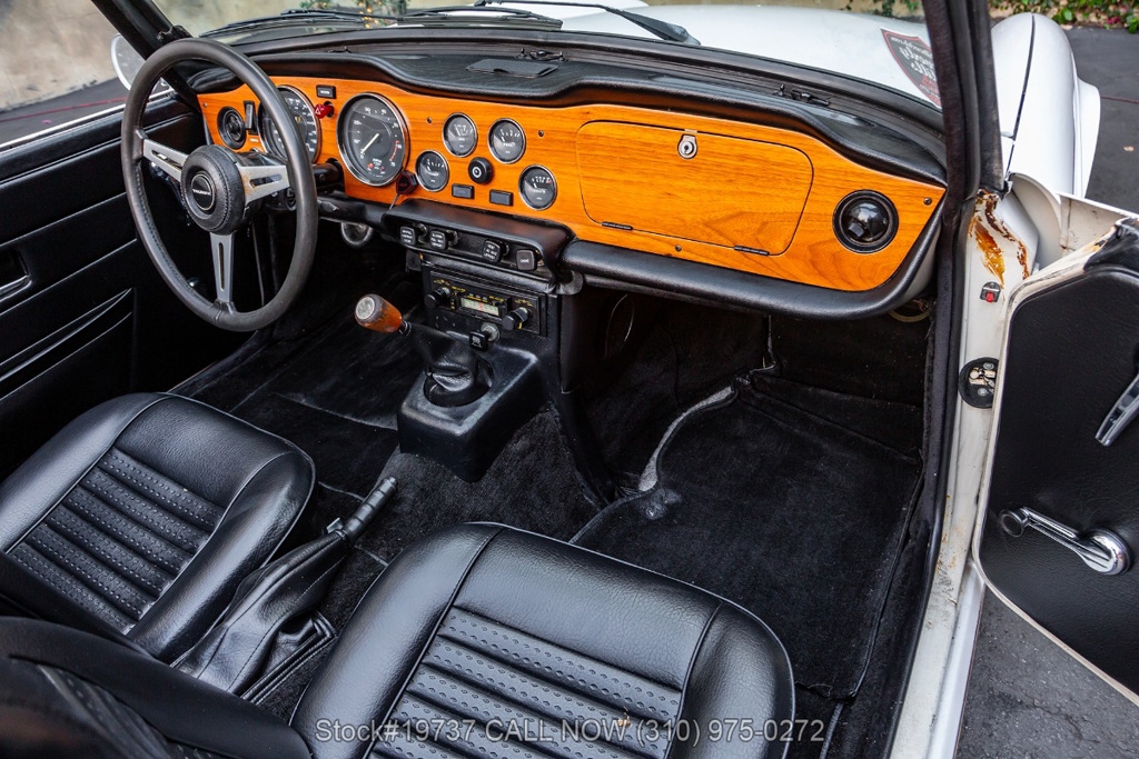Introducing this 1974 Triumph TR6, presented in its factory color White (19) complemented with a black interior that perfectly suits the car's purposeful British roadster styling. With its classic lines, chrome accents, and convertible soft top, this TR6 embodies the spirit of open-air motoring and delivers the kind of raw, engaging driving experience that made Triumph a legend.