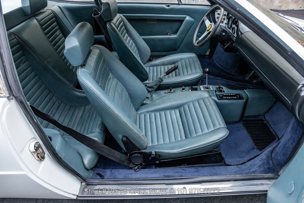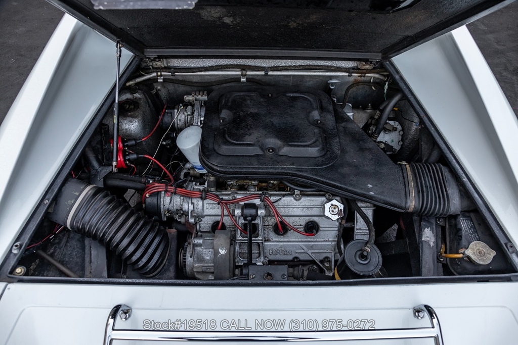 Powered by a 2.9-liter V8 engine fed by four carburetors and paired with a 5-speed manual transaxle with Ferrari's signature gated shifter. Four-wheel disc brakes provide stopping power, and the car rides on 14-inch Cromodora-branded alloy wheels fitted with Michelin tires. The Bertone-designed body stands apart from other Ferraris of the era with its sharp, angular lines, retractable headlights, black impact bumpers, side marker lights, quad exhaust outlets, and rear luggage rack. Subtle details such as the Dino 308 GT4 badging and Bertone script reflect its unique place in Ferrari history.