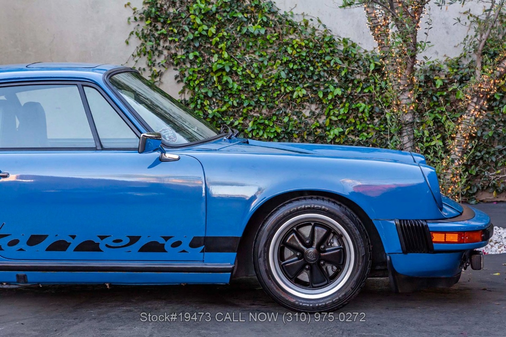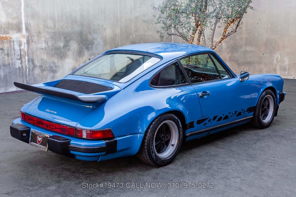 Introducing this rare 1975 Porsche 911 Carrera Sunroof Coupe, showing 63,653 miles on the odometer. This particular example is finished in the stunning special-order factory color Gemini Blue Metallic (335), beautifully complemented by a black interior. Exterior details include bold black "Carrera" side scripts along with matching black window trim and door handles, giving the car a purposeful and unmistakably classic Porsche appearance. For the 1975 model year, this car represents #360 of only 395 Carrera Coupes ever produced, making it an exceptionally limited and desirable example of the legendary air-cooled 911 lineage.