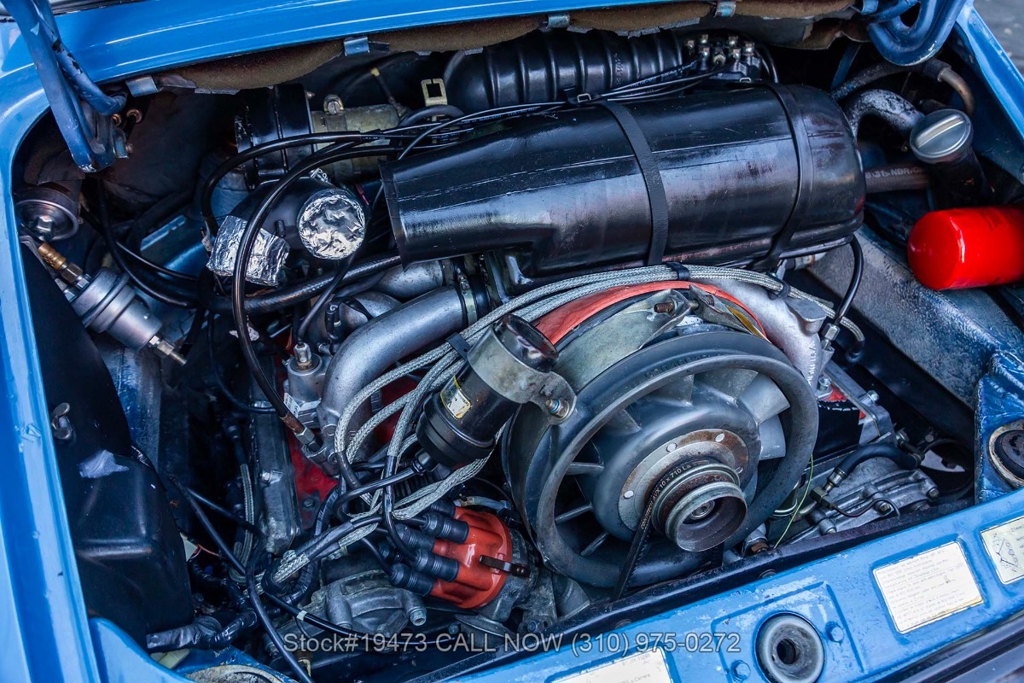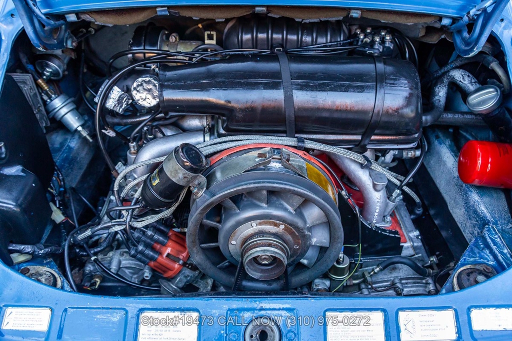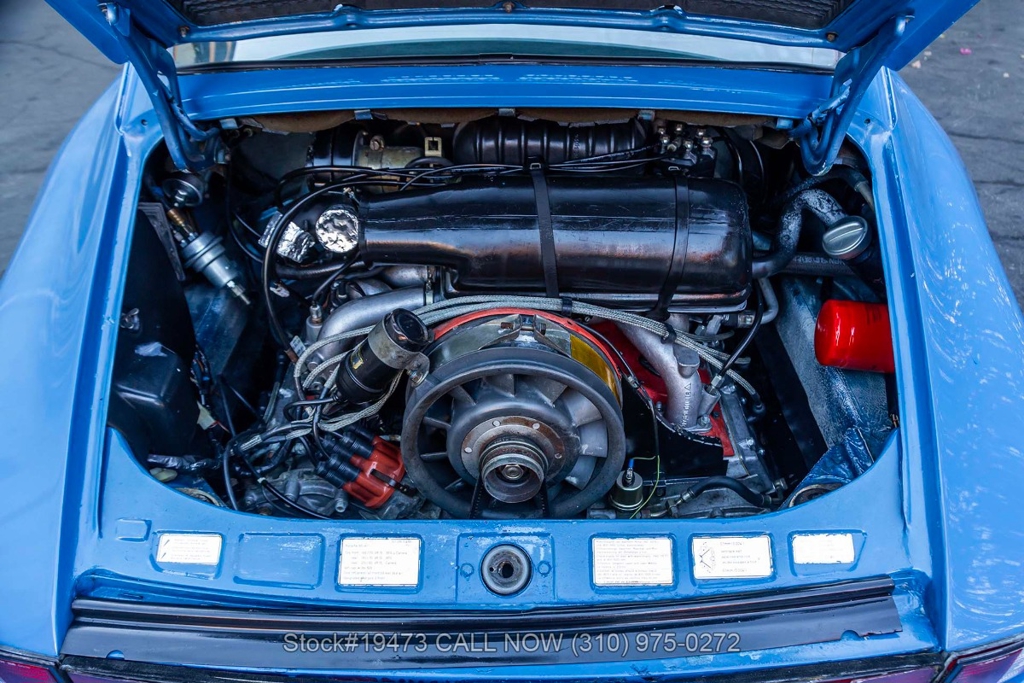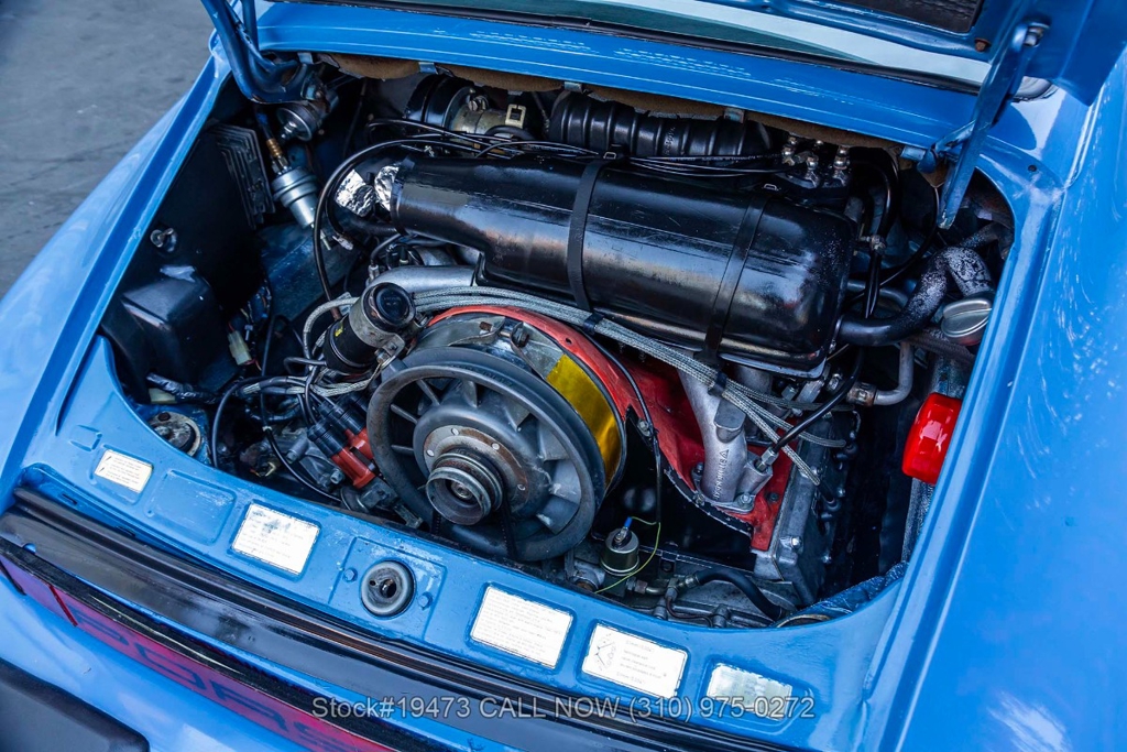 Power comes from a flat-six cylinder engine paired with the engaging 915 five-speed manual transaxle, delivering the visceral driving experience that enthusiasts expect from a vintage 911. Additional equipment includes fuel injection, four-wheel disc brakes, a sunroof, and a single exhaust outlet. The exterior is further enhanced by Bosch fog lights, rear rubber bumperettes, a classic rear spoiler, BF Goodrich tires, and the iconic 15-inch Fuchs-style wheels, all combining to give the car its timeless sporting presence.
