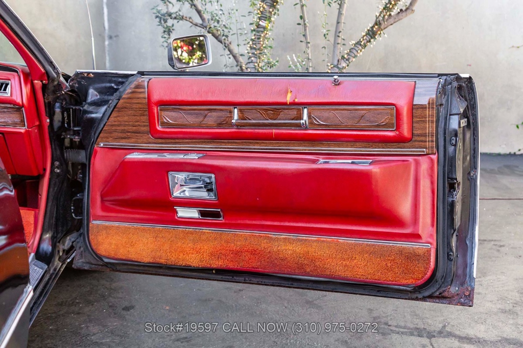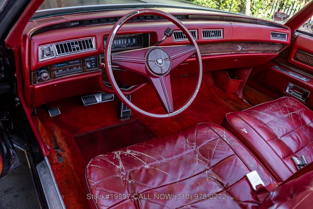 Introducing this 1976 Cadillac Eldorado Convertible, a classic example of American luxury from the mid-1970s, finished in its factory Sable Black (19) exterior with a deep red interior. This Eldorado blends traditional Cadillac elegance with the presence of a big V8, making it a comfortable and stylish weekend cruiser.