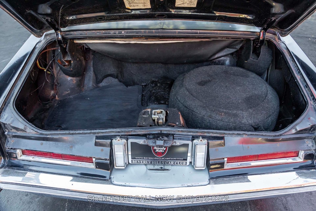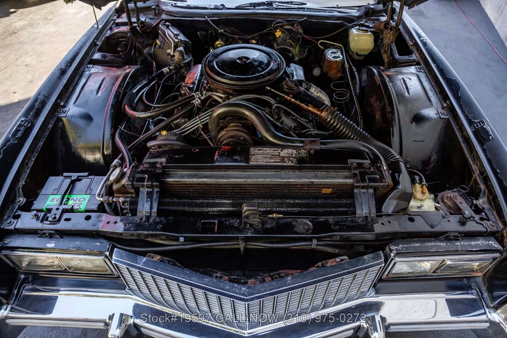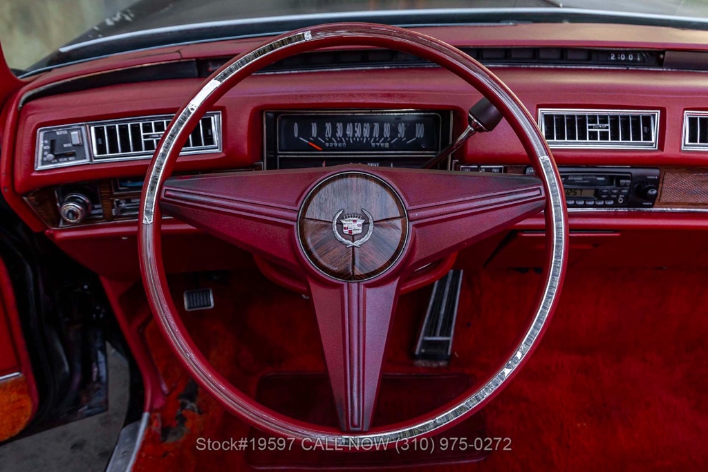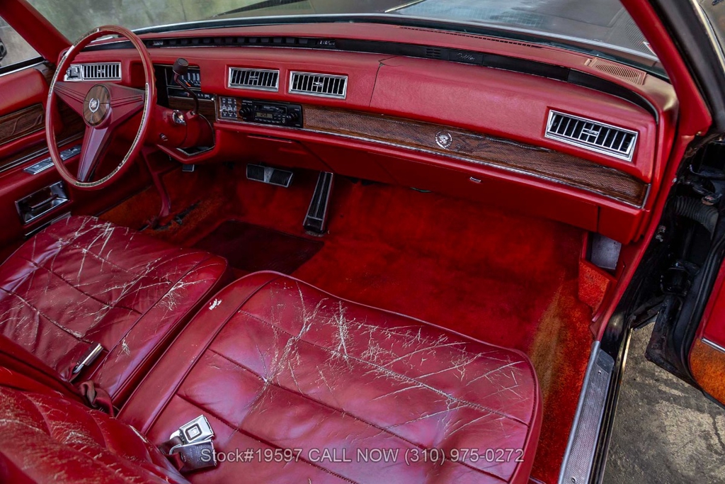 Under the hood, the massive 500ci V8 is paired with an automatic transmission. Additional equipment includes power steering, a 4-barrel carburetor, four-wheel disc brakes, a single exhaust outlet, a jack, and a spare tire. The 15-inch steel wheels, with Cadillac hubcaps maintain the classic, understated style. The interior is spacious and well-appointed, featuring power-adjustable dual-comfort front seats, air conditioning, cruise control, AM/FM radio, power door locks, and power windows. Every detail reflects Cadillac's focus on comfort and convenience, from the plush seating to the thoughtfully designed controls.