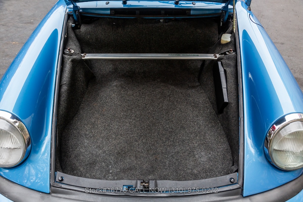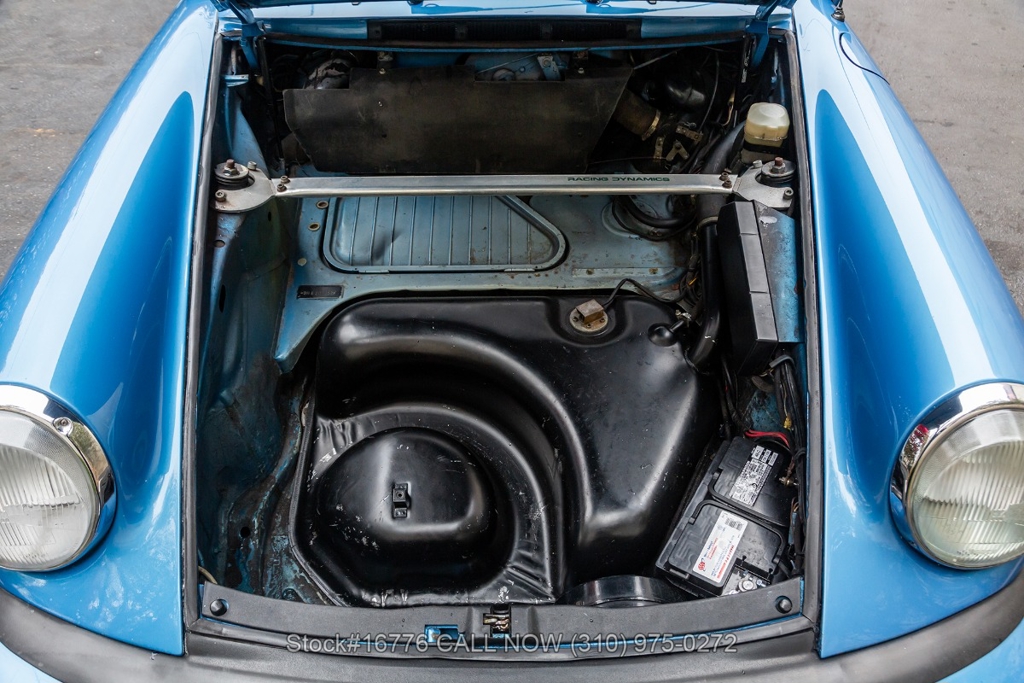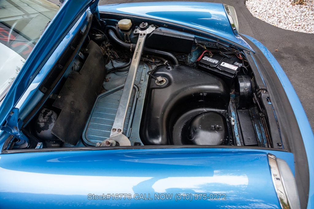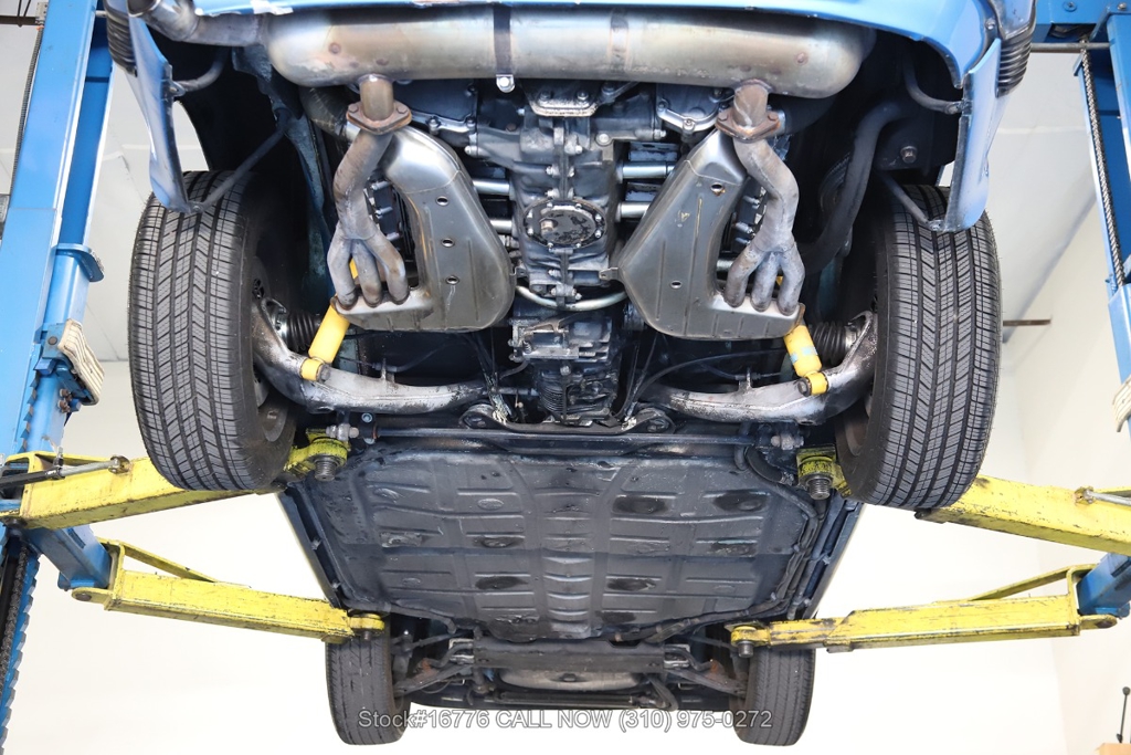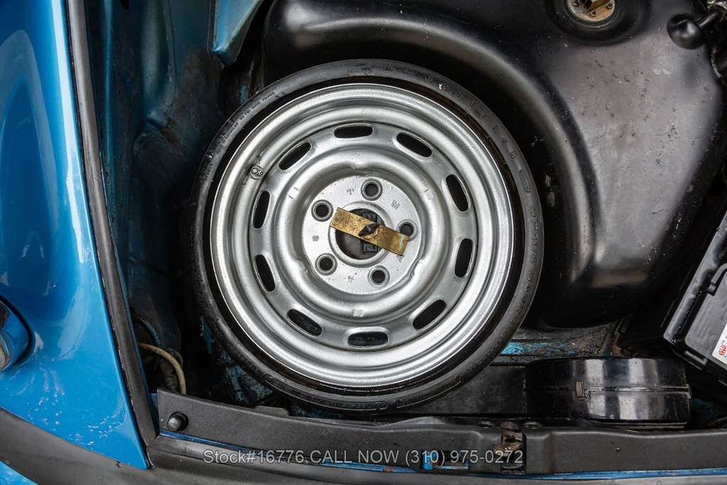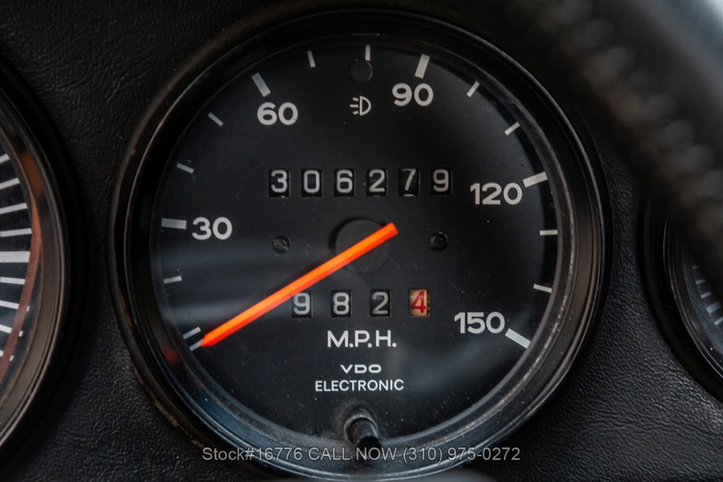 Equipped with a 915 five-speed manual transmission, 2.7-liter air-cooled Flat-six engine, sunroof, VDO instrumentation, four-wheel disc brakes, single exhaust outlet, rear rubber bumperettes, chrome headlight rings, Bridgestone tires, Fuchs-style wheels, and a spare tire fitted in the front trunk. Featured amenities include air conditioning, power windows, dual-side rearview mirrors, and Kenwood radio.