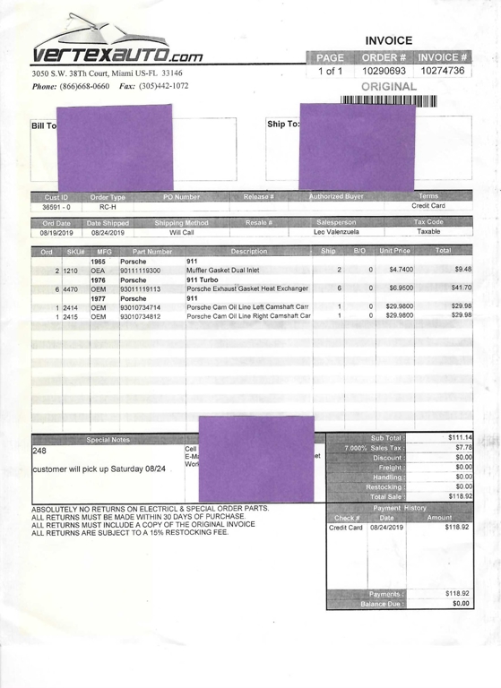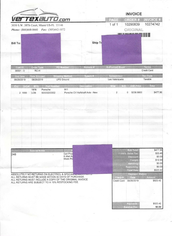 Once full payment is received, the Seller will provide clear title, Bill of Sale and additional Department of Motor Vehicle forms to you for signature. The forms must be completed before the Automobile is shipped or made available to you.