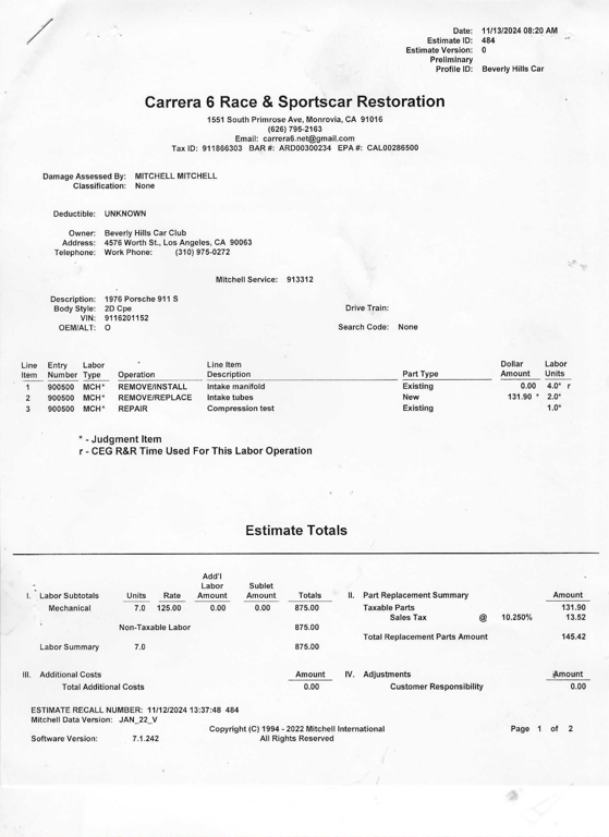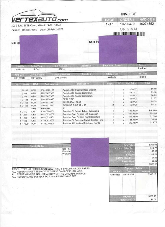 California buyers will be charged sales tax and licensing and processed on your behalf. Out of state buyers and over sea's buyers (including other countries), we will send title and you will be responsible for registration and taxes in your own state or providence. All transactions will be charged a $199 documentation fee in addition to the sales price. If leaving the state or country, the car must be picked up by a transportation company that can provide a bill of lading, otherwise California sales tax will be charged. (All licensed transport companies provide these).