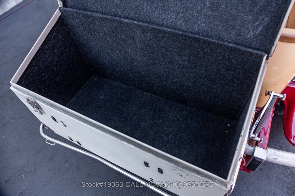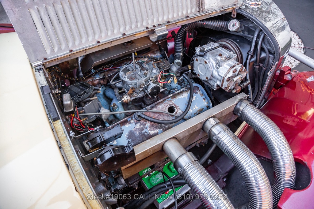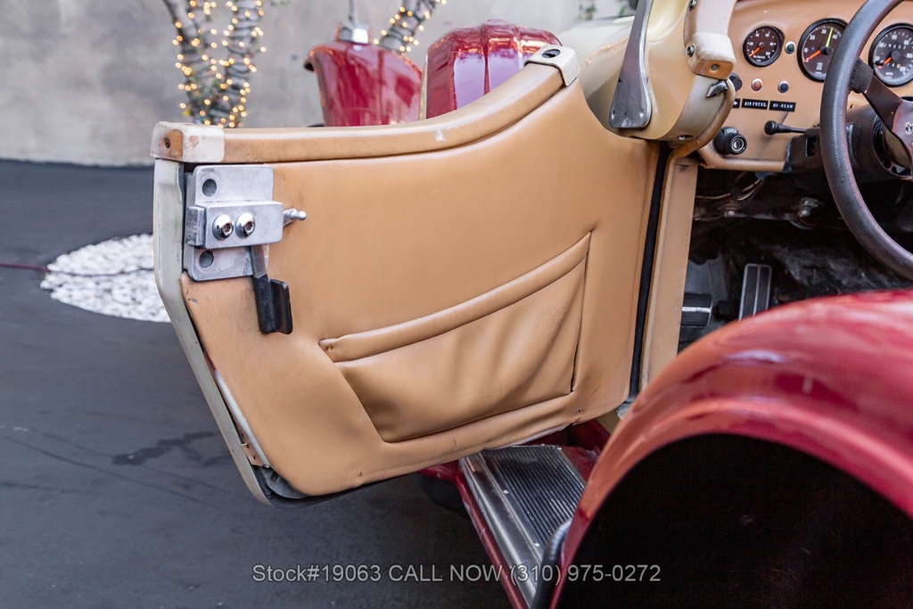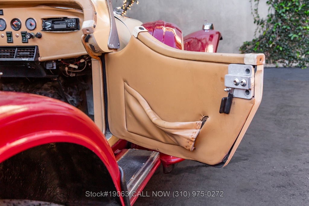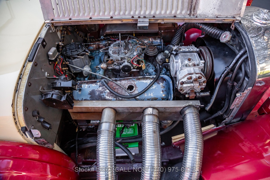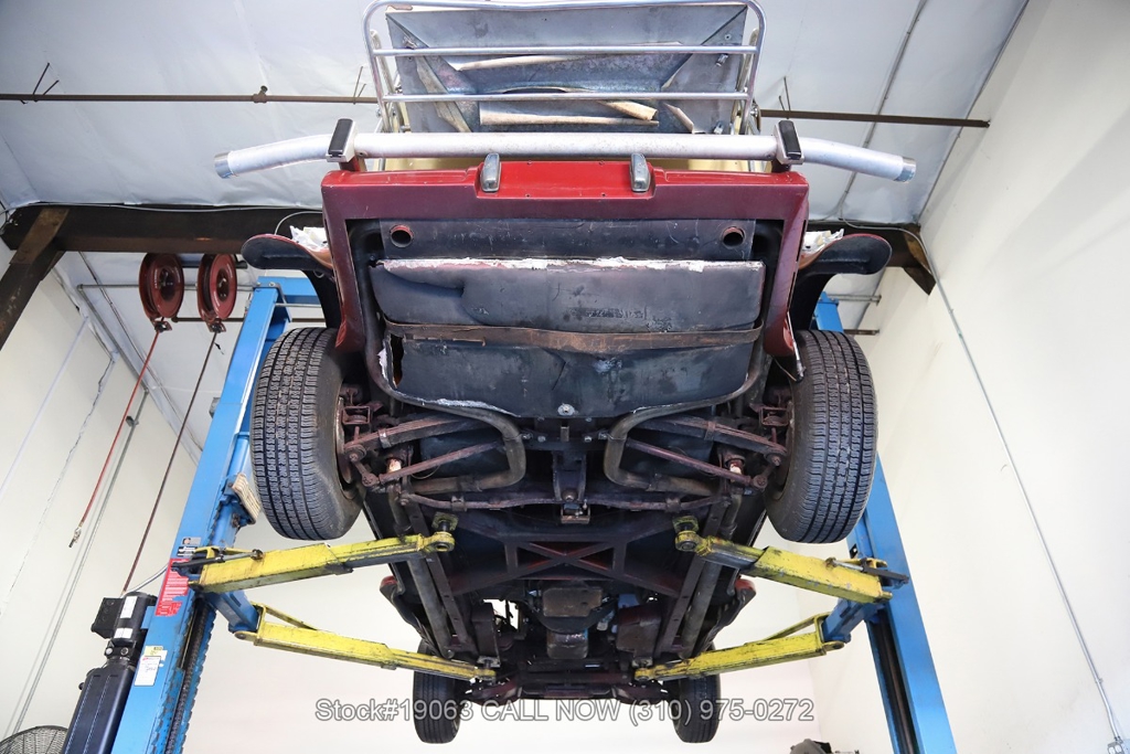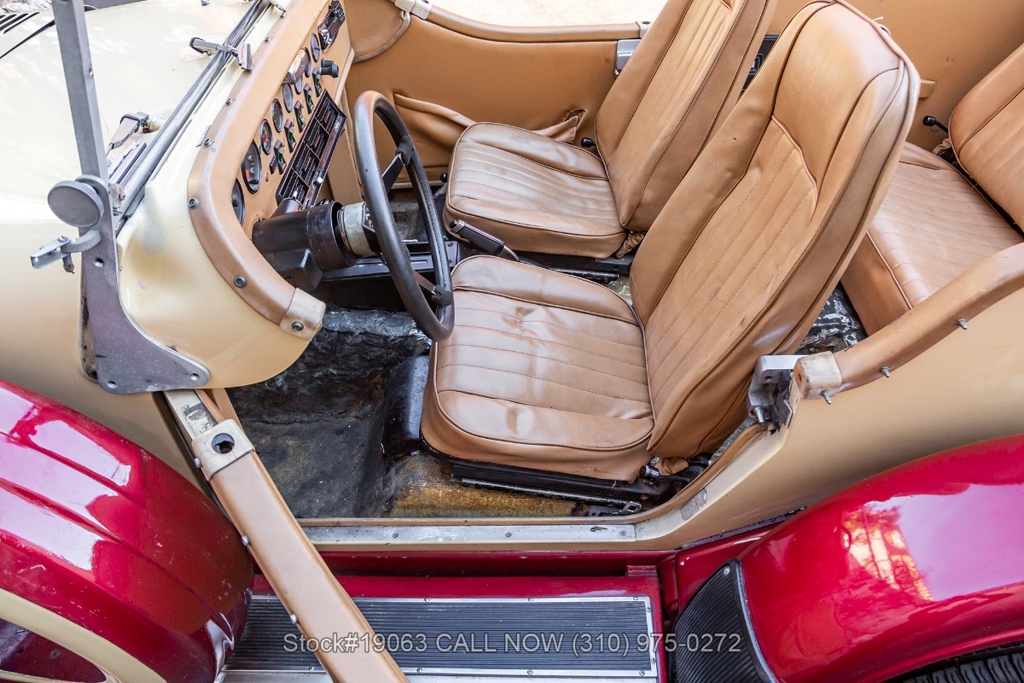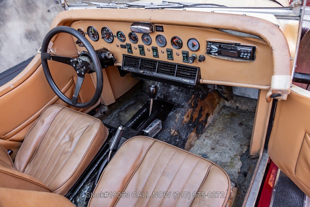 Equipped with an automatic transmission, V8 engine, four-wheel disc brakes, 4-barrel carburetor, VDO instrumentation, a 3-spoke steering wheel, and 15-inch wire wheels. The detachable hard top allows for open-air when desired, while the side exhaust pipes add a touch of sportiness to its classic design. Practical elements such as map pockets, side curtains, and a rear luggage rack enhance the functionality of this vehicle, making it as practical as it is stylish.