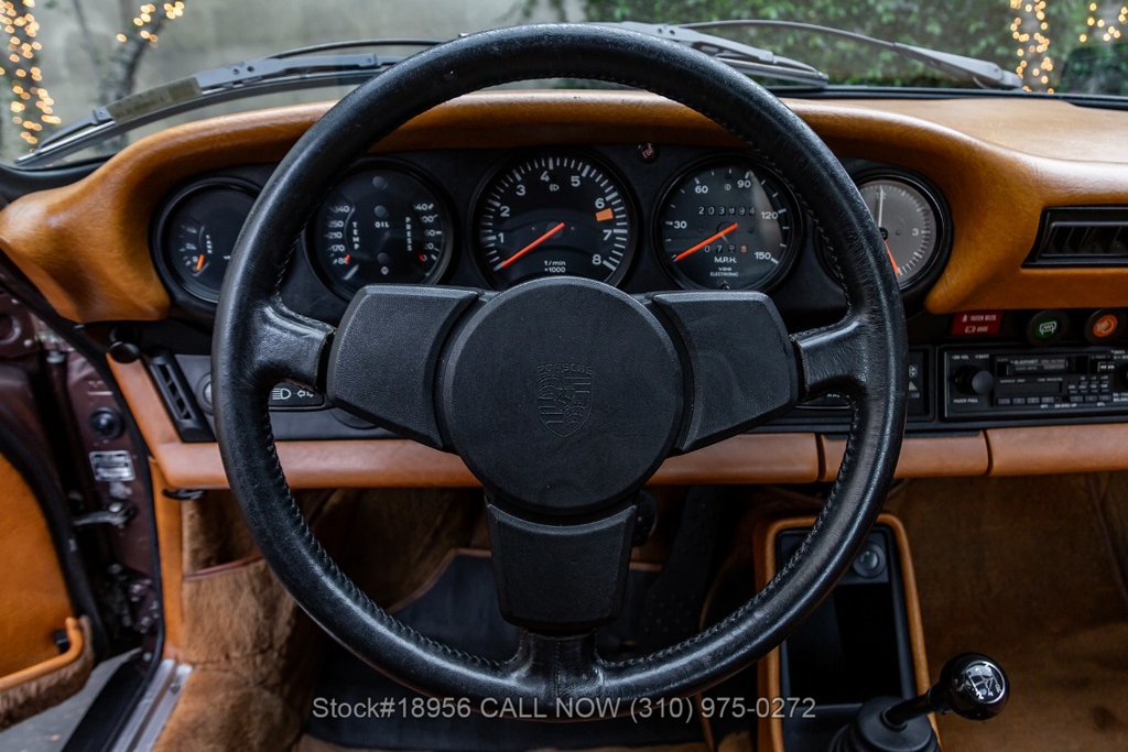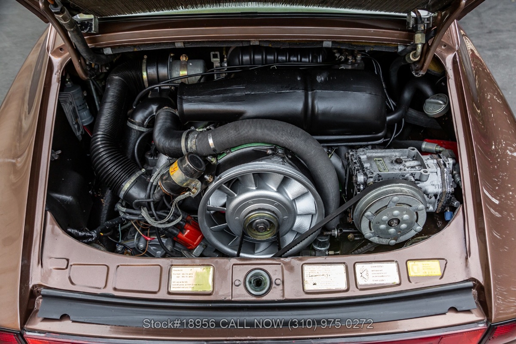 Equipped with a 5-speed manual transaxle, Flat 6 Cylinder 2.7-liter engine, fuel injection, four-wheel disc brakes, single exhaust outlet, VDO instrumentation, Bosch front fog lights, rear bumperettes, 3-spoke steering wheel, 16-inch Fuchs-style wheels, jack, and a spare tire fitted in the front trunk. Convenience features include air conditioning, a pair of bucket seats, dual-side rearview mirrors, power windows, courtesy lights, glove box, Blaupunkt stereo, and an analog clock.