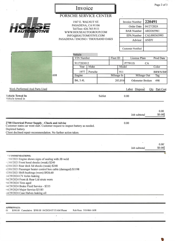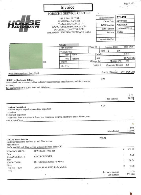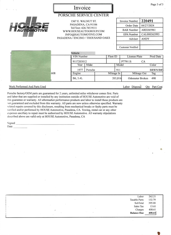 In addition, this Porsche comes with an owner's manual and service receipt copies dating from April 2004 through April 2024. Do not miss this excellent opportunity to acquire a highly desirable air-cooled 911S that is mechanically sound. For $69,950
