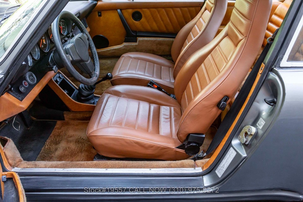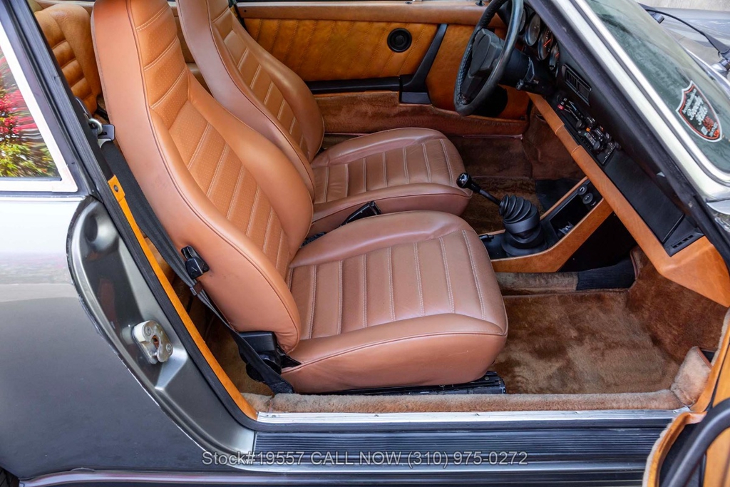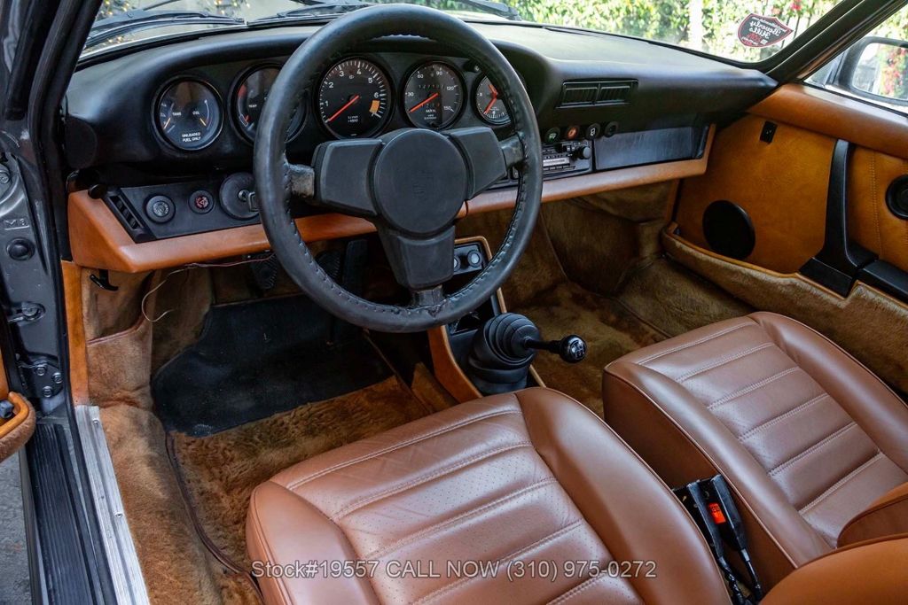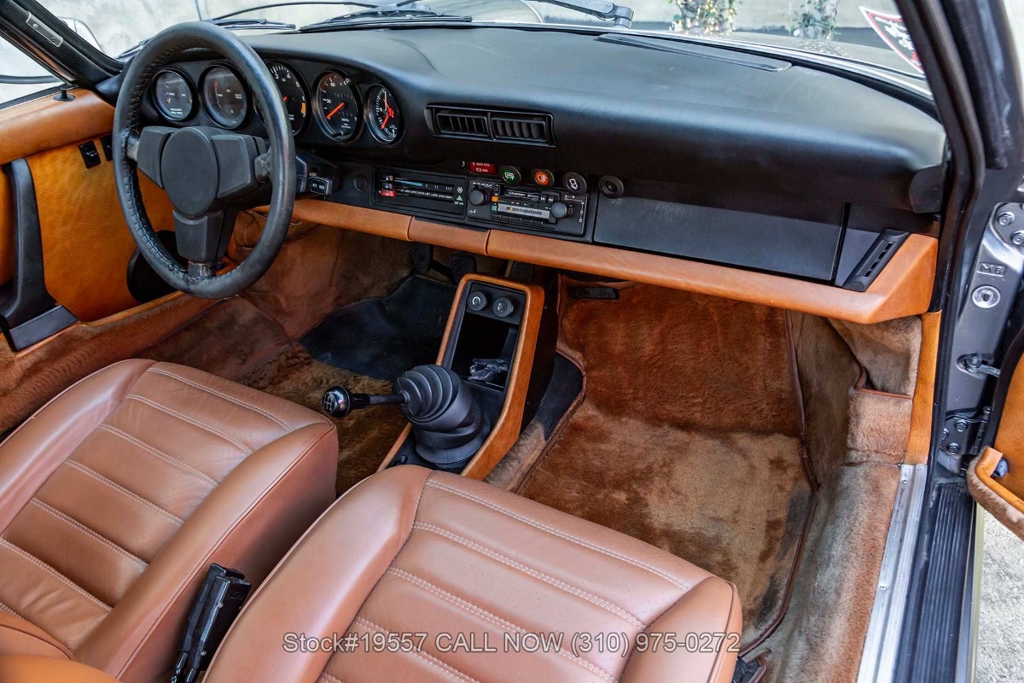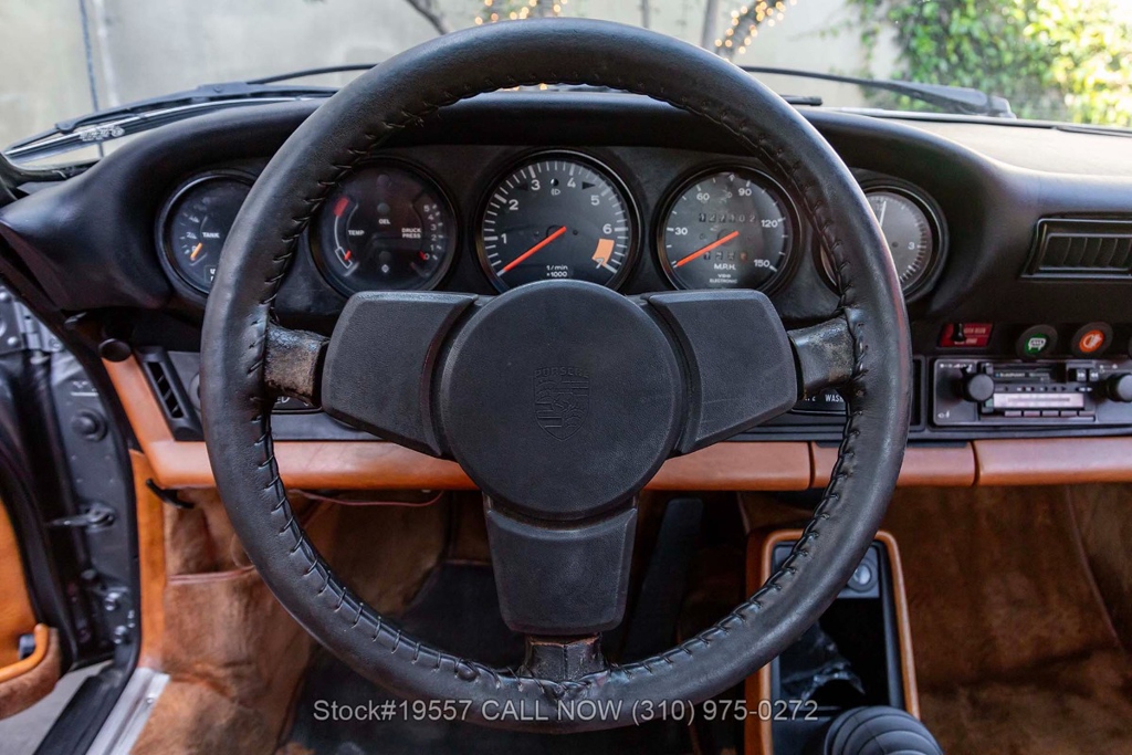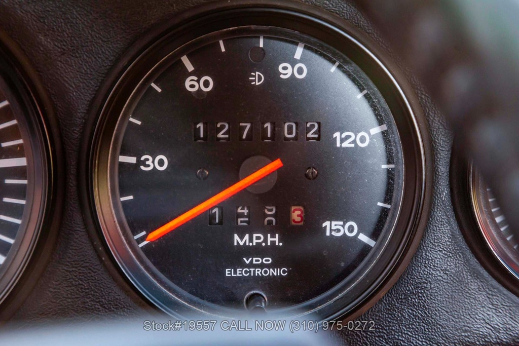 Inside, the cabin reflects the purposeful simplicity Porsche is known for. It features supportive bucket seats, power windows, and a driver-oriented layout centered around classic VDO instrumentation. Additional interior appointments include a Blaupunkt radio with a fender-mounted antenna, a 3-spoke steering wheel, dual outside mirrors, door pockets, glove box, and an analog clock. The Cork interior beautifully complements the exterior finish while creating a warm and inviting cockpit that remains focused on the driving experience.