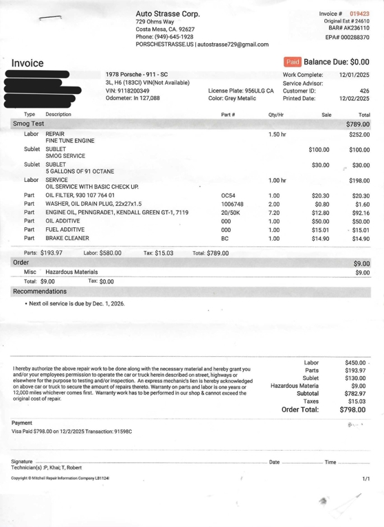 Adding to its appeal, this 911SC comes with its owner's manual, maintenance book, and service receipt copies totaling $32,126.15, documenting work performed from July 1980 through December 2025, providing helpful history that reflects the care and attention the car has received over the years.