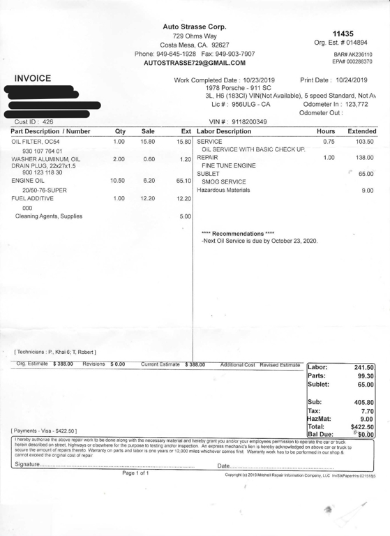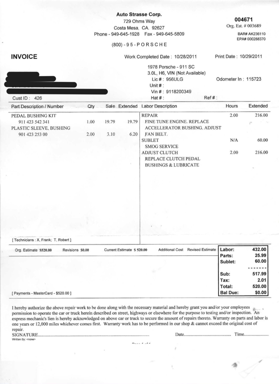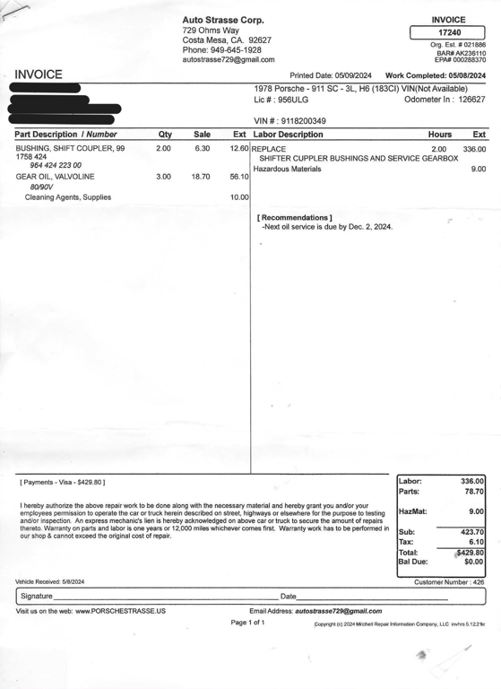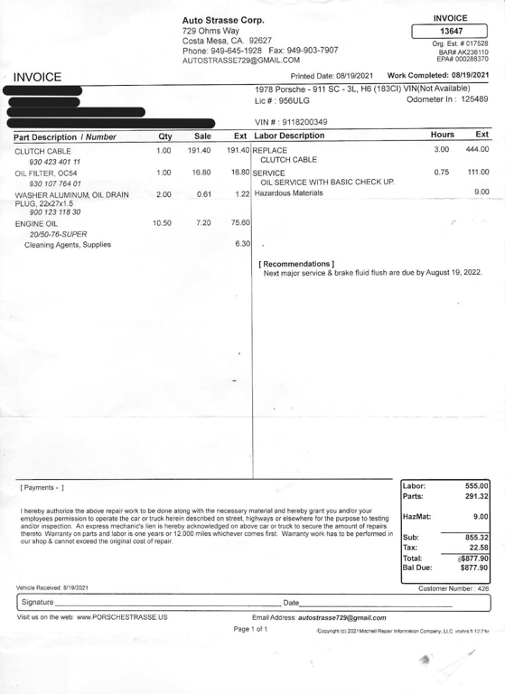 California buyers will be charged sales tax and licensing and processed on your behalf. Out of state buyers and over sea's buyers (including other countries), we will send title and you will be responsible for registration and taxes in your own state or providence. All transactions will be charged a $199 documentation fee in addition to the sales price. If leaving the state or country, the car must be picked up by a transportation company that can provide a bill of lading, otherwise California sales tax will be charged. (All licensed transport companies provide these).