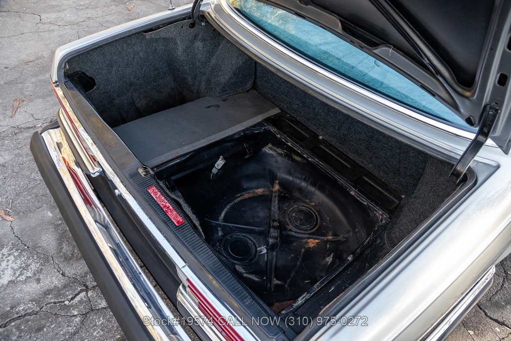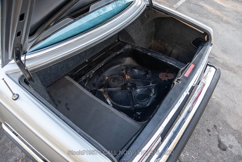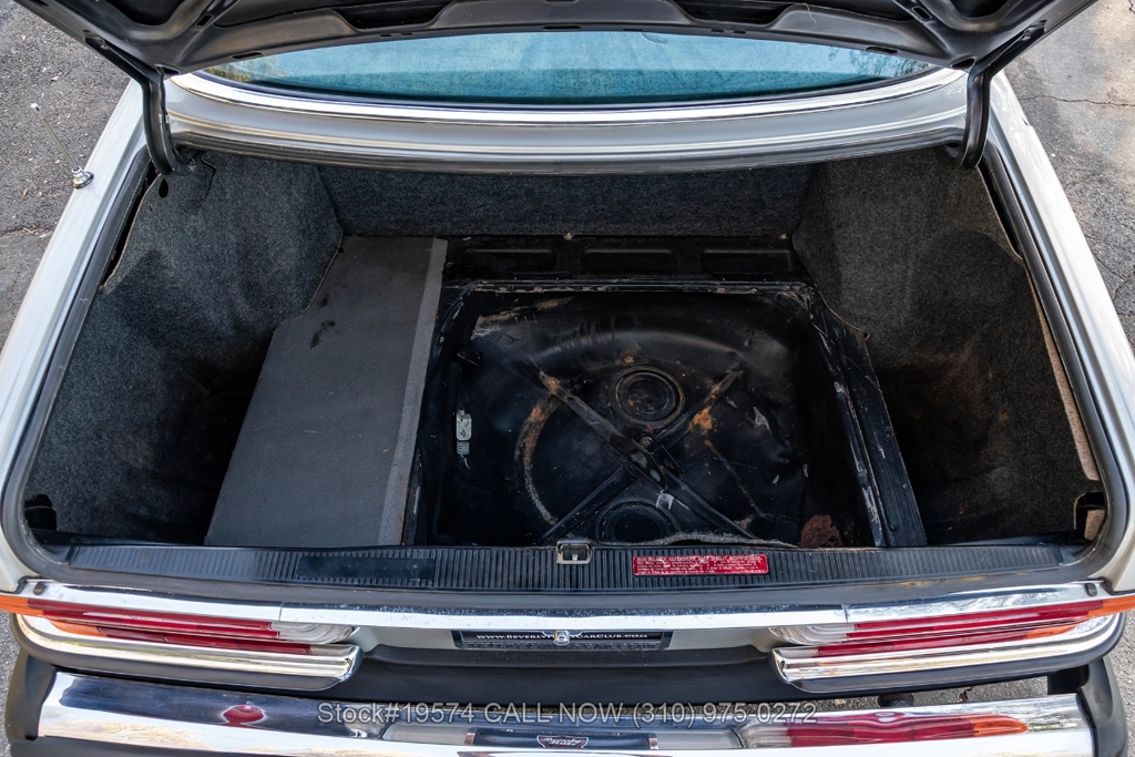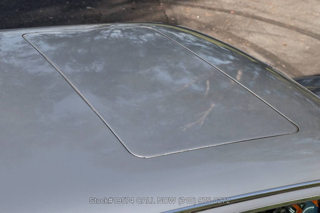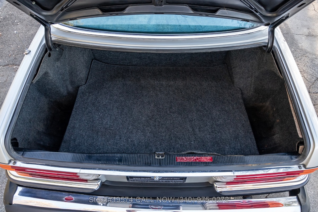 Equipped with a massive 6.9-liter V8 paired with an automatic transmission. Additional equipment includes four-wheel disc brakes, twin exhaust finishers, a sliding roof, VDO instrumentation, a four-spoke steering wheel, chrome bumpers with rubber guards, side moldings, chrome trim, Michelin tires, and 14-inch Bundt-style alloy wheels. The trunk houses a spare tire along with the Bilstein jack.