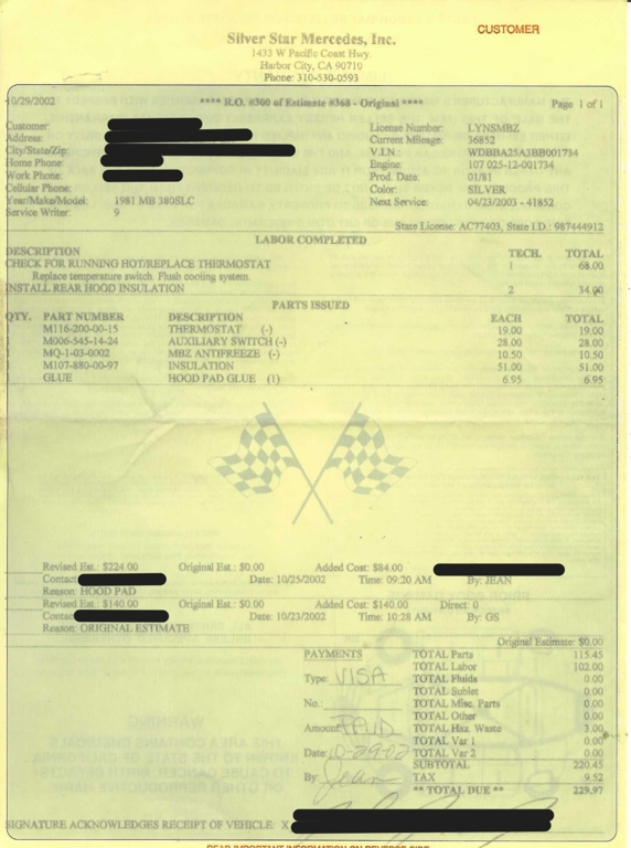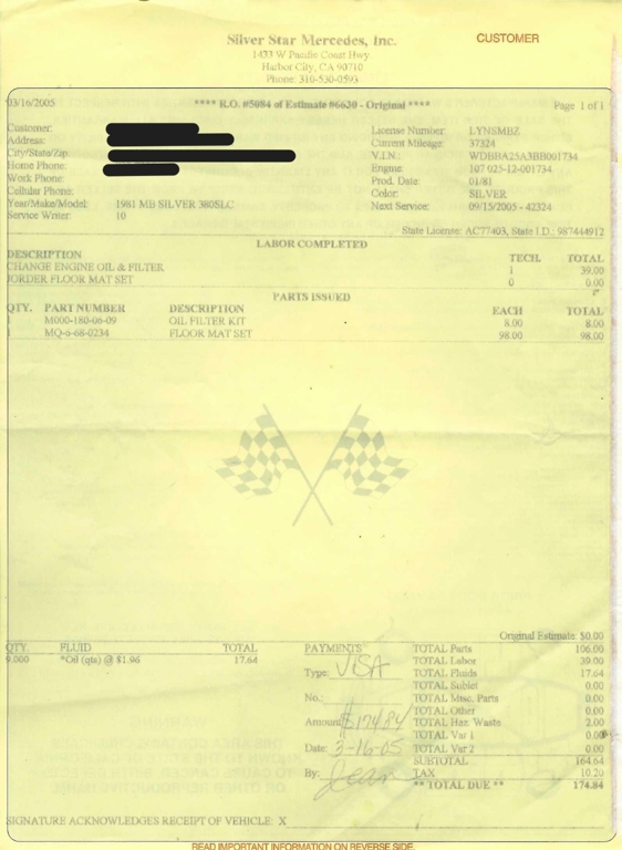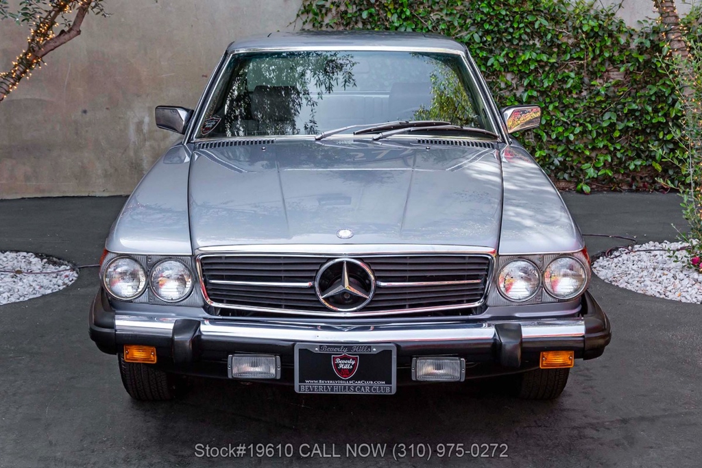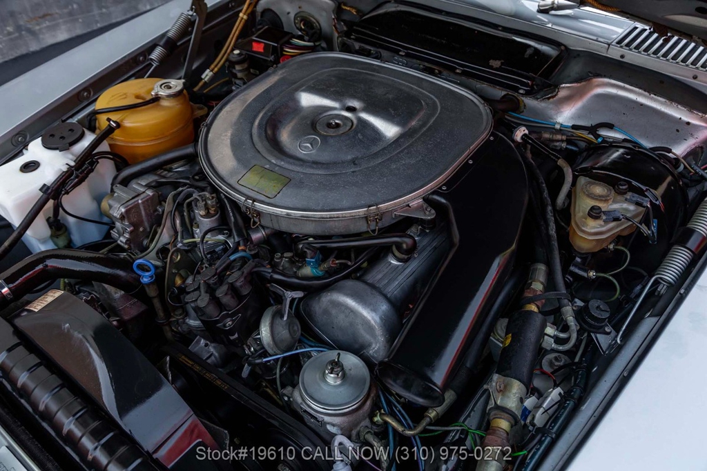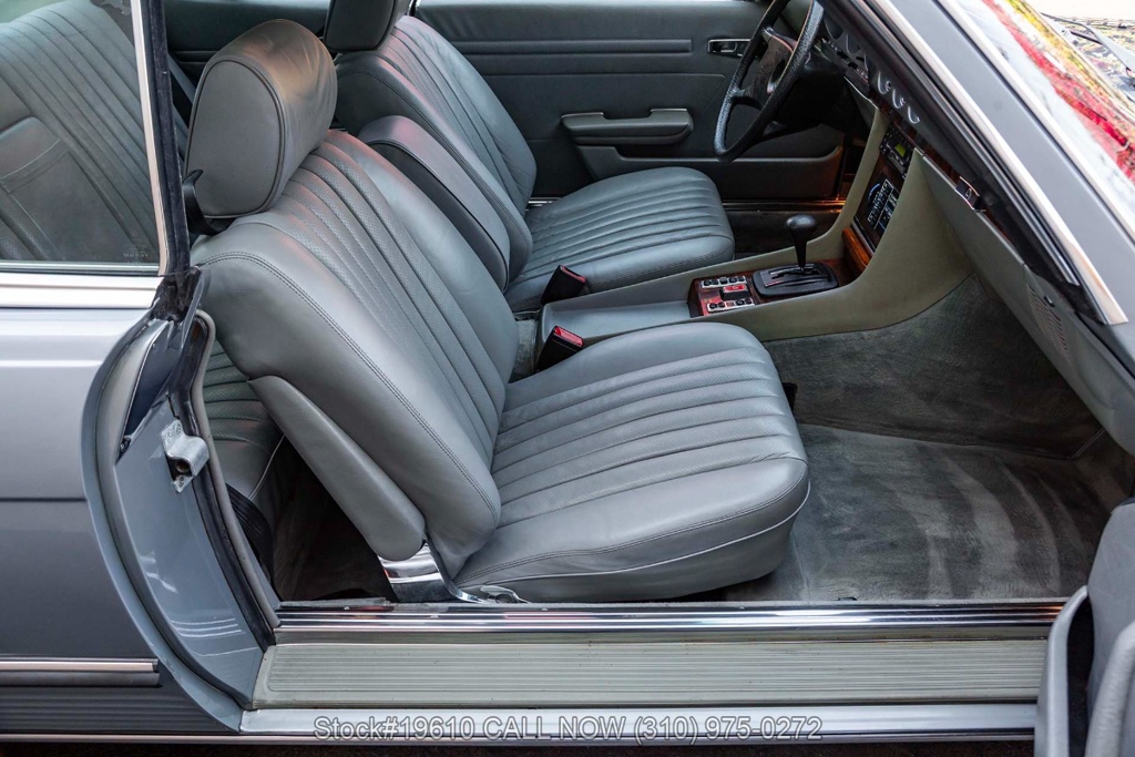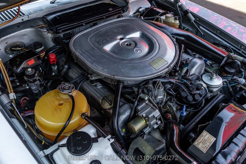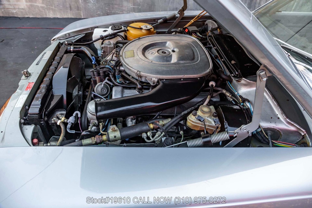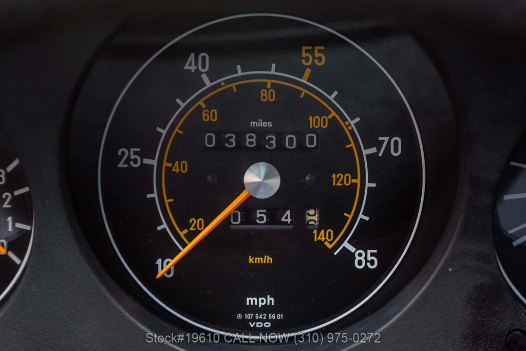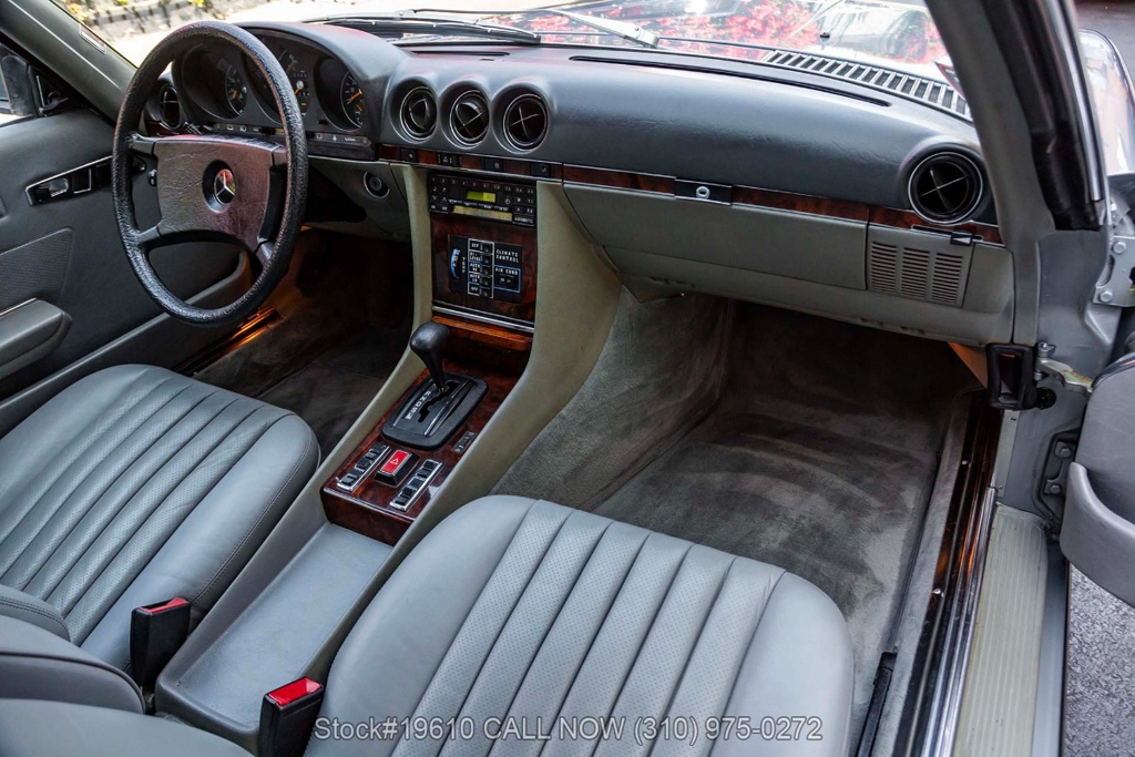 Powered by a fuel-injected V8 paired with an automatic transmission, this 380SLC is equipped with power-assisted four-wheel disc brakes and power steering for a composed driving experience. Exterior details include chrome bumpers with rubber guards, body side moldings, quad headlamps, Bosch-branded fog lights, and a full-size spare housed in the trunk.