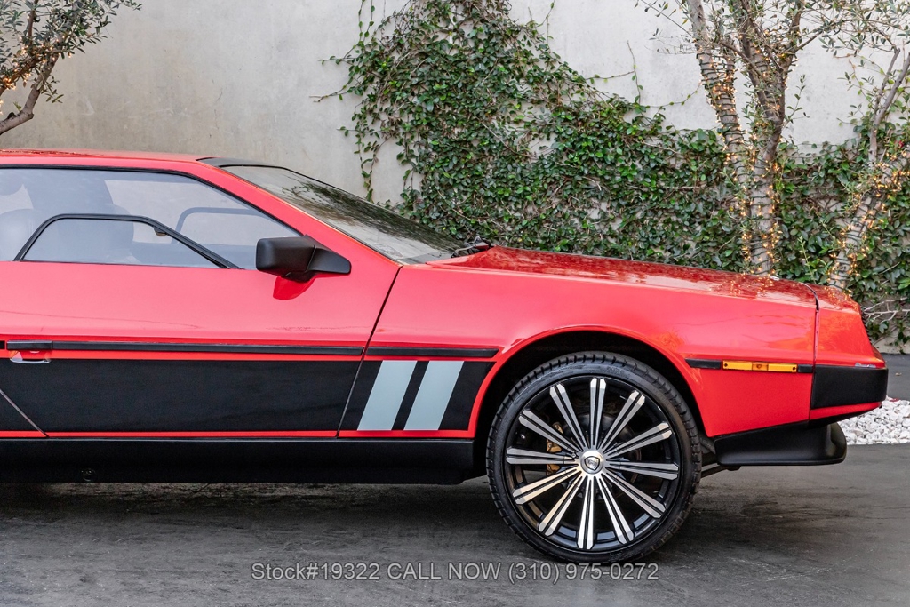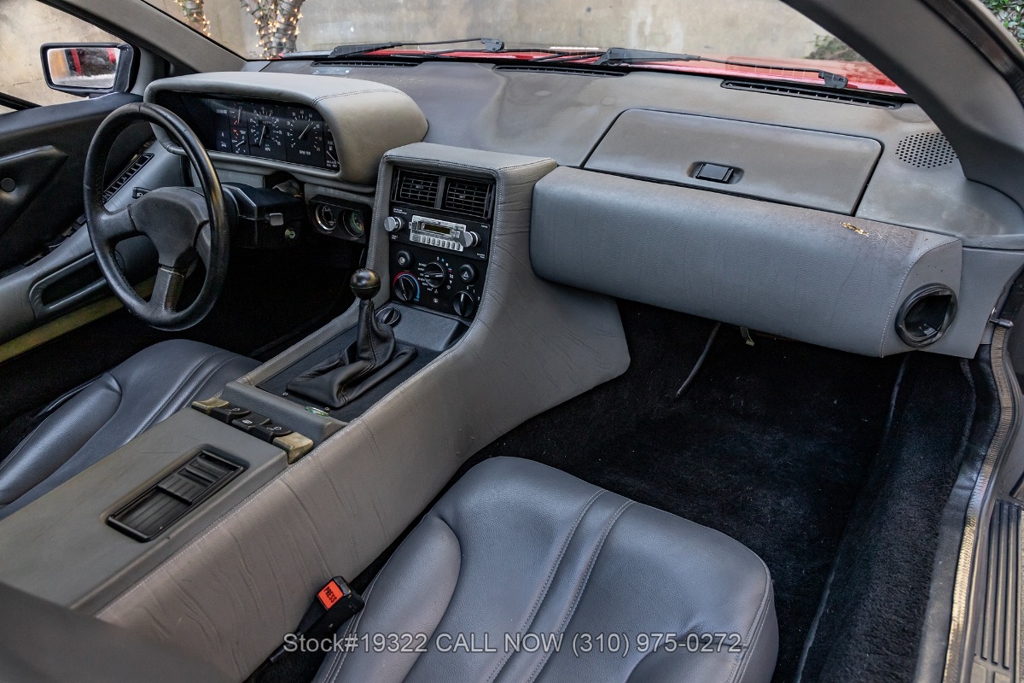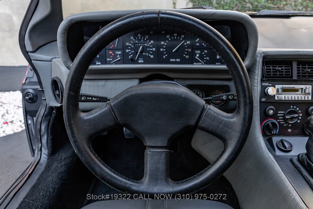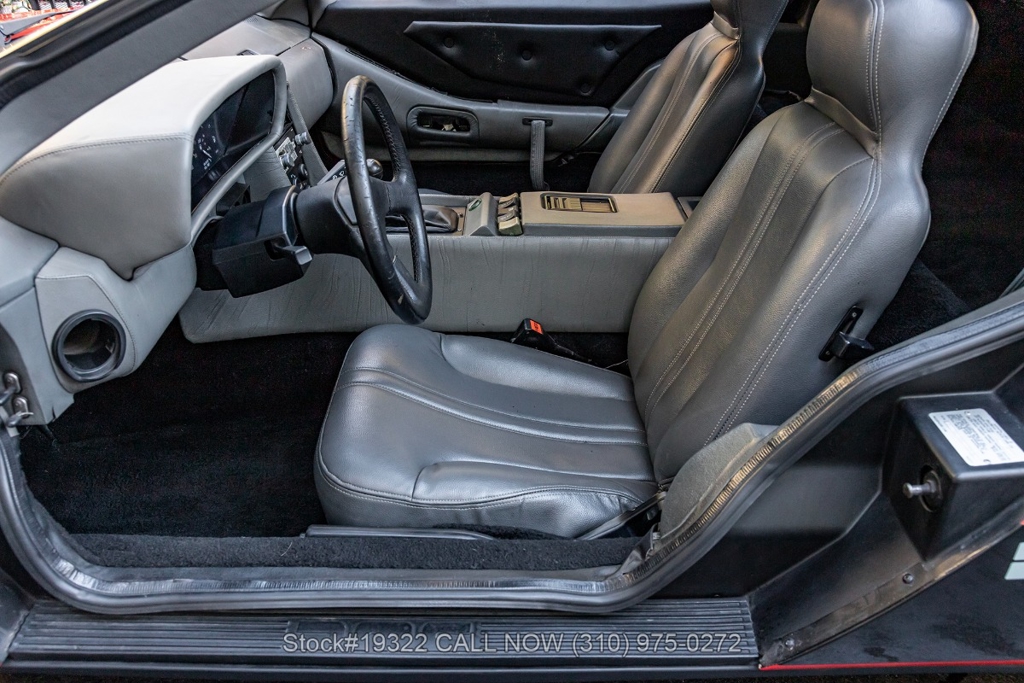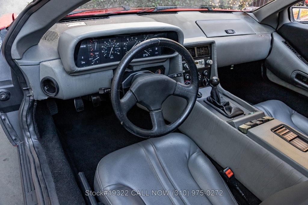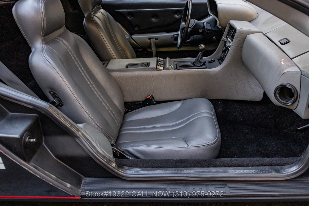 Power comes from the rear-mounted V6 engine paired with a 5-speed manual transmission and mechanical fuel injection. Additional features include four-wheel disc brakes, dual exhaust outlets, counterbalanced Gullwing doors, quadruple headlights, body-side moldings, side marker lights, a front spoiler, and a louvered rear window cover. Inside, you'll find a three-spoke steering wheel, center console, air conditioning, dual side mirrors, power windows, and a fender-mounted antenna.