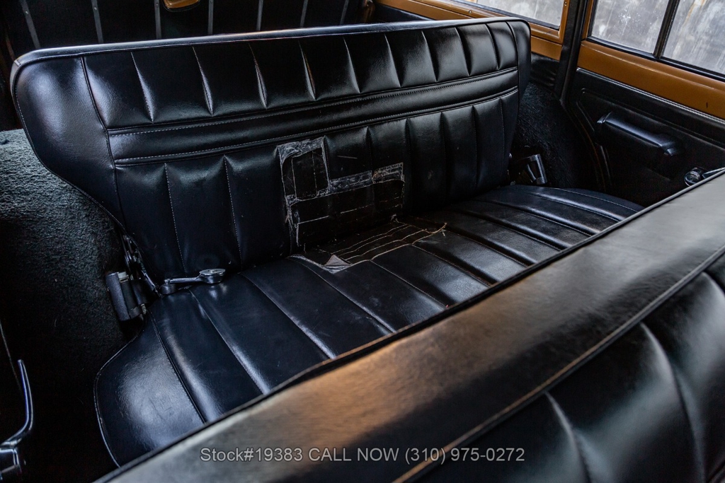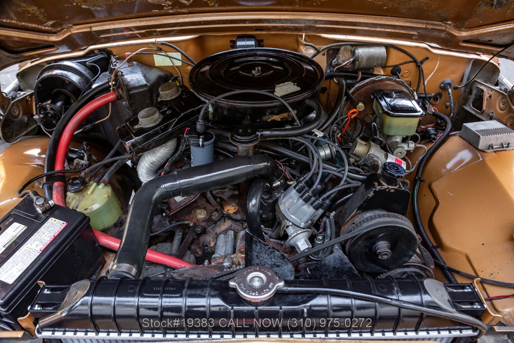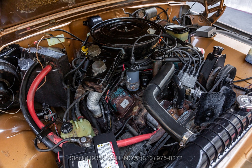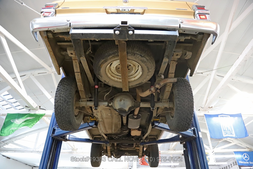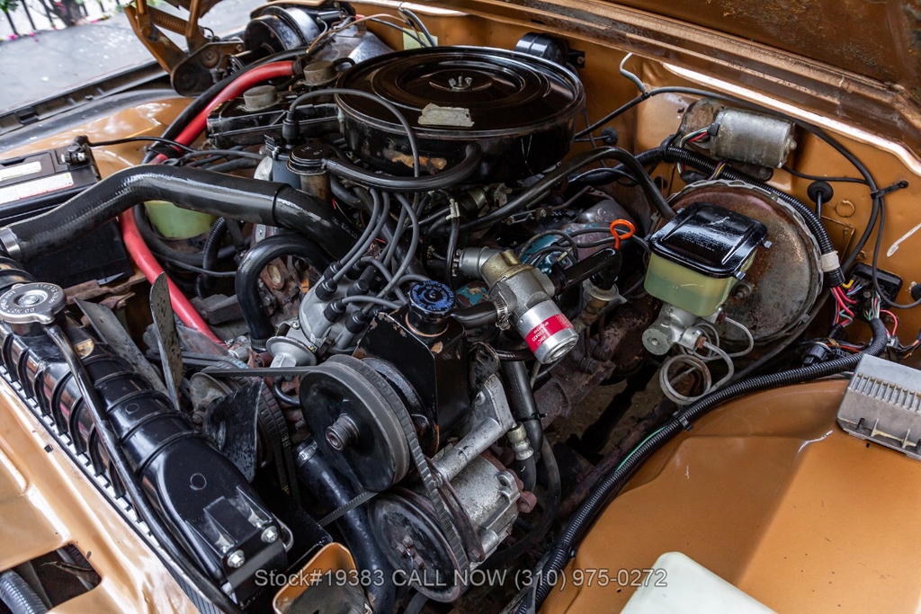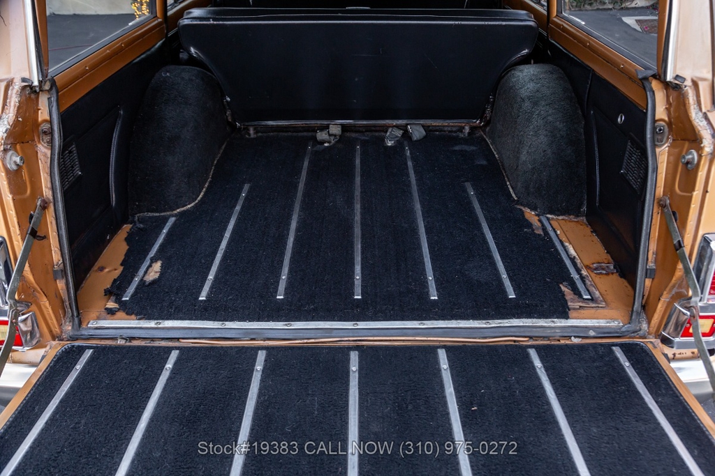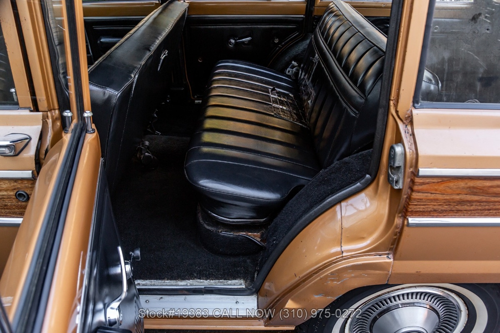 Power comes from a V8 engine mated to an automatic transmission with column shift, delivering the optimal performance these full-size Jeeps are known for. The four-wheel-drive system adds versatility, while power steering, a Motorcraft carburetor, and a single exhaust outlet contribute to a simple, functional driving experience. Exterior details include Wagoneer badging, chrome trim and bumpers, white-line tires, and 15-inch steel wheels with Jeep-branded center caps.