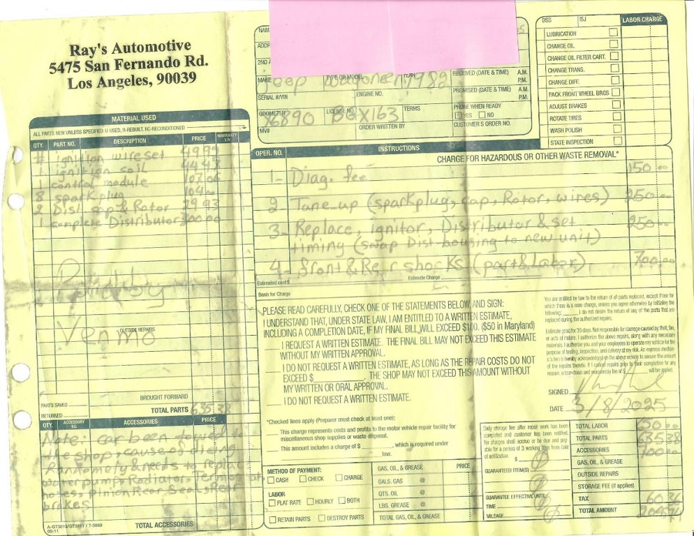 Due to the high cost of selling these automobiles, any failure to pay the deposit or final price of the auction within the time noted above will result in full action through eBay and legal action though state and federal law pursuant to this contract. In addition, the Automobile will be re-listed for sale.