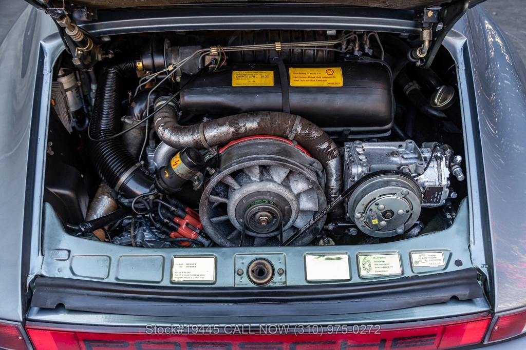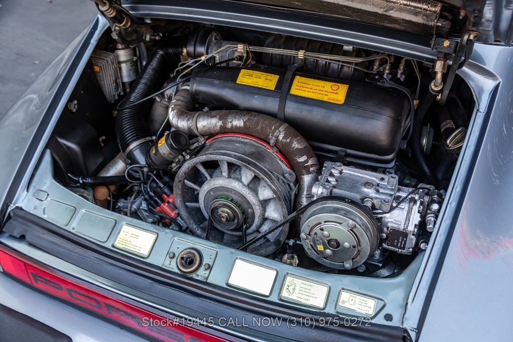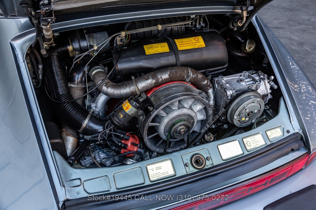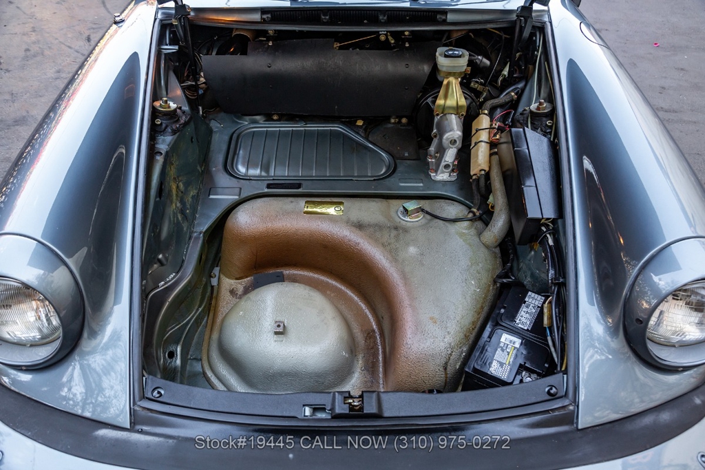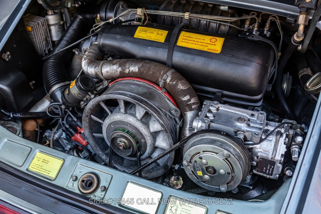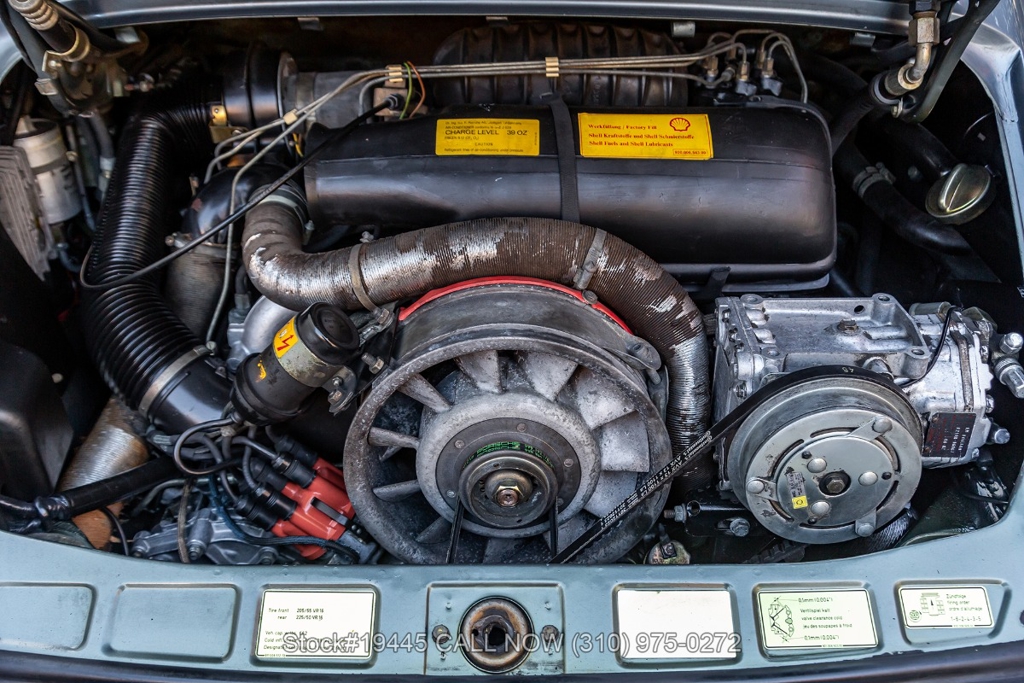 Equipped with a 3.0-liter air-cooled flat-six engine paired with a five-speed manual transaxle. Braking is provided by four-wheel disc brakes, while the car rides on 16-inch Fuchs-style wheels wrapped on Michelin tires that complete its period-correct appearance. The front trunk houses a correct Vredestein collapsible spare tire mounted on a steel wheel.