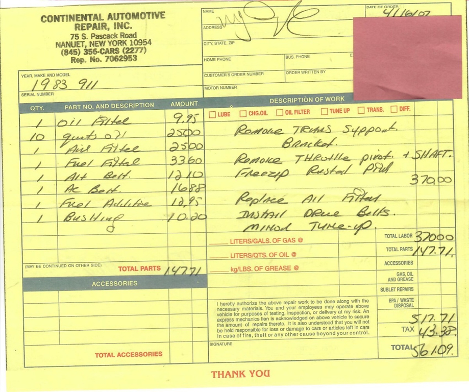 - Service Receipt Copies