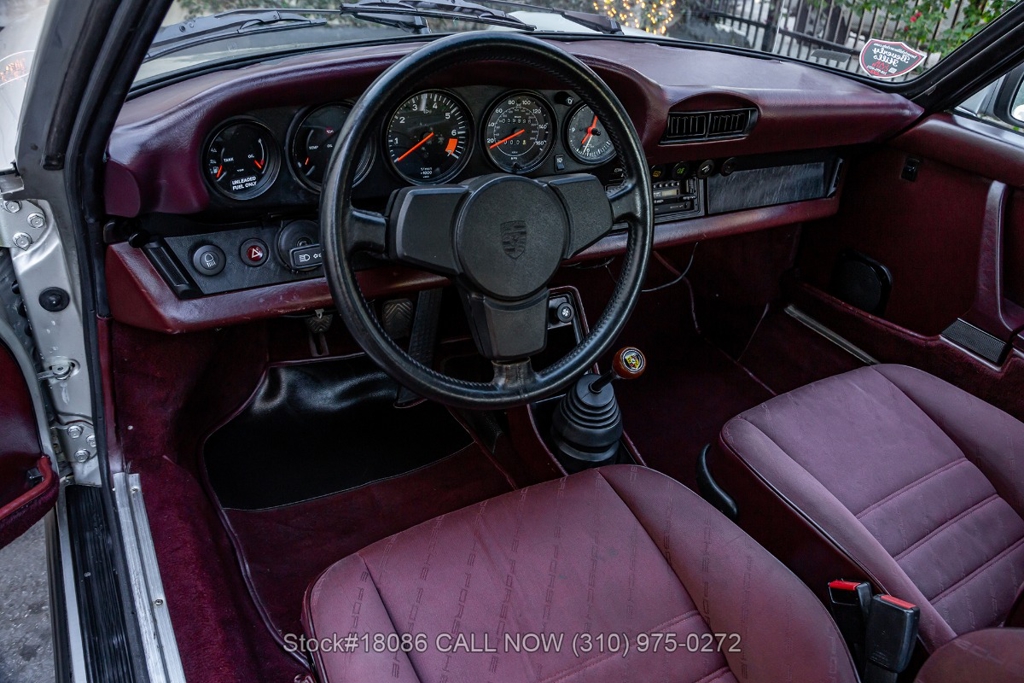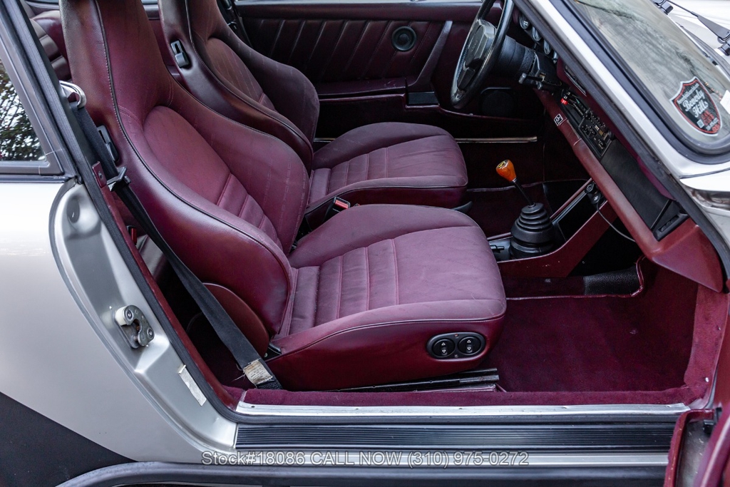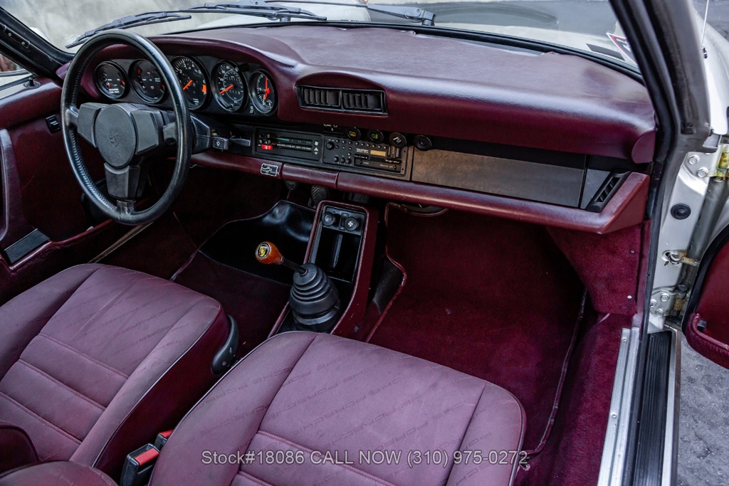 Introducing this 1984 Porsche Carrera Coupe M491 "Turbo-Look", a matching-numbers example with 59,996 miles showing on the odometer. Finished in its rare factory special-order Zinc Metallic (956), the exterior presents a refined and understated appearance that contrasts nicely with the Burgundy interior. The cabin is fitted with period-correct cloth seats featuring the distinctive diagonal Porsche script pattern, giving the car an authentic 1980s character. Overall, this Carrera offers a well-balanced combination of classic 911 styling and purposeful performance design.