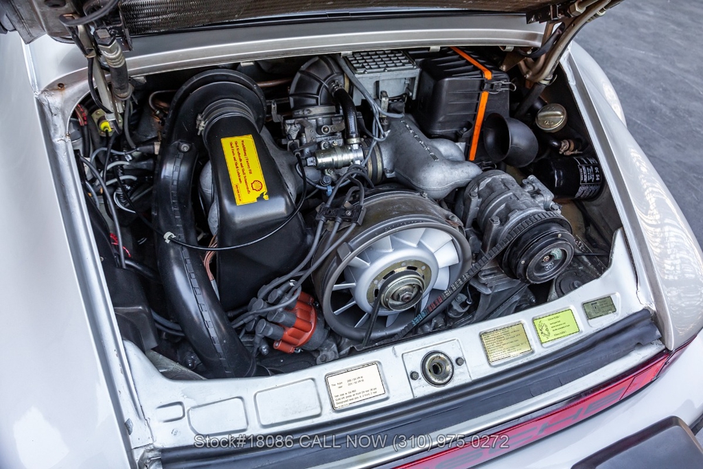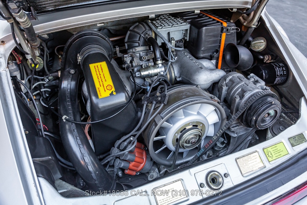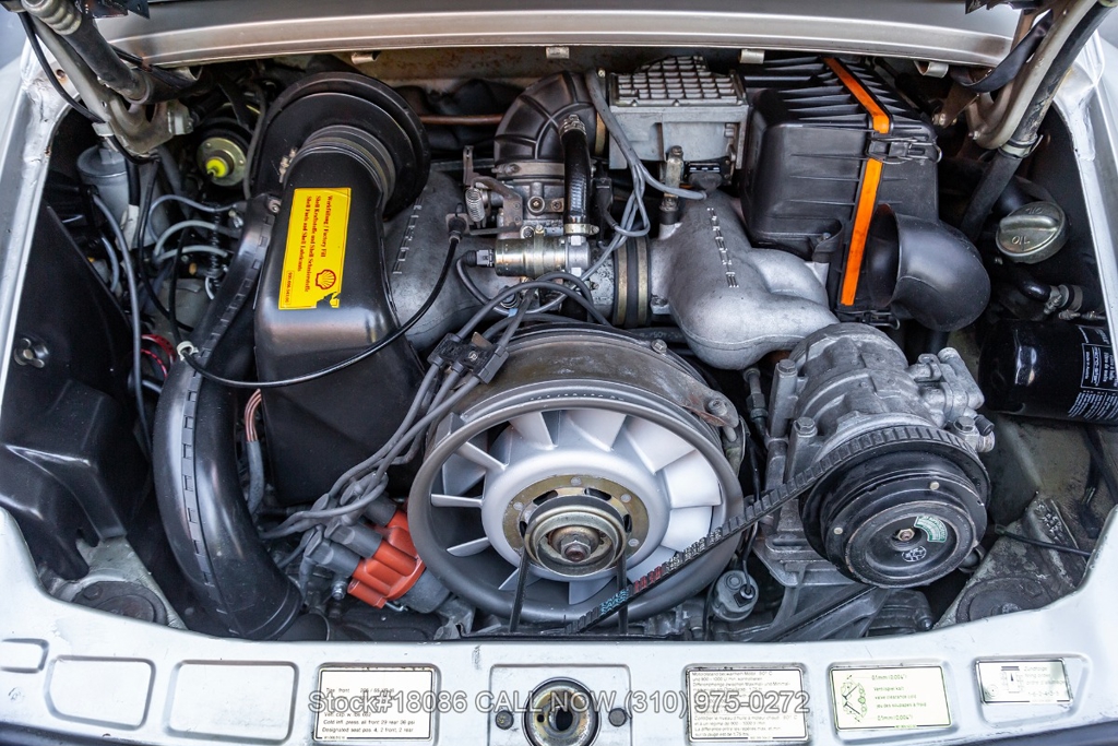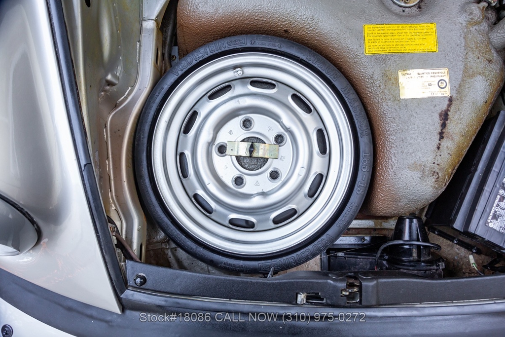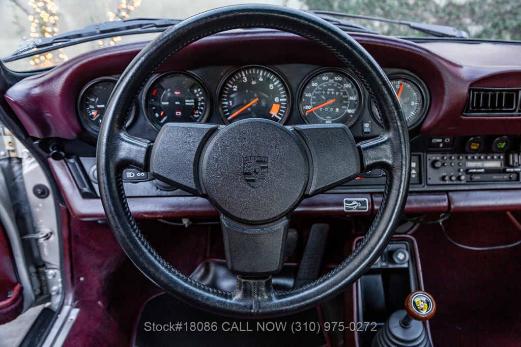 Power is delivered through a 915 5-speed manual transaxle paired with Porsche's well-regarded air-cooled 3.2-liter flat-six. The car is further equipped with a single exhaust outlet, four-wheel disc brakes, VDO instrumentation, a factory sunroof, Bosch fog lights, rear rubber bumperettes, and a three-spoke steering wheel. Completing the exterior presentation are 16-inch Fuchs-style wheels fitted with Yokohama tires. A tool roll and a spare tire are included and stored in the front trunk.