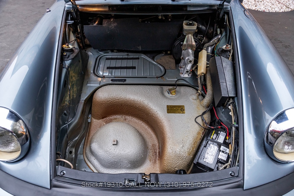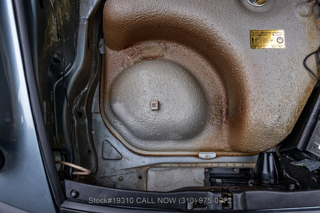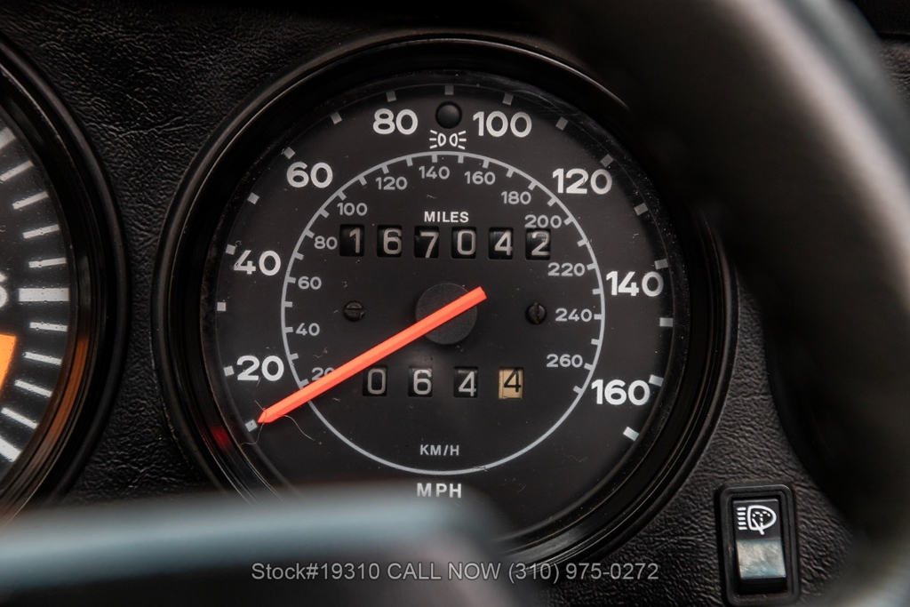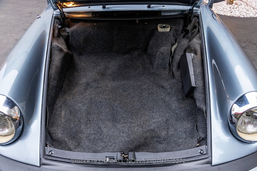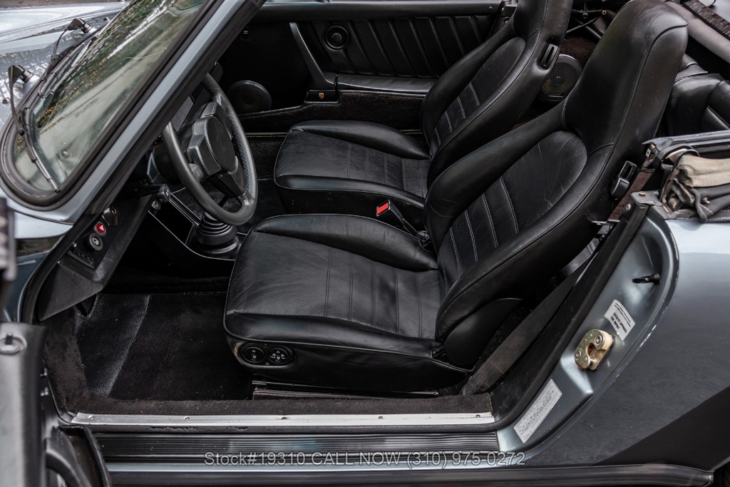 Equipped with a 5-speed 915 manual transaxle, air-cooled 3.2-liter flat-six engine, single exhaust outlet, four-wheel disc brakes, VDO instrumentation, black convertible soft top, Bosch-branded front fog lights, rear rubber bumperettes, 3-spoke steering wheel, Michelin tires, 16-inch Fuchs-style wheels, and a spare tire fitted in the front trunk. Convenience features include air conditioning, power windows, power-adjustable front seats, door pockets, glove box, and dual-side rearview mirrors.