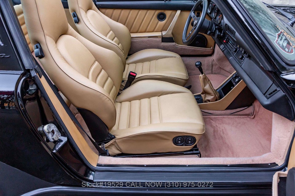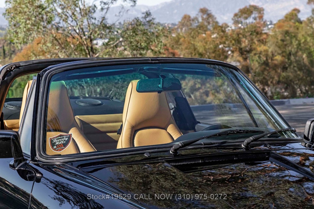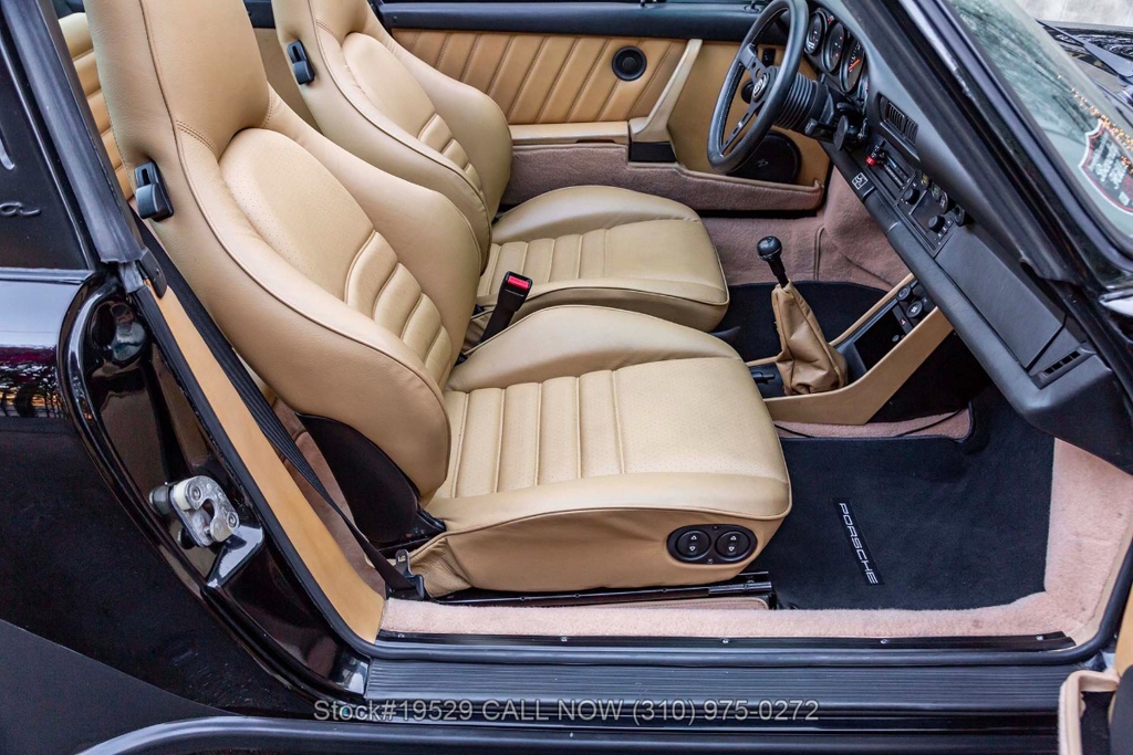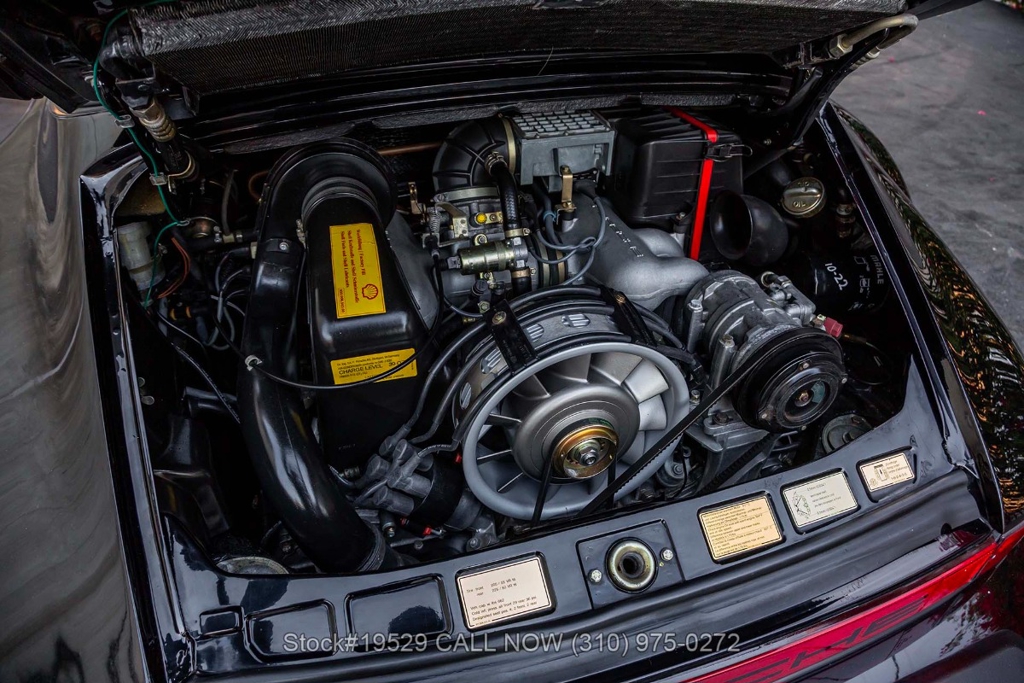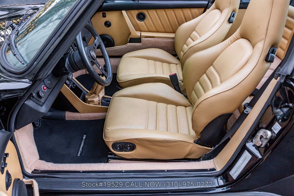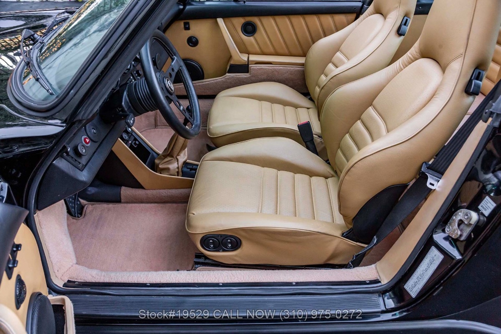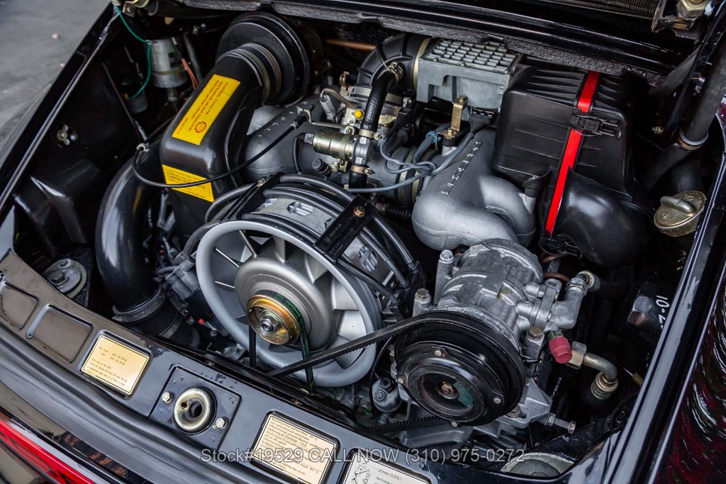 Power is delivered through a 915 5-speed manual transaxle paired with Porsche's well-regarded air-cooled 3.2-liter flat-six. The car is further equipped with Bilstein shocks, four-wheel disc brakes, dual exhaust outlets with polished tips, VDO instrumentation, a removable roof panel, a Targa bar, a wraparound rear glass window, Bosch fog lights, rear rubber bumperettes, and a MOMO Prototipo 3-spoke steering wheel. Completing the exterior presentation are 16-inch Fuchs-style wheels fitted with Nexen tires. A spare tire is also included and stored in the front trunk.