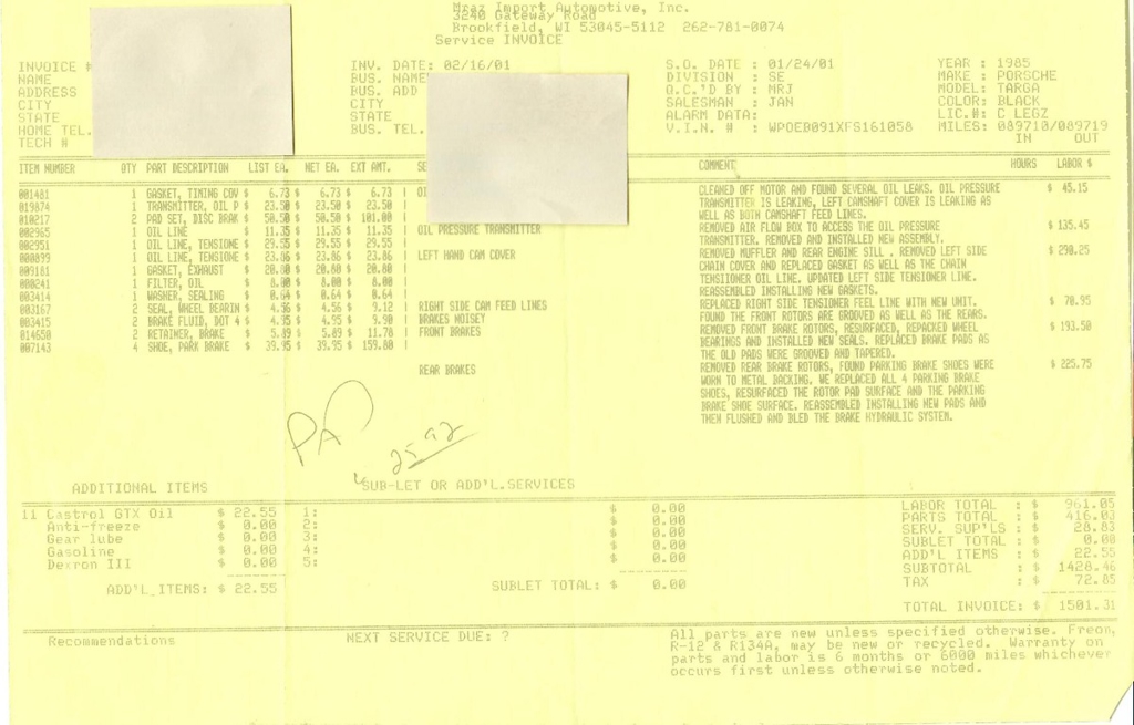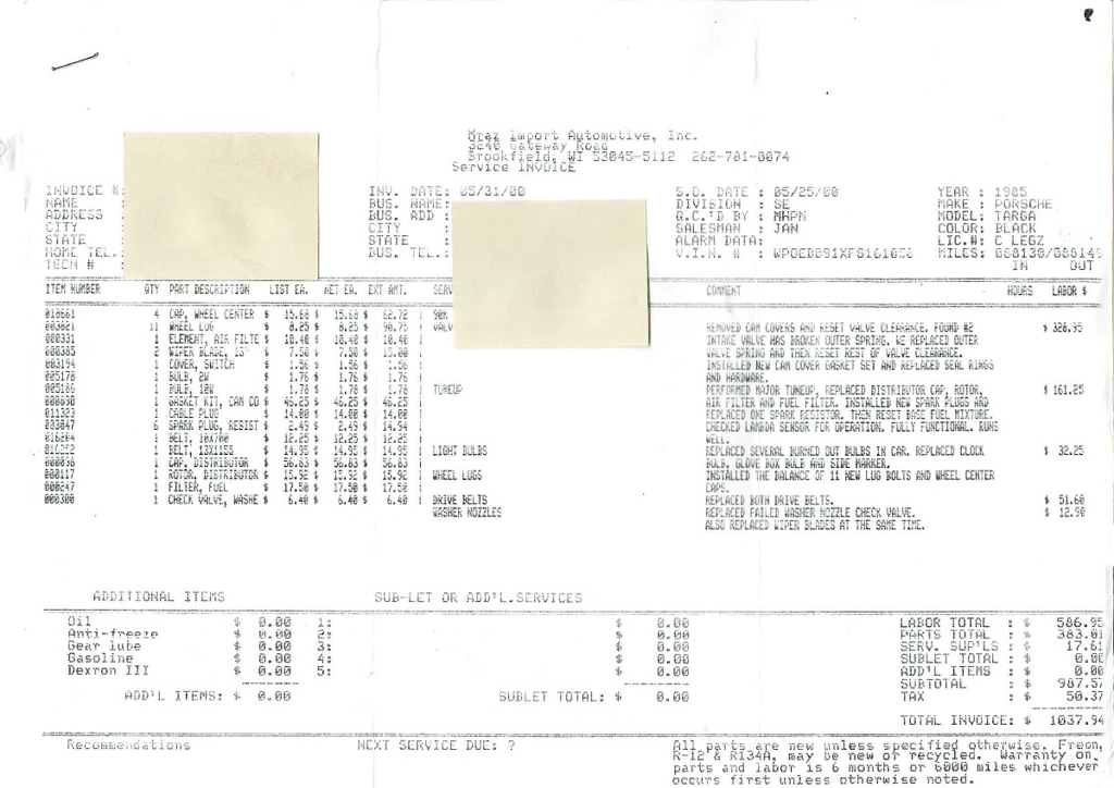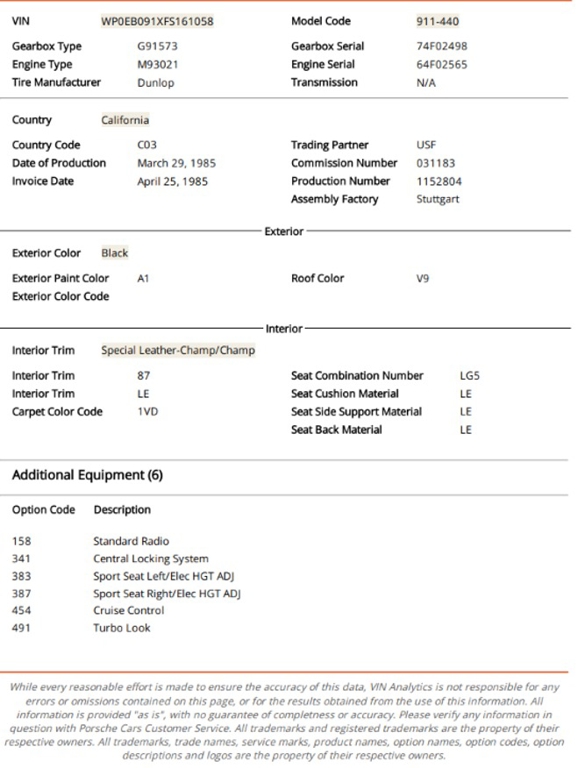 1985 Porsche 911 Targa M491 Turbo-Look 3.2L H6 12V