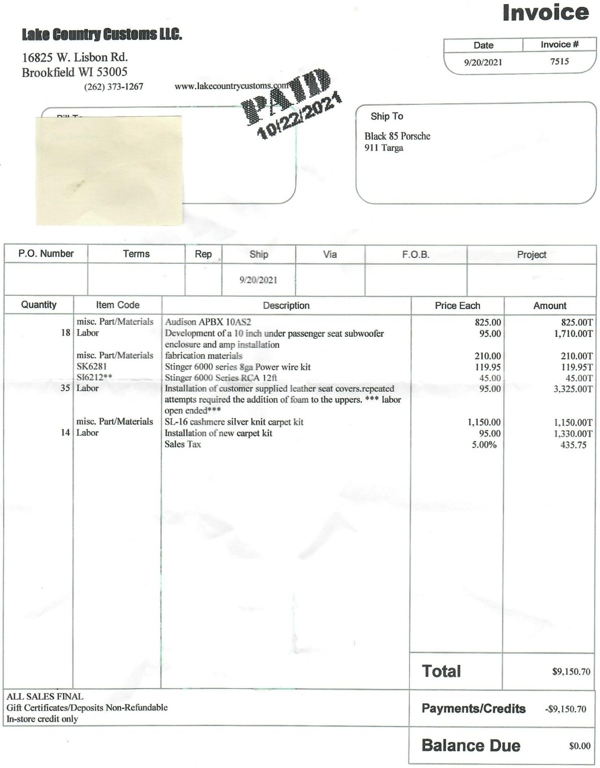 California buyers will be charged sales tax and licensing and processed on your behalf. Out of state buyers and over sea's buyers (including other countries), we will send title and you will be responsible for registration and taxes in your own state or providence. All transactions will be charged a $199 documentation fee in addition to the sales price. If leaving the state or country, the car must be picked up by a transportation company that can provide a bill of lading, otherwise California sales tax will be charged. (All licensed transport companies provide these).