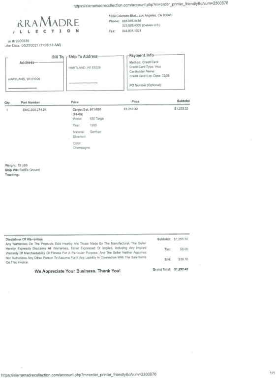 Once full payment is received, the Seller will provide clear title, Bill of Sale and additional Department of Motor Vehicle forms to you for signature. The forms must be completed before the Automobile is shipped or made available to you.