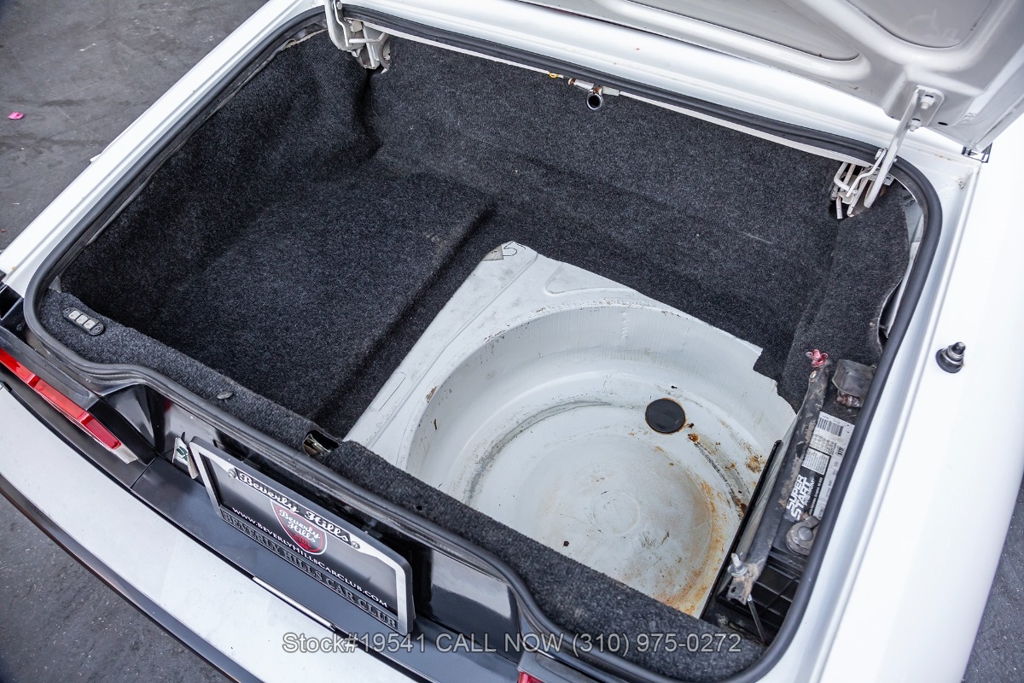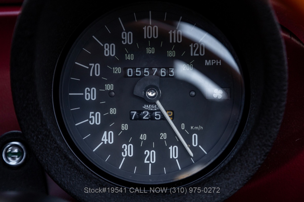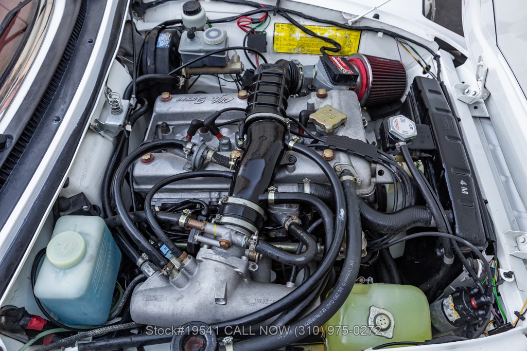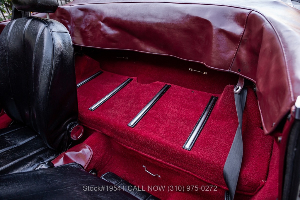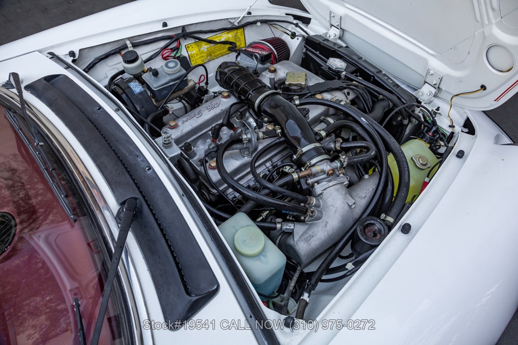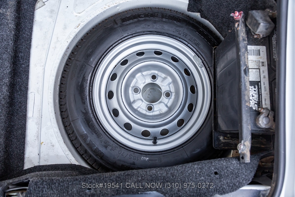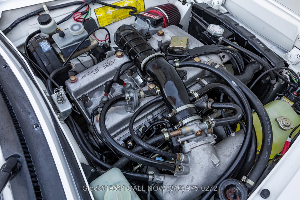 Equipped with a 5-speed manual transmission, inline-four engine, Jaeger instrumentation, black convertible soft top, four-wheel disc brakes, single exhaust outlet, 3-spoke steering wheel, chrome trim, Toyo tires, 14-inch alloy wheels, and a full-size spare tire fitted in the trunk. Featured amenities bucket seating with head restraints, manual-crank windows, dual side mirrors, center console, door pockets, and a vintage Clarion radio.