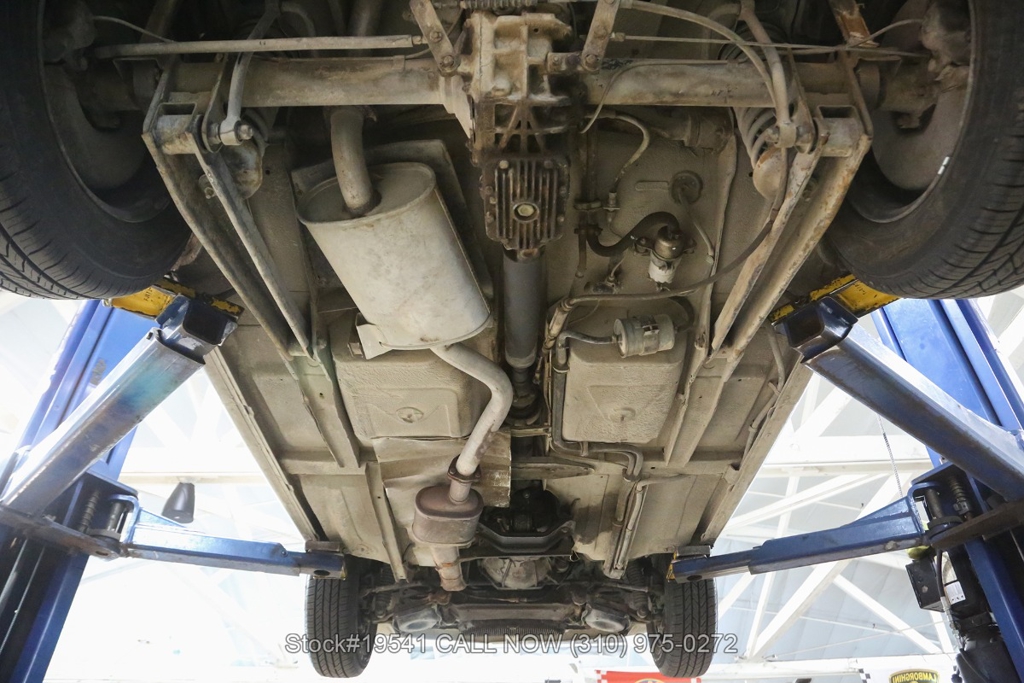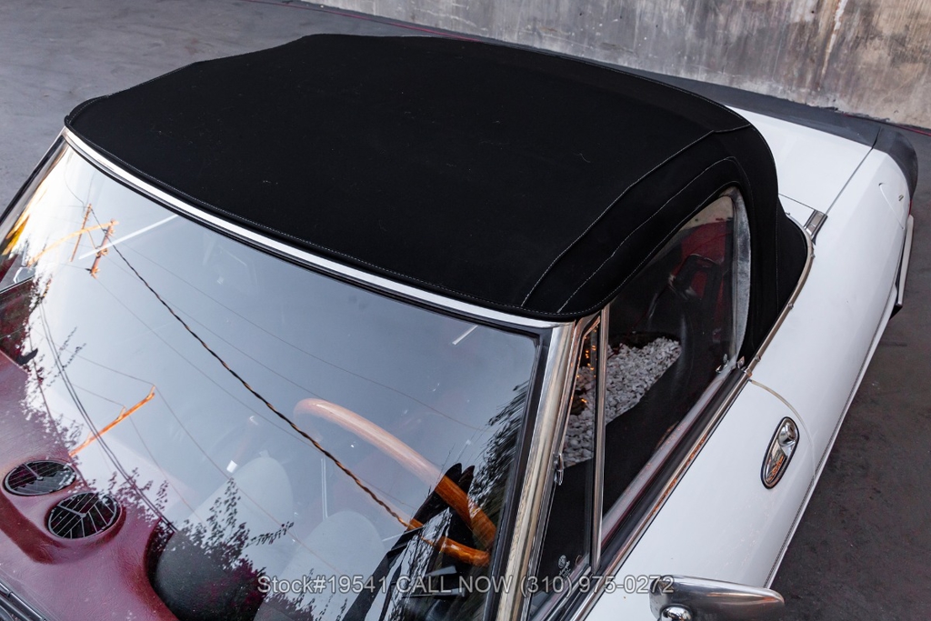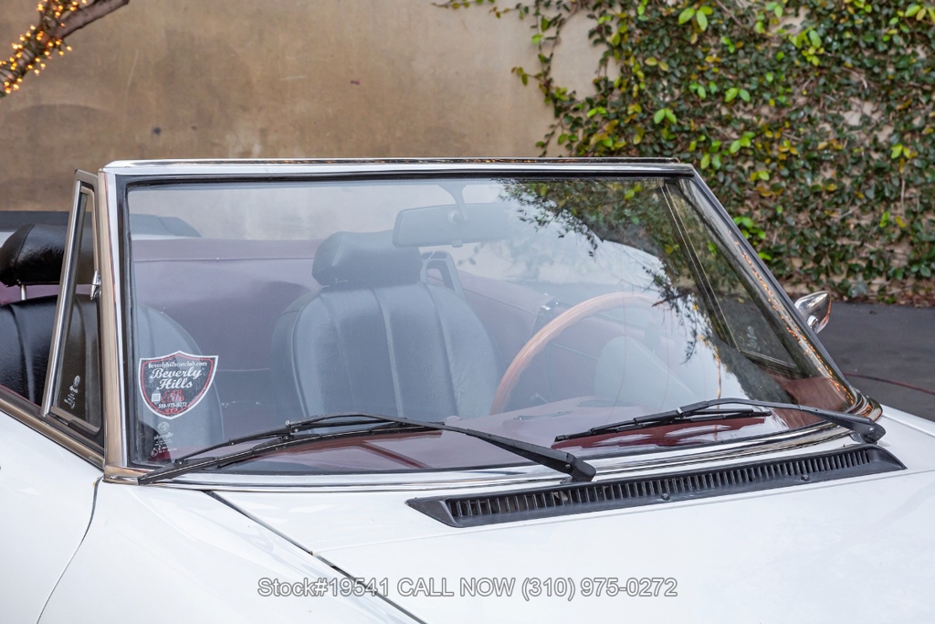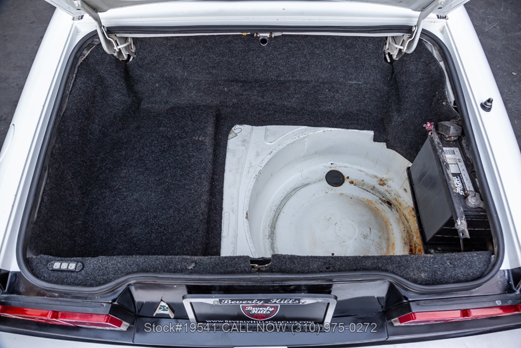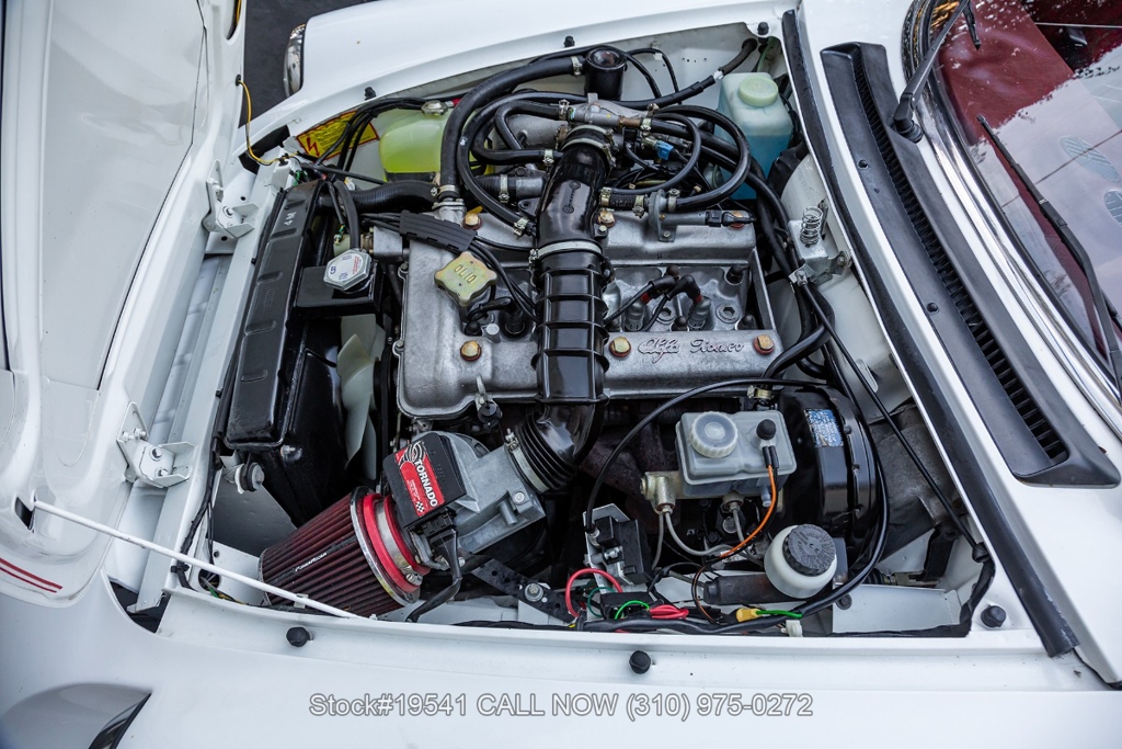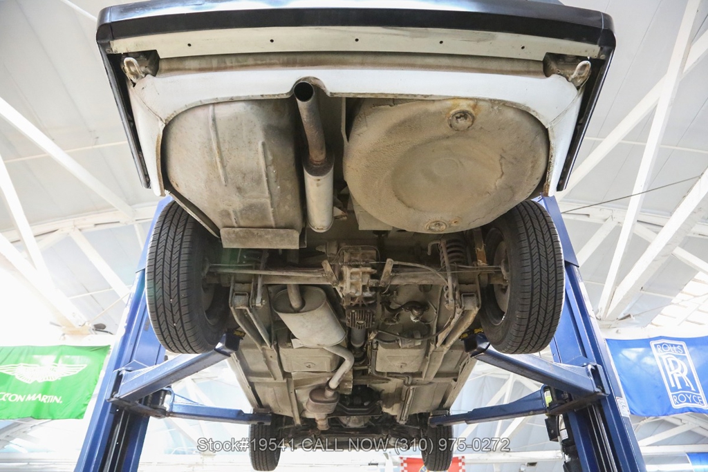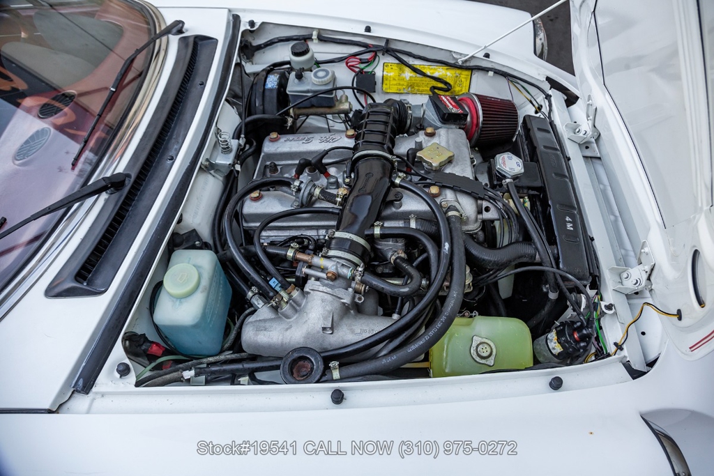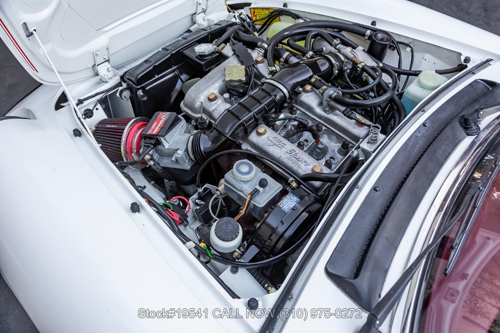 Equipped with a 5-speed manual transmission, inline-four engine, Jaeger instrumentation, black convertible soft top, four-wheel disc brakes, single exhaust outlet, 3-spoke steering wheel, chrome trim, Toyo tires, 14-inch alloy wheels, and a full-size spare tire fitted in the trunk. Featured amenities bucket seating with head restraints, manual-crank windows, dual side mirrors, center console, door pockets, and a vintage Clarion radio.