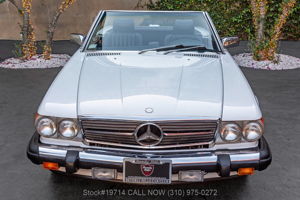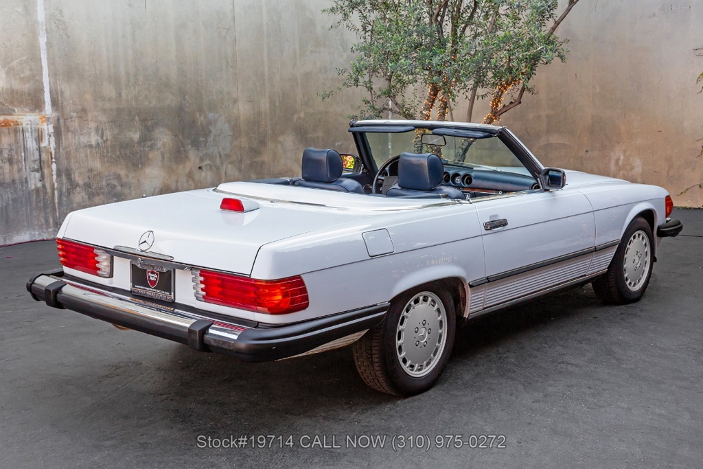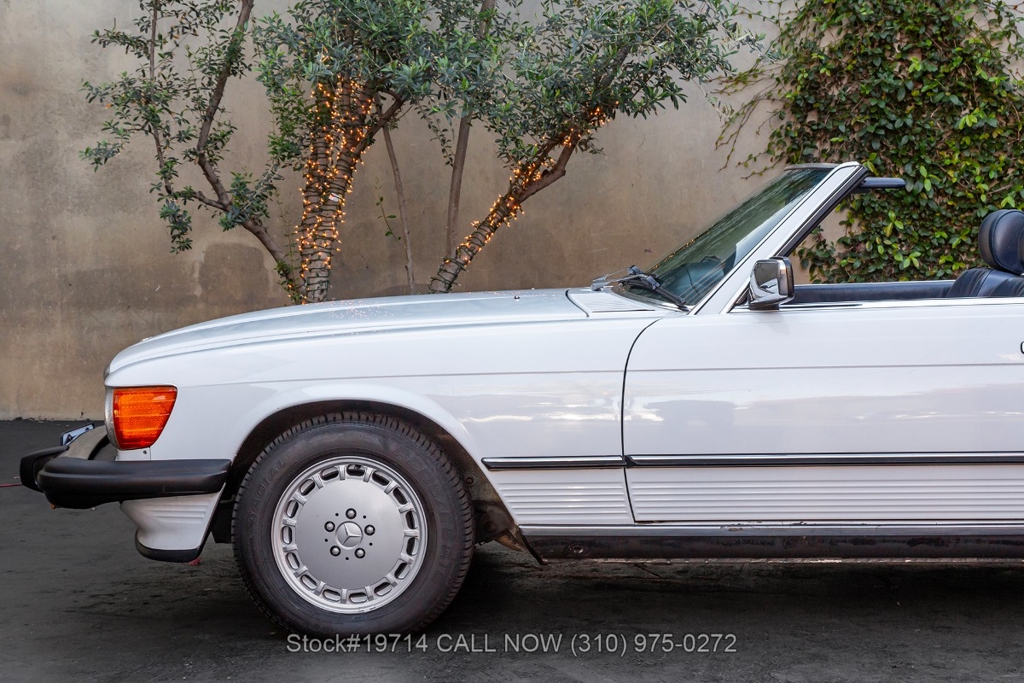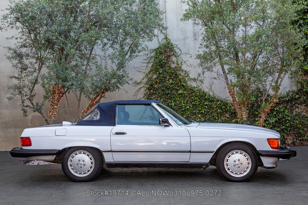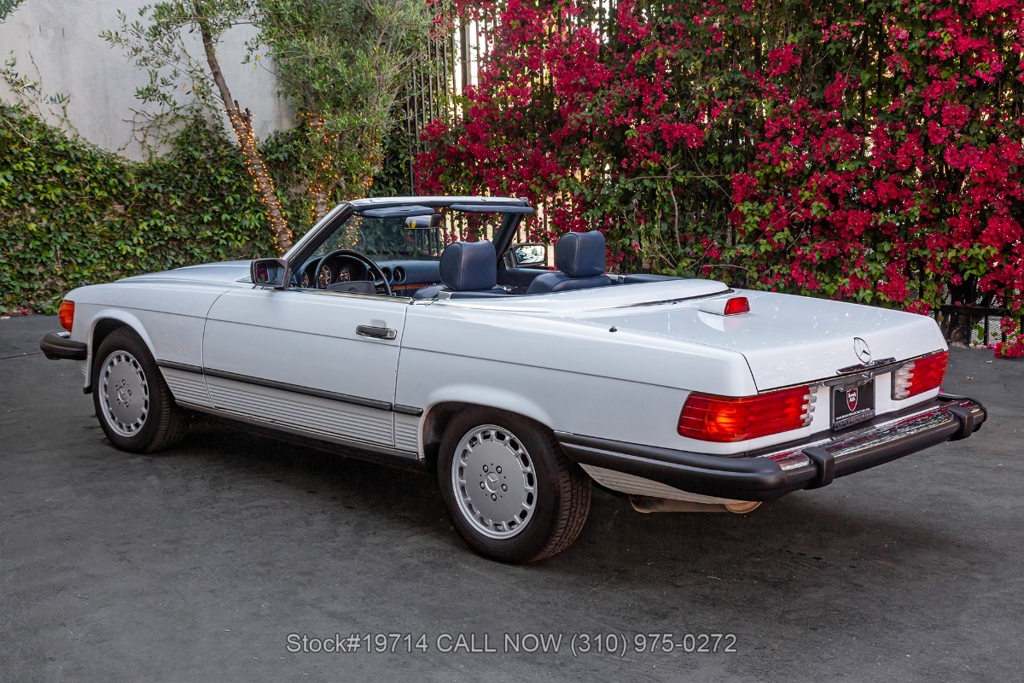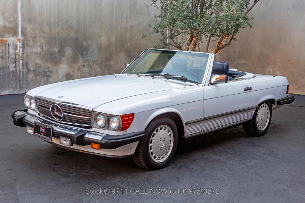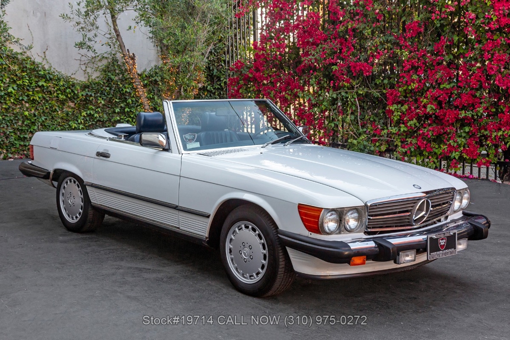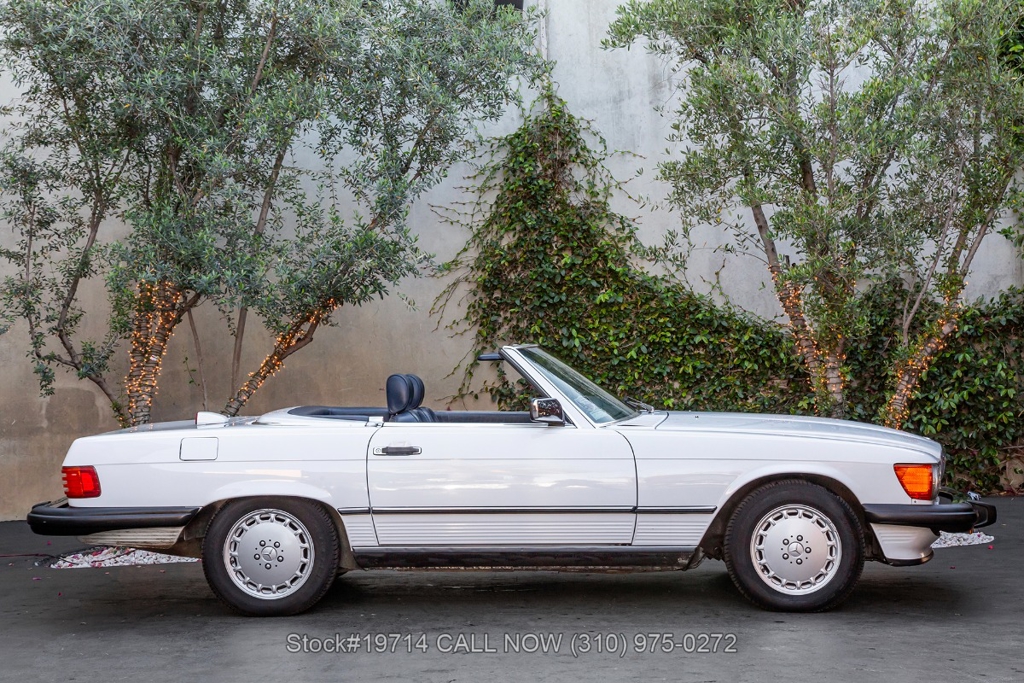 Introducing this 1987 Mercedes-Benz 560SL with 2 tops that is finished in its factory color scheme of Arctic White (147) complemented with a Royal Blue (272) interior. First and foremost, this 560SL comes with two tops, providing you with the option to cruise with the body-color removable hardtop or enjoy the convertible soft top.
